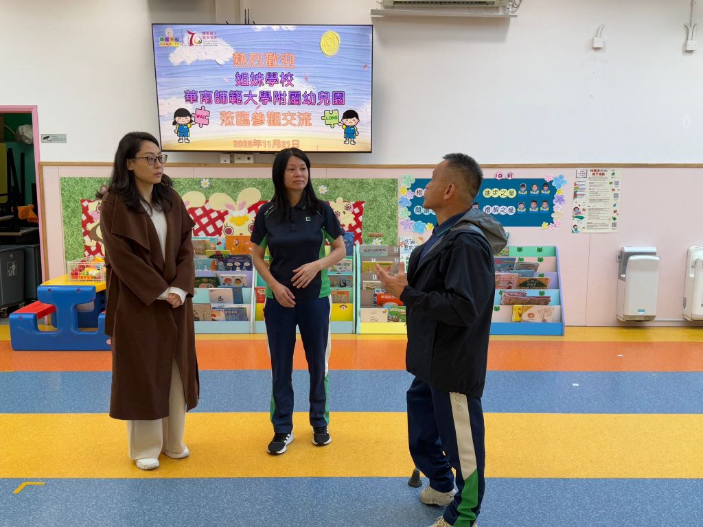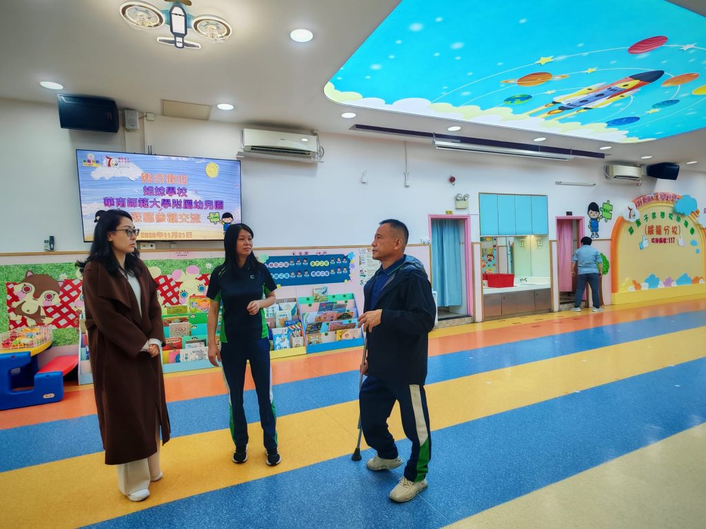11月21日,華南師範大學附屬幼兒園老師們蒞臨菜農子弟學校117威龍分校進行交流,恰似春日和風,輕柔地拂過校園的每一處。作為姐妹學校,此次相聚,滿溢著對教育事業的赤誠與熱愛,是兩校情誼的深情綻放。