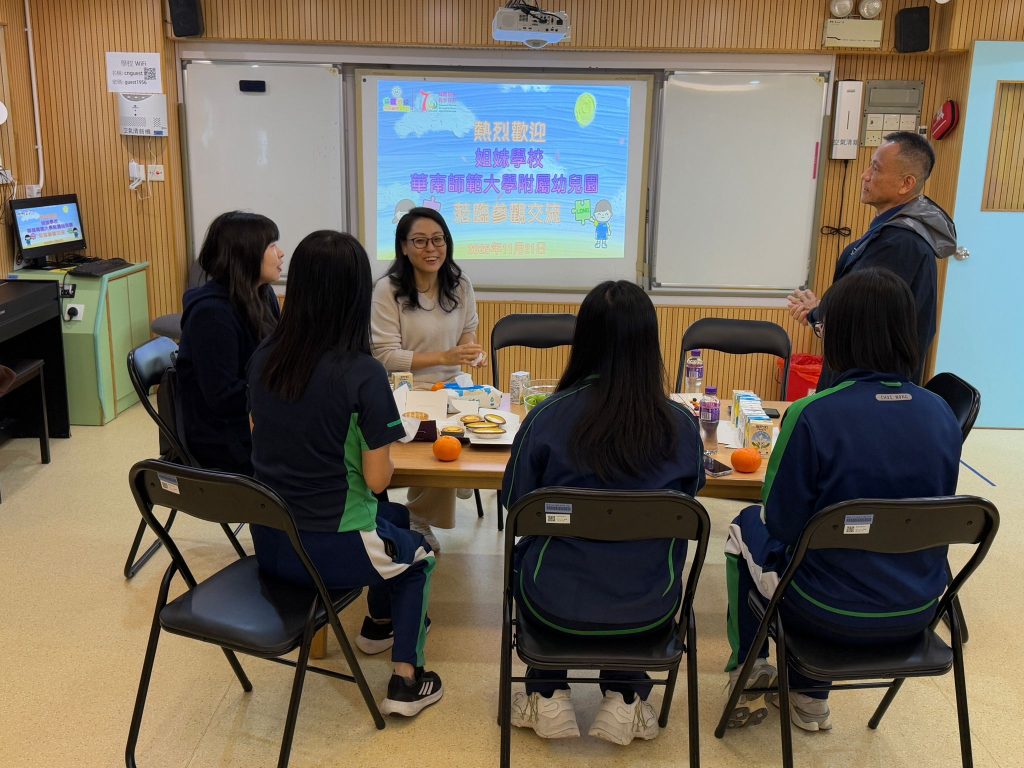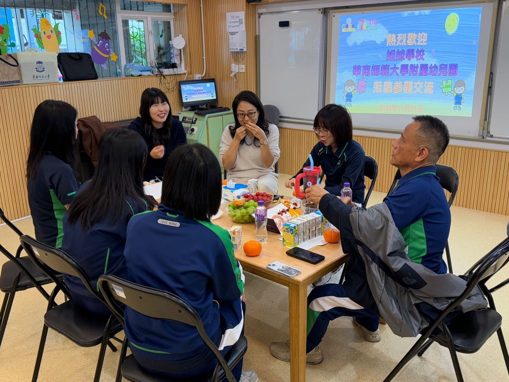 在輕鬆融洽的氛圍裡,我校王校長,王主任以及三位級組長與華南師範大學附屬幼兒園韓鳳梅副園長展開深入討論。王校長分享本校教育探索,直言挑戰;韓副園長肯定成果,分享幼教多元智能培養經驗。還討論了家校合作、教師發展交流,共識家校合作重要,要為教師提供成長機會,打造高素質隊伍。兩校同仁促膝座談,分享教育感悟。