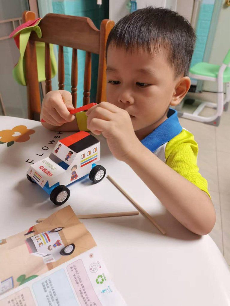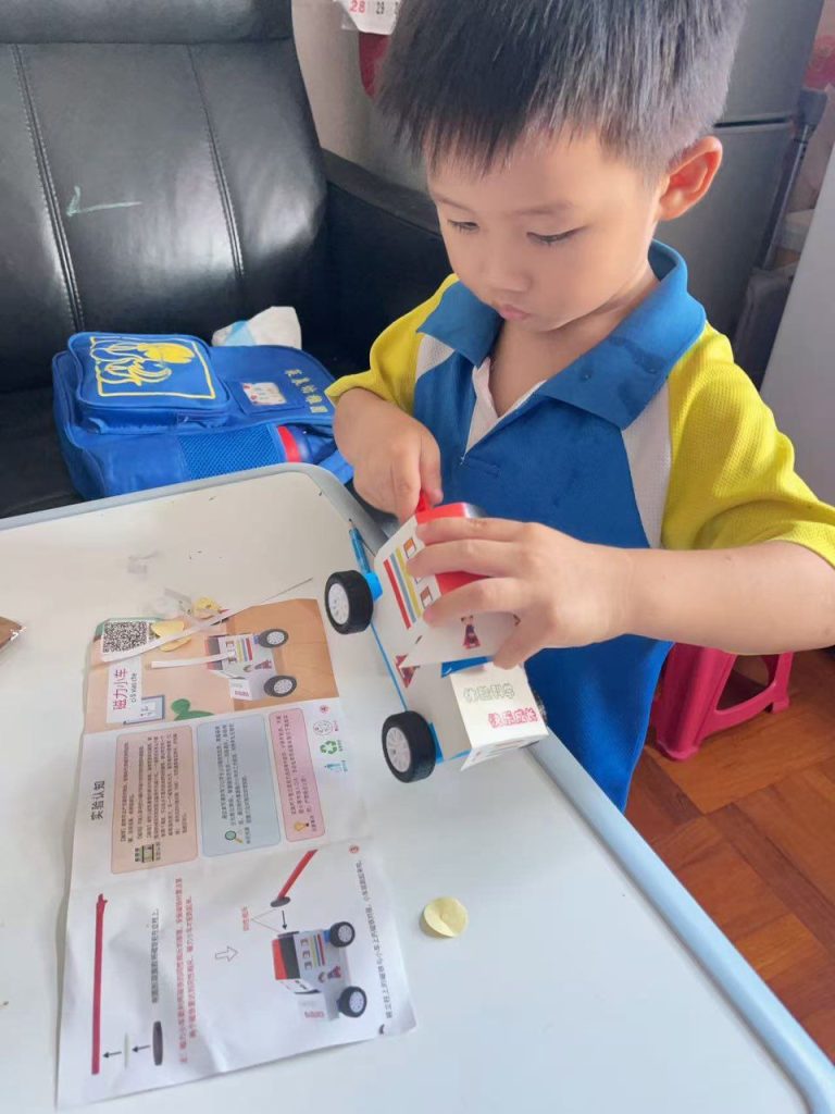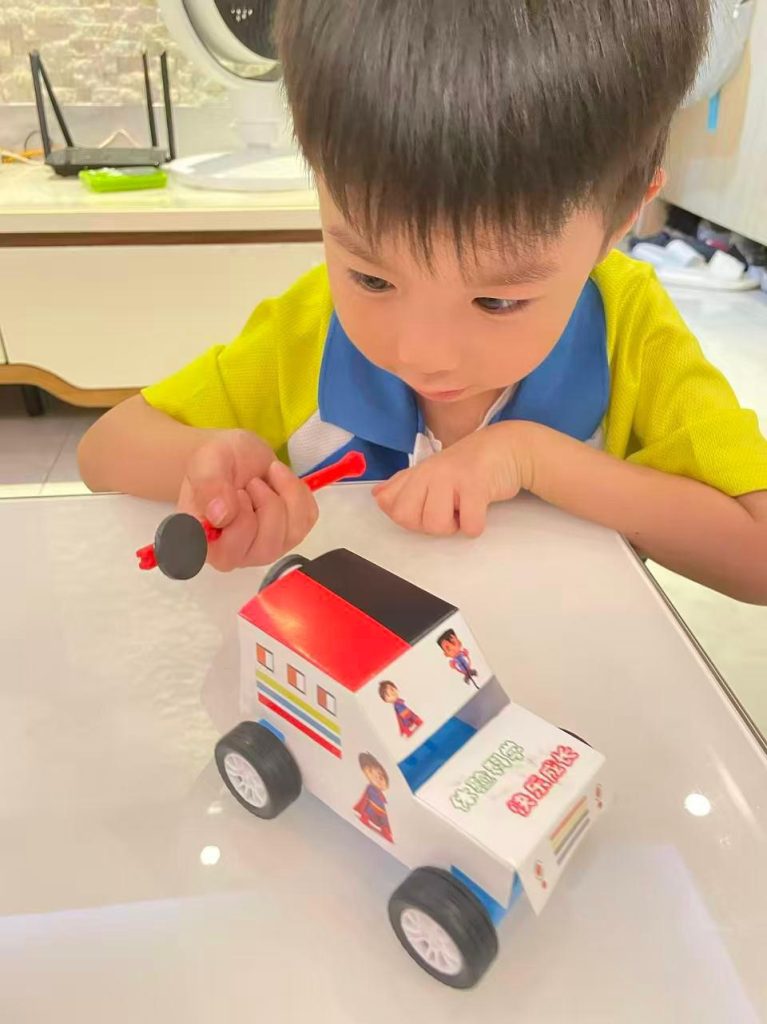 日前,老師向小朋友派發「磁力小車」的材料包,請小朋友回家和家長一起探索磁力車的秘密。在家長的指導下,小朋友一步一步地把磁力小車組裝。在這個過程中,他們不僅學會了如何協作,還對磁石的秘密產生了濃厚的興趣。小朋友們好奇地探索磁力「同性相吸,異性相斥」這些神奇的現象。透過玩樂與學習,他們體會到科學的魅力,並享受了親子共度的美好時光。在這個拼砌過程中,磁力車不僅成為了玩具,更是一扇通往探索世界的窗戶。