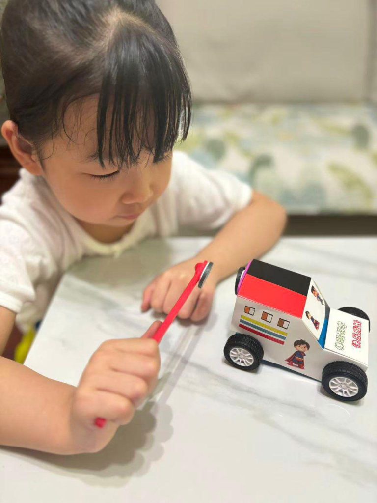一套「磁力小車」材料包,就能讓K2級(117威龍分校)孩子解鎖沈浸式科學探索。