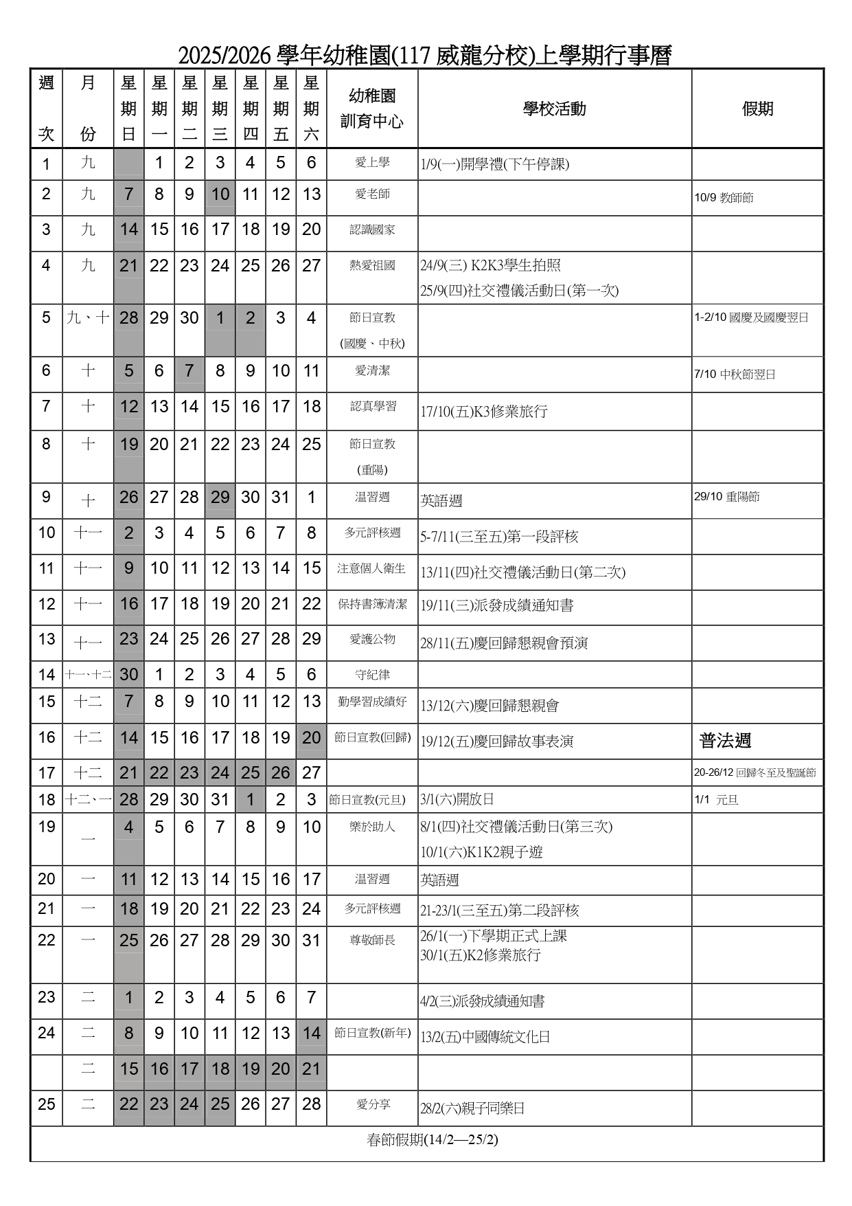 2026-2027學年威龍幼稚園K1級招生面談安排