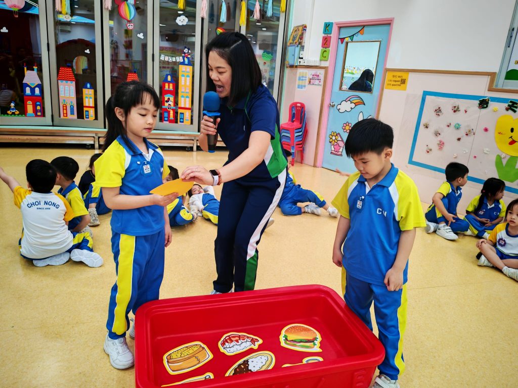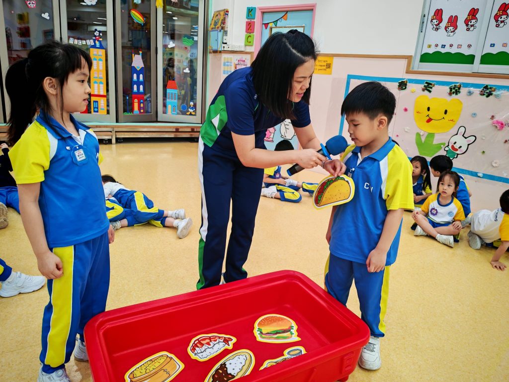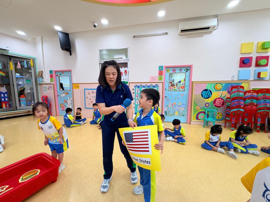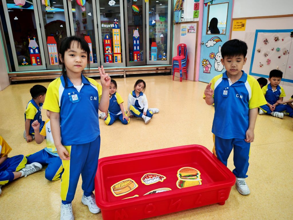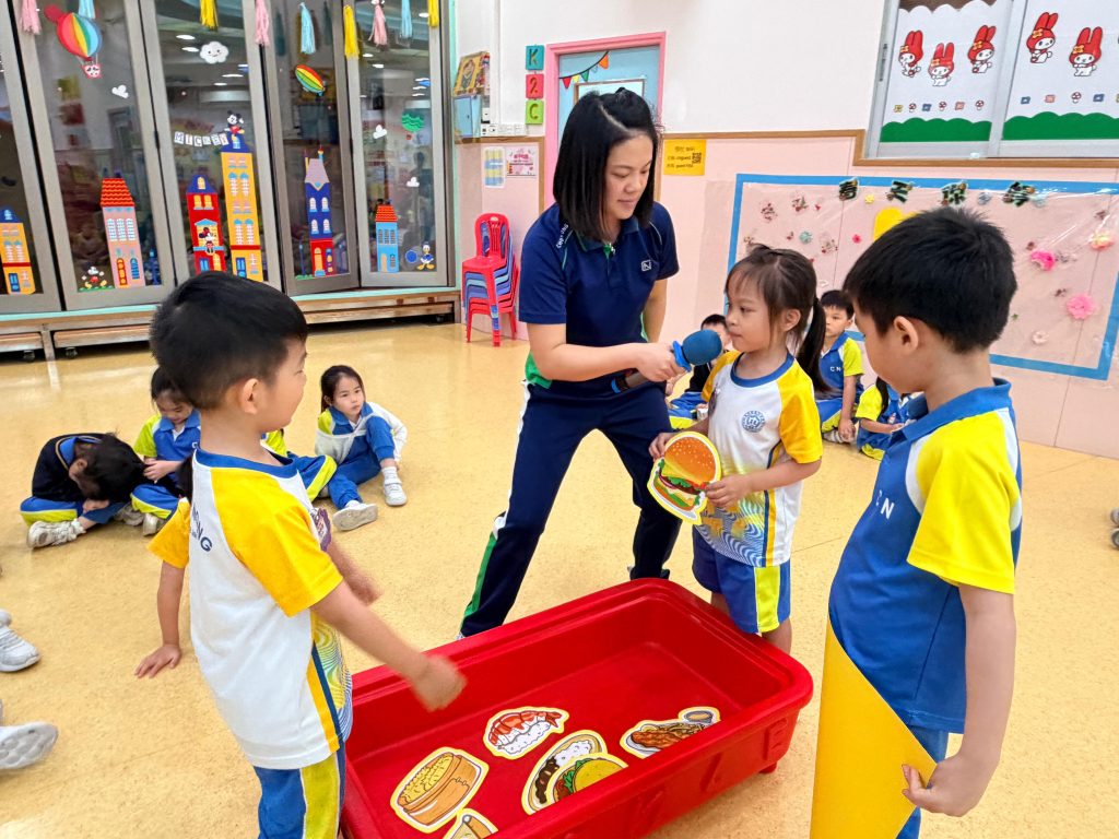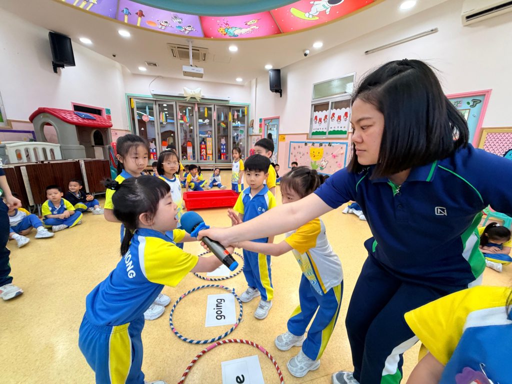 本次課堂由外籍老師Miss Vanessa帶領兩個充滿趣味的遊戲環節。小朋友需要仔細聆聽老師所讀出的英文字詞,並從選項中找出正確的 Phonics 音調。第一個遊戲以小組形式進行,小朋友在互動中提升專注力與聽辨能力;第二個遊戲則以二人挑戰方式展開,讓小朋友在輕鬆氛圍中展現自我,增強自信心,在遊戲中自然地練習發音,將學習與樂趣完美結合。