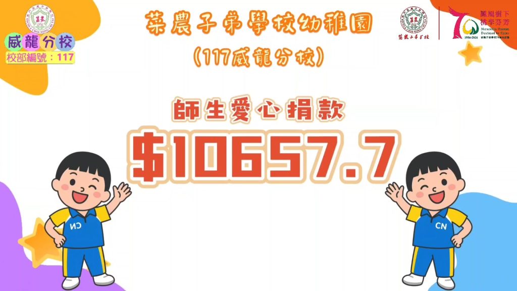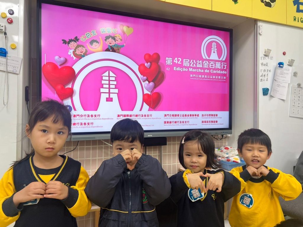 幼稚園(117威龍分校)積極響應由澳門日報讀者公益基金會主辦的年度慈善盛事「2025公益金百萬行」,凝聚全校師生與家長的力量,共同為社會上有需要的人士獻上溫暖與關懷。在大家的熱心支持下,本次活動共籌得善款澳門幣10,657.7元,所有款項將透過本校統一轉交至澳門日報讀者公益基金會。