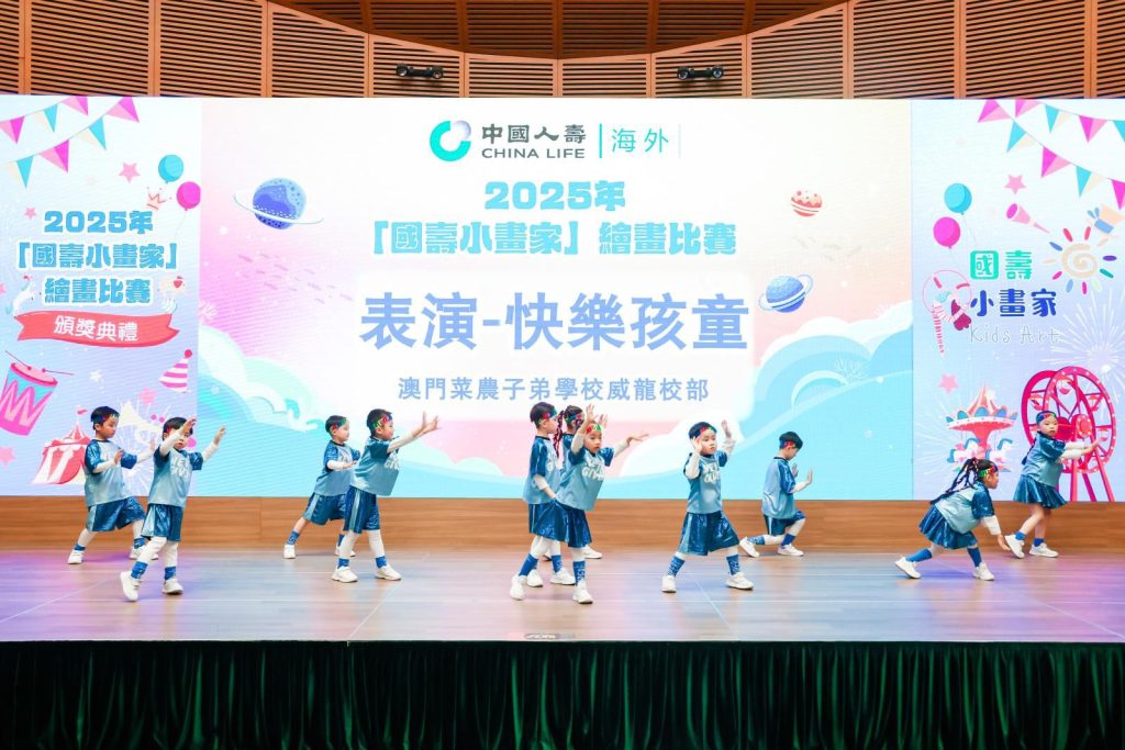 威龍分校的小畫家在比賽中獲得優異的成績,更獲邀在典禮上表演舞蹈《快樂孩童》。作為頒獎禮的第一個表演節目,輕快的音樂與小朋友充滿活力的舞步,令現場氣氛熱鬧起來。其後,即進行頒奬儀式。