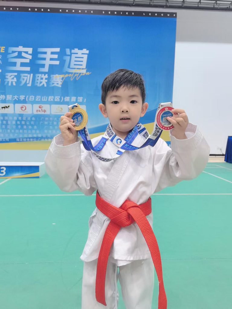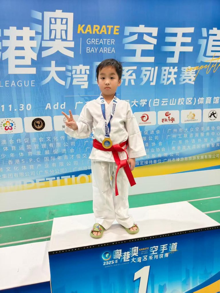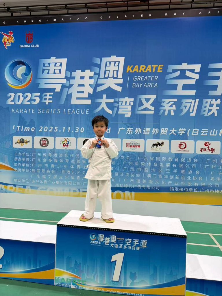 2025年11月30日,粵港澳大灣區空手道聯賽於廣州白雲區外貿外語大學隆重舉行。幼稚園(威龍分校)派出四位小將參賽,憑藉出色的技巧與沉穩的表現,在賽場上奮力拼搏,最終囊括四金、一銀、一銅的優異成績,戰績斐然,充分展現了幼兒運動員的卓越風采。
