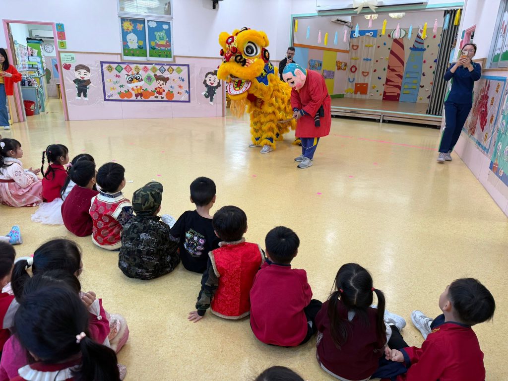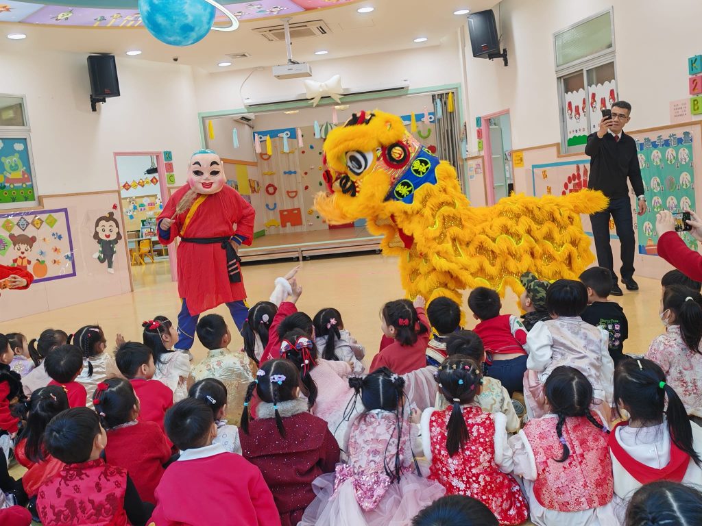 活動由本校的醒獅隊伍拉開序幕,精彩的醒獅表演引人入勝。小朋友目不轉睛,欣賞著醒獅的靈動表現,現場氣氛熱烈。隨後,瑞獅與小朋友拍照留念,增添了不少歡樂的回憶。