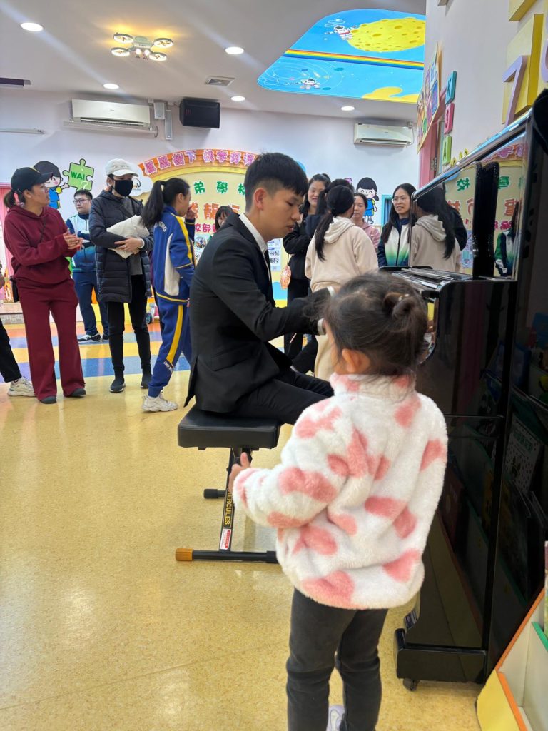 K1A班羅芷琳爸爸帶來了精彩的鋼琴演奏,優美旋律環繞校園;區曦文同學的小提琴表演更是驚艷全場,稚嫩的琴聲裡藏著滿滿的才華。各班活動也熱鬧非凡,K1A班的玩教具互動與童小點機械人體驗,讓寶貝們在遊戲中鍛煉思維;K1B班的棉花糖製作甜到心坎,現場還展示了幼稚園的各項獲獎榮譽;K1C班的釣魚遊戲趣味十足,同時帶大家走進中學部獲獎成果展,見證學子們的優異表現;音樂室裡的AI虛擬遊戲更是人氣爆棚,寶貝們在科技與音樂的碰撞中盡情暢玩。