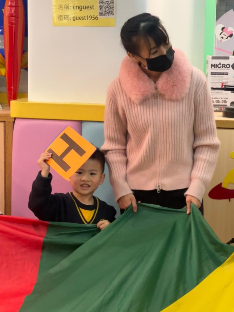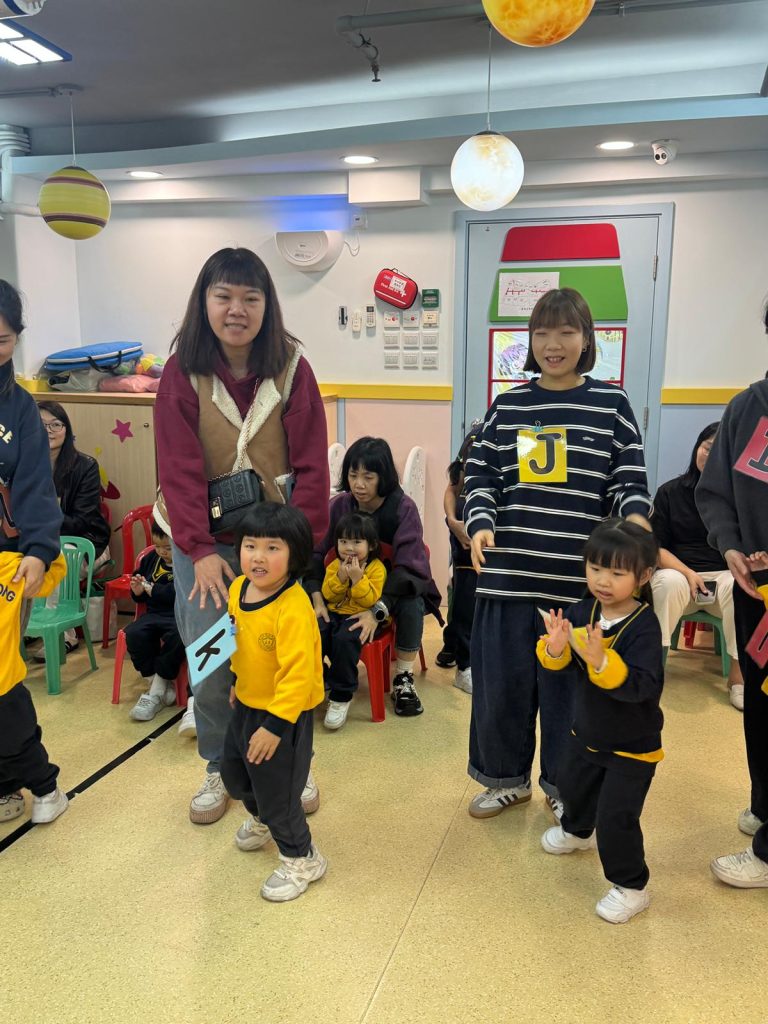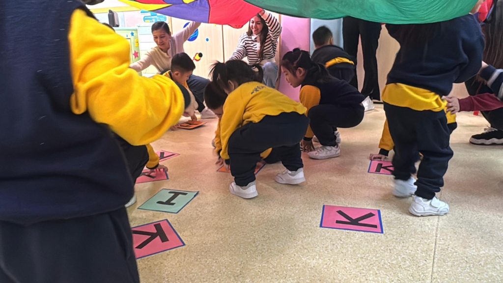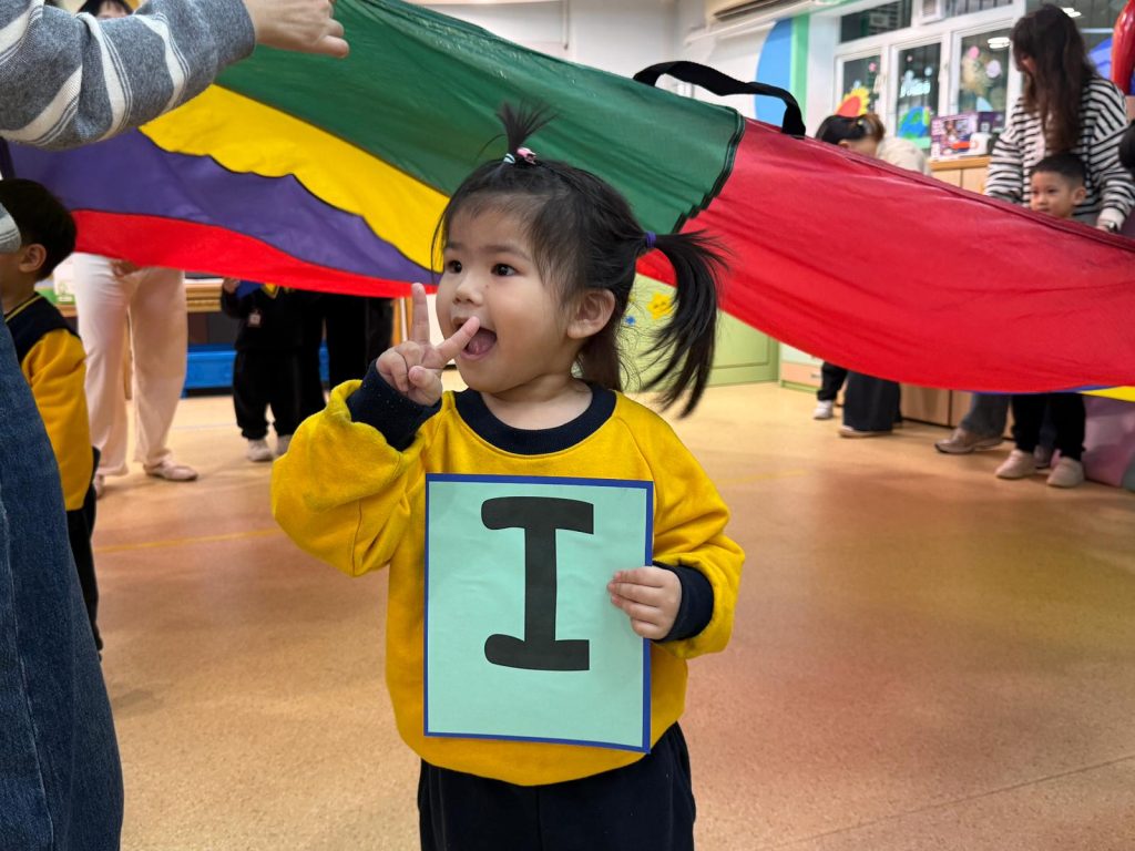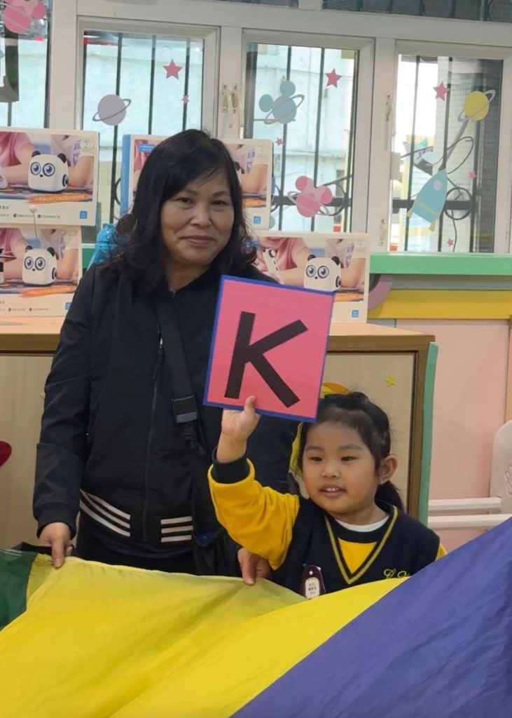 觀課日一直是學校與家庭溝通的重要橋樑,也是小朋友特別期待的日子。活動開始,Miss Vanessa利用色彩繽紛的「魔法門」教具,帶領孩子們玩起了「Knock, Knock, Knock, Who Are You?」的猜謎遊戲。每當念出咒語、打開小門,都會出現不同的英文字母,驚喜的設計瞬間吸引了所有小朋友和家長的目光,在歡笑中自然認識了字母。