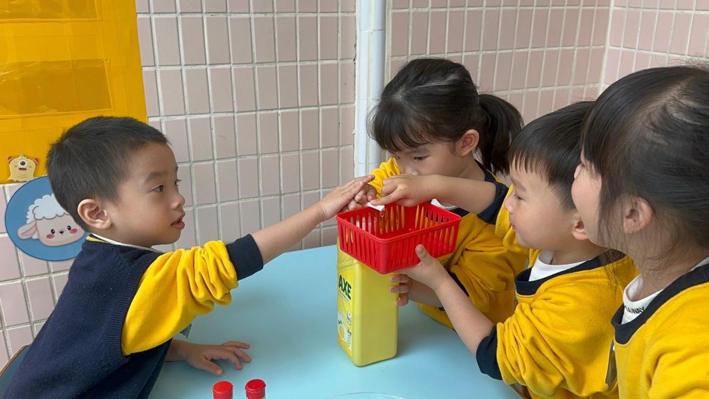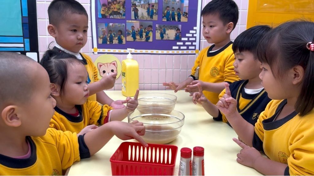 在一個充滿好奇的早晨,幼稚園(117威龍分校)裡的小小科學家們興奮地圍在一起,準備進行一場神奇而有趣的實驗。桌上擺好了胡椒粉、洗潔精、清水和盆子,孩子們睜大眼睛,滿是期待。