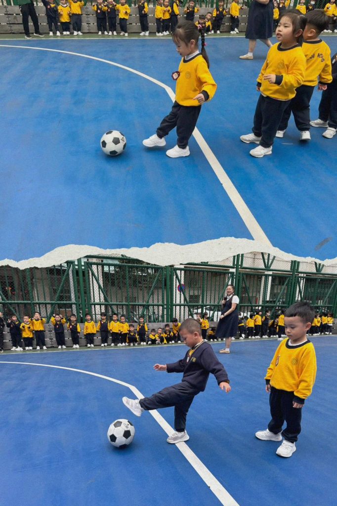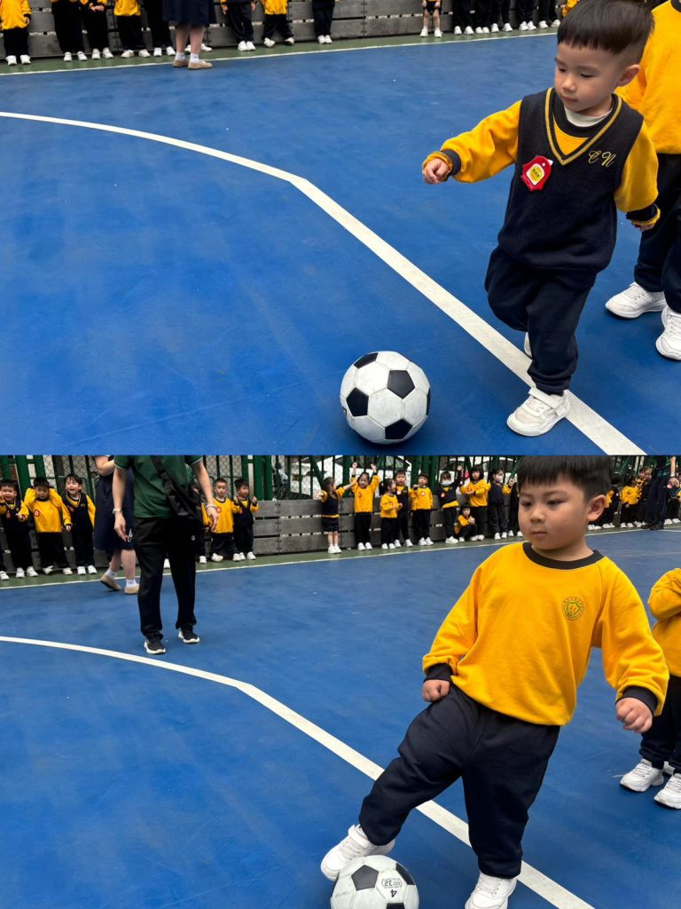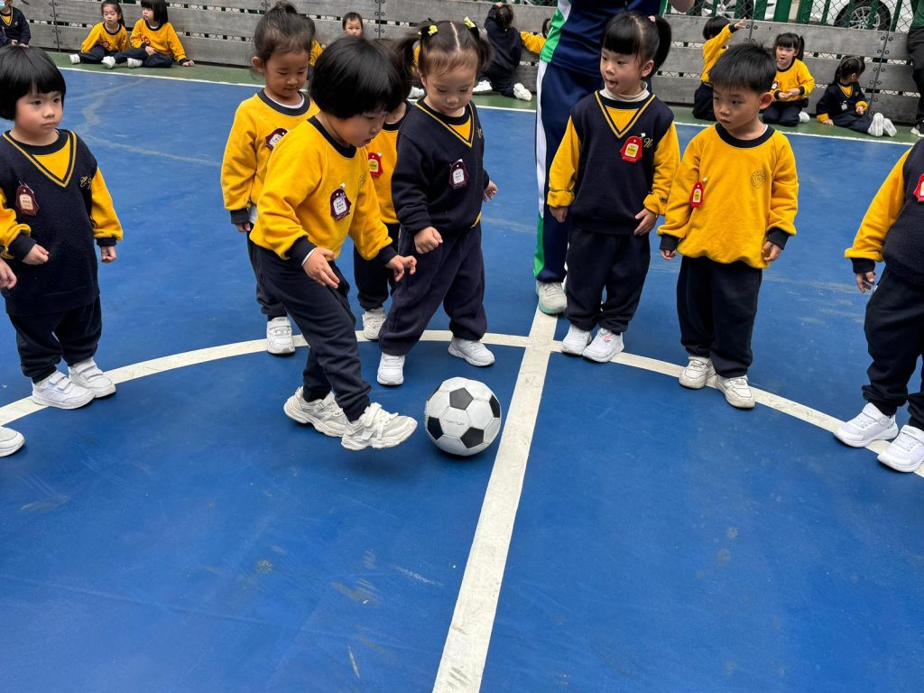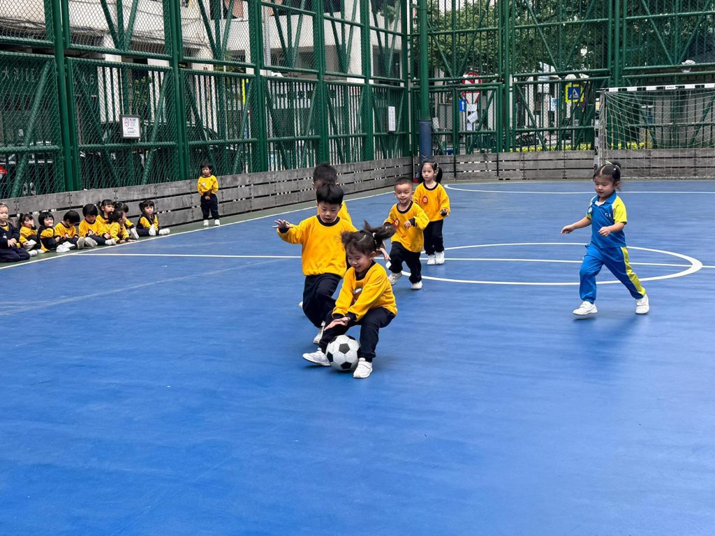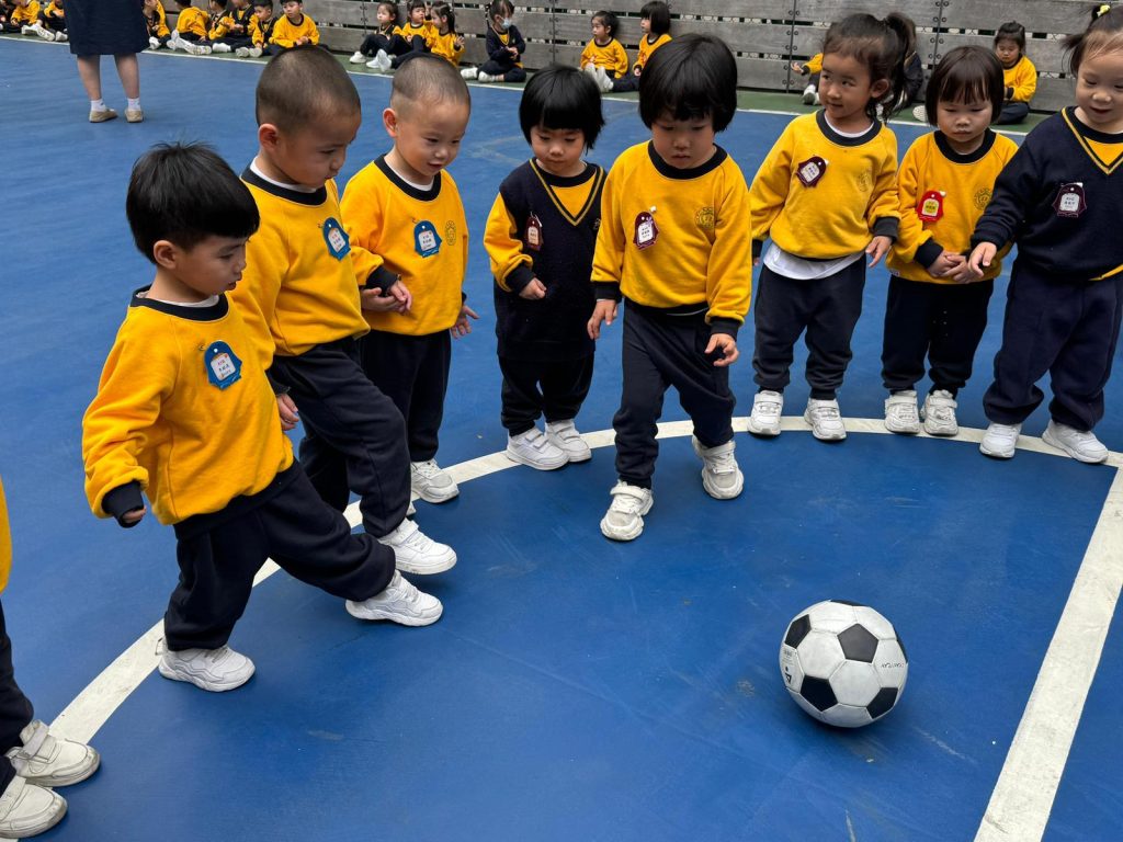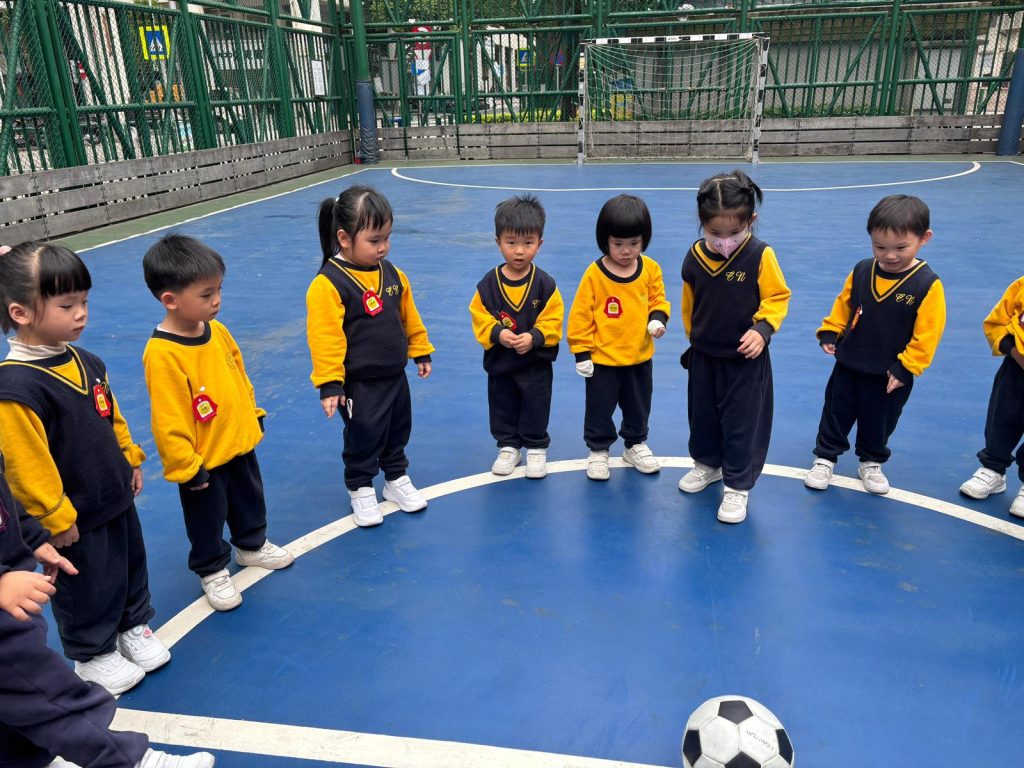 午後的陽光慷慨地灑在球場上,一群身穿運動服,幼稚園(117威龍分校)低班的孩子,正迎來他們人生中第一場集體足球體驗。