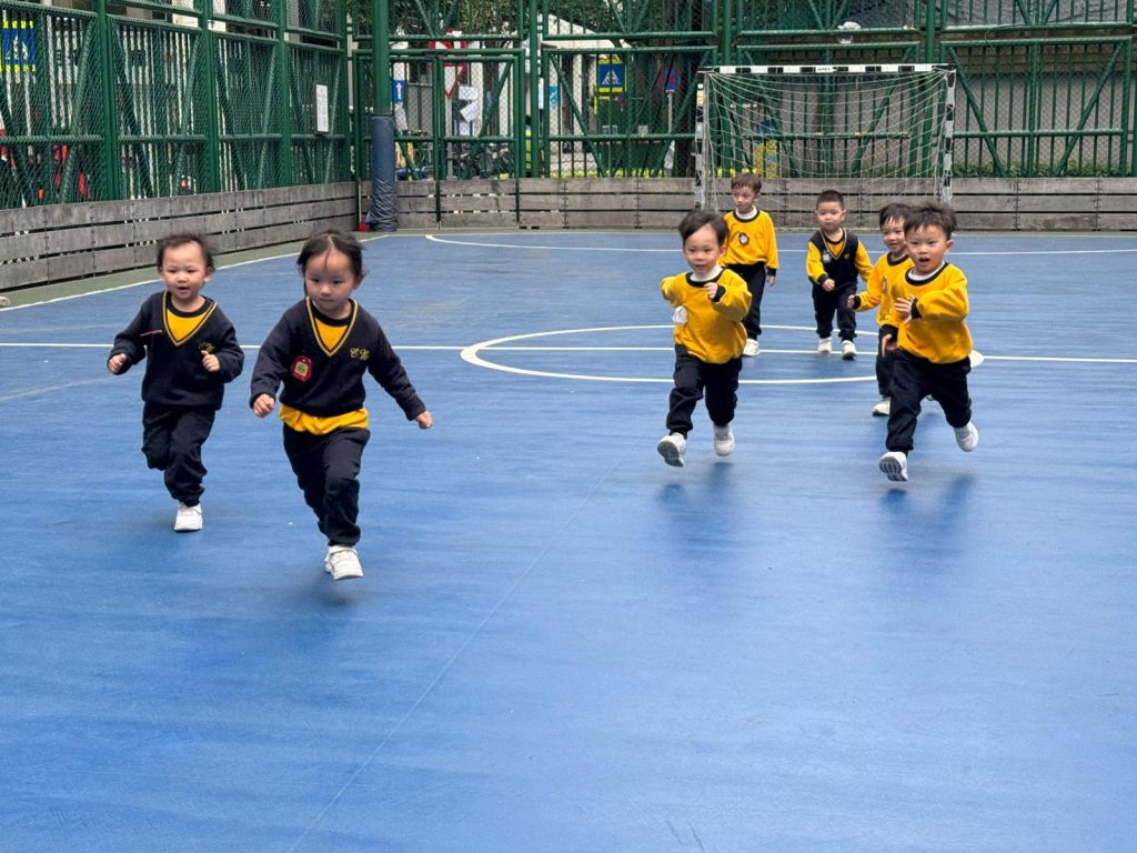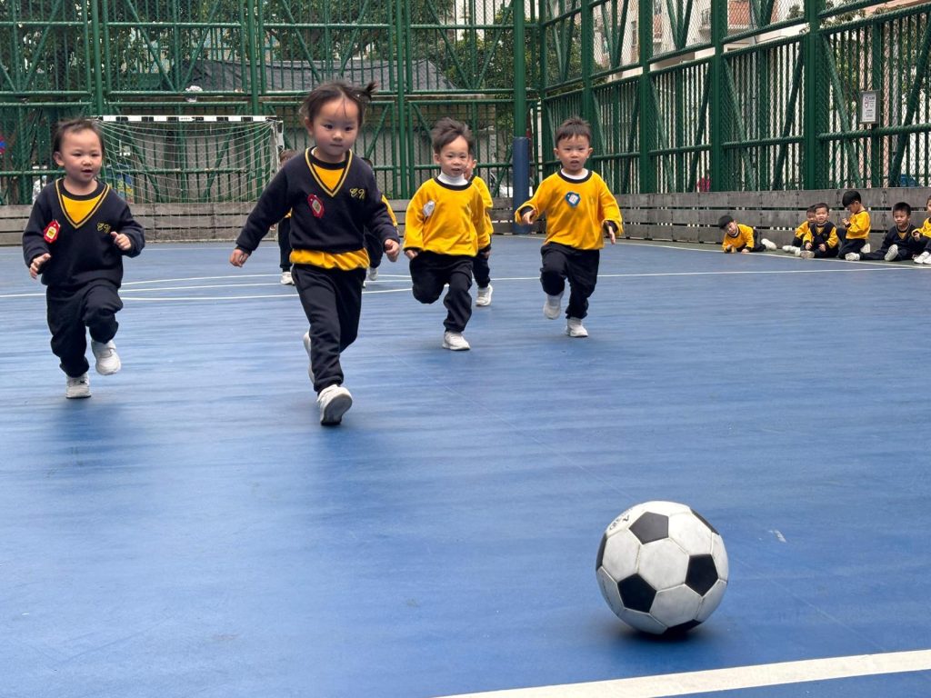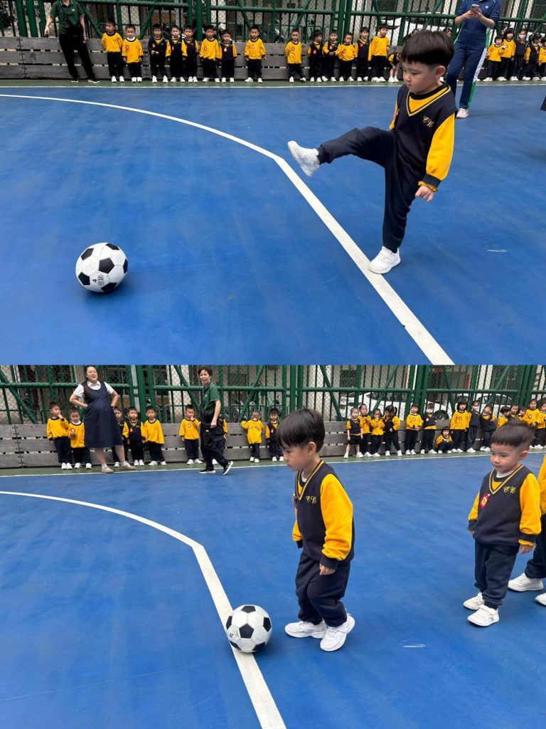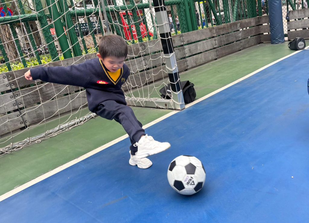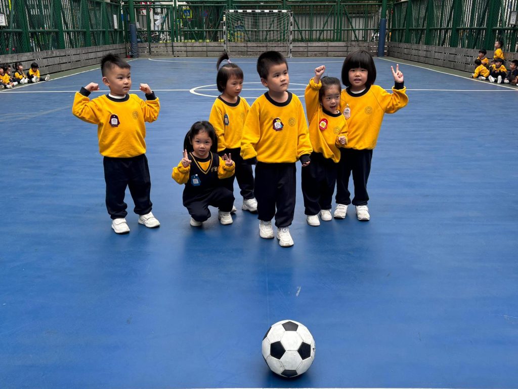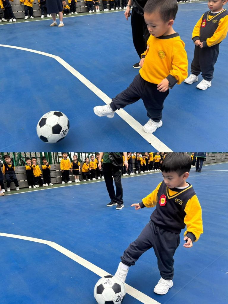 午後的陽光慷慨地灑在球場上,一群身穿運動服,幼稚園(117威龍分校)低班的孩子,正迎來他們人生中第一場集體足球體驗。