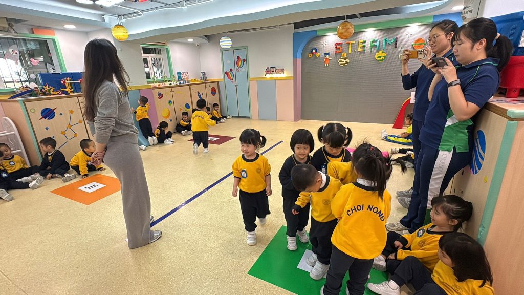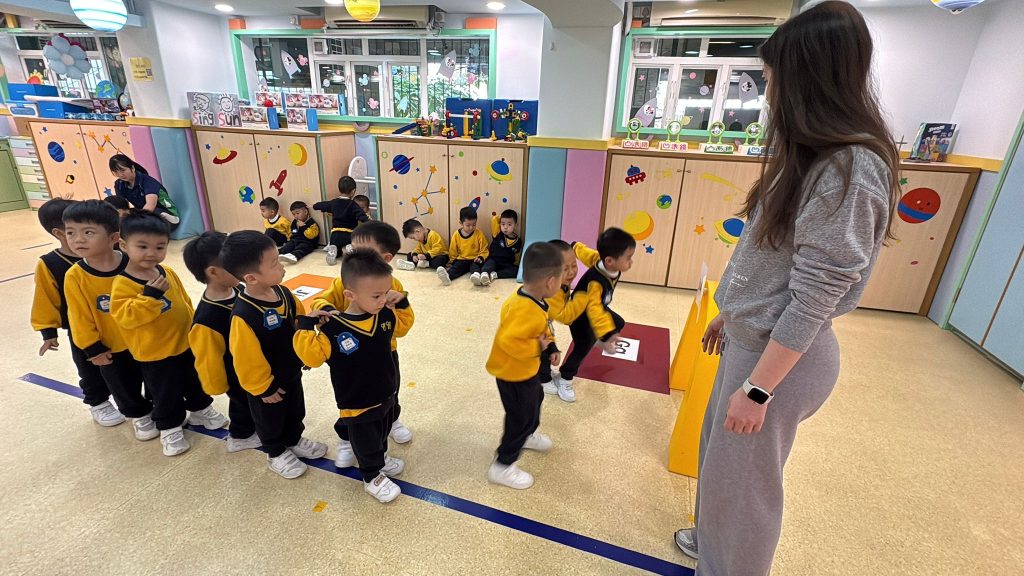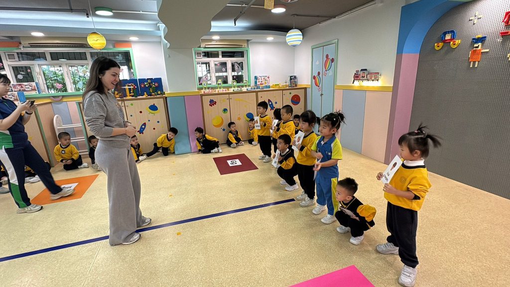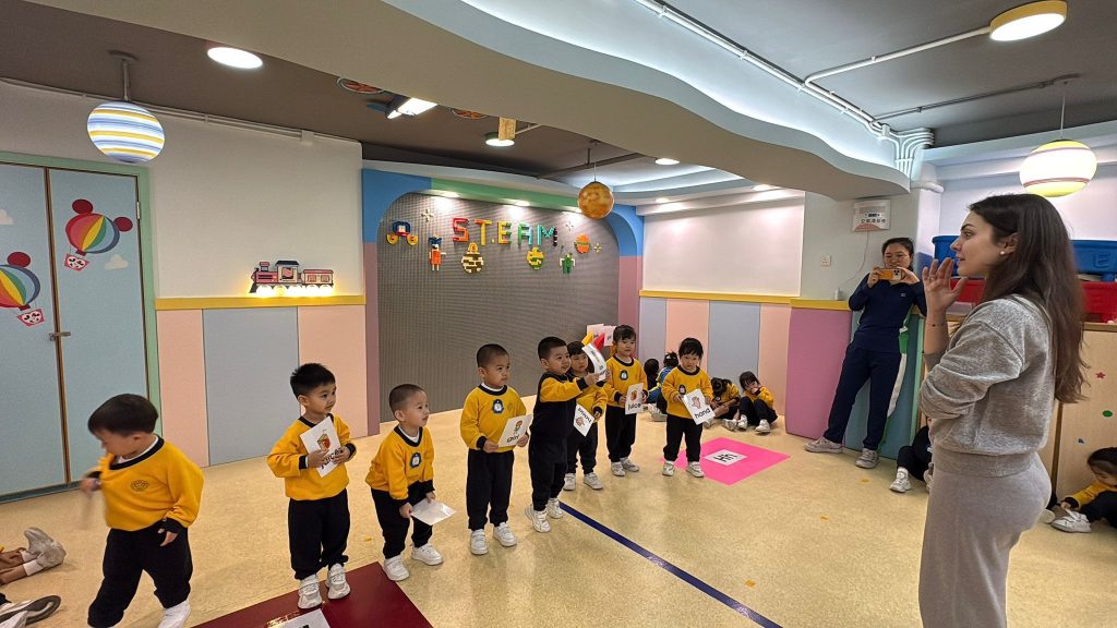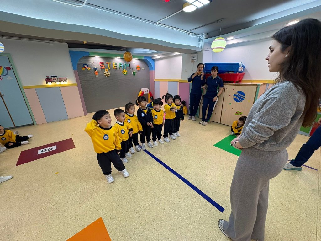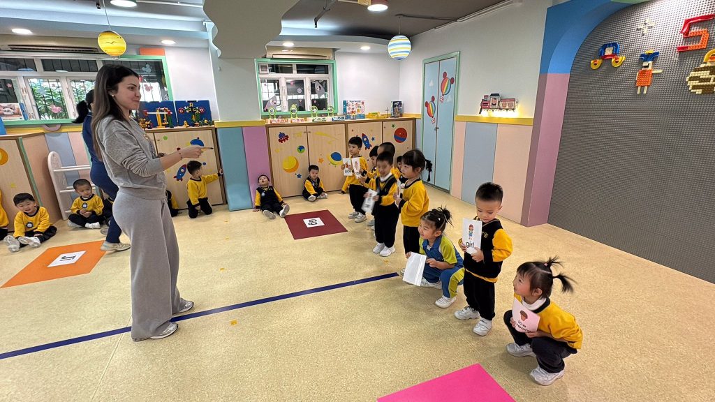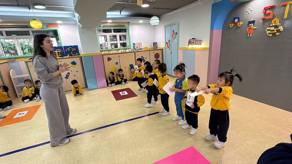 幼稚園(117威龍分校)英語課透過「玩中學」讓小朋友在專注與歡笑中掌握字母與常用單詞。課堂聚焦字母 G、H、I、J,以及單詞 hands、juice、ice cream、girl。孩子們先玩蘿蔔蹲聽到 Miss Vanessa 說的單詞,手持對應詞語的小朋友立即蹲下,訓練聽辨與反應。接著是字母奔跑賽,聽口令迅速跑入 G/H/I/J 的框框,強化字母辨識。最後在聽到“girl / hands / juice / ice cream”立刻跳到對應拱門前,結合聽說與動作記憶。整堂課小朋友積極參與,讓我們一起看看小朋友們的學習成果吧。