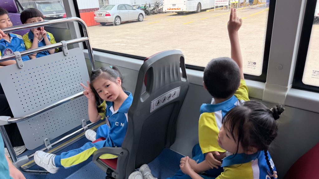 在導賞員姐姐的講解下,孩子們認識了巴士公司的發展歷史,還認真學習了乘坐巴士的各種禮儀和安全守則,知道了要排隊上車、主動讓座、緊握扶手,做個守規矩的小乘客。