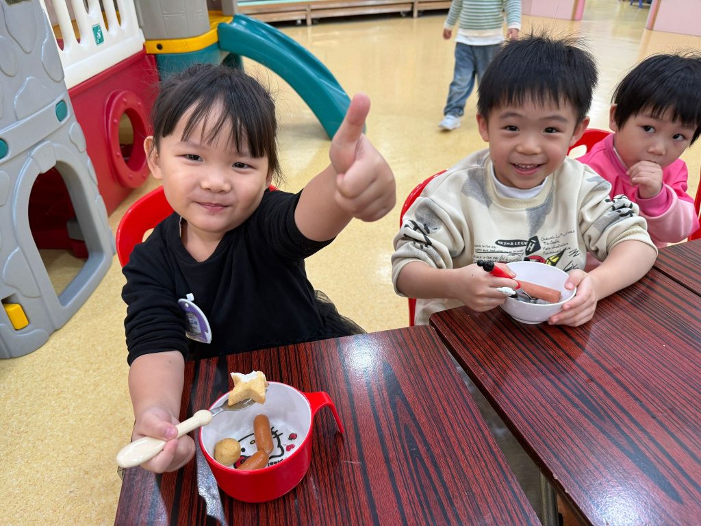 這場結合食育與慶祝的活動,讓孩子們從中學習食材分類與分享禮儀。最動人的是,孩子們主動將煮好的第一份食物分享給老師與夥伴,稚嫩的祝福話語溫暖了整個空間。