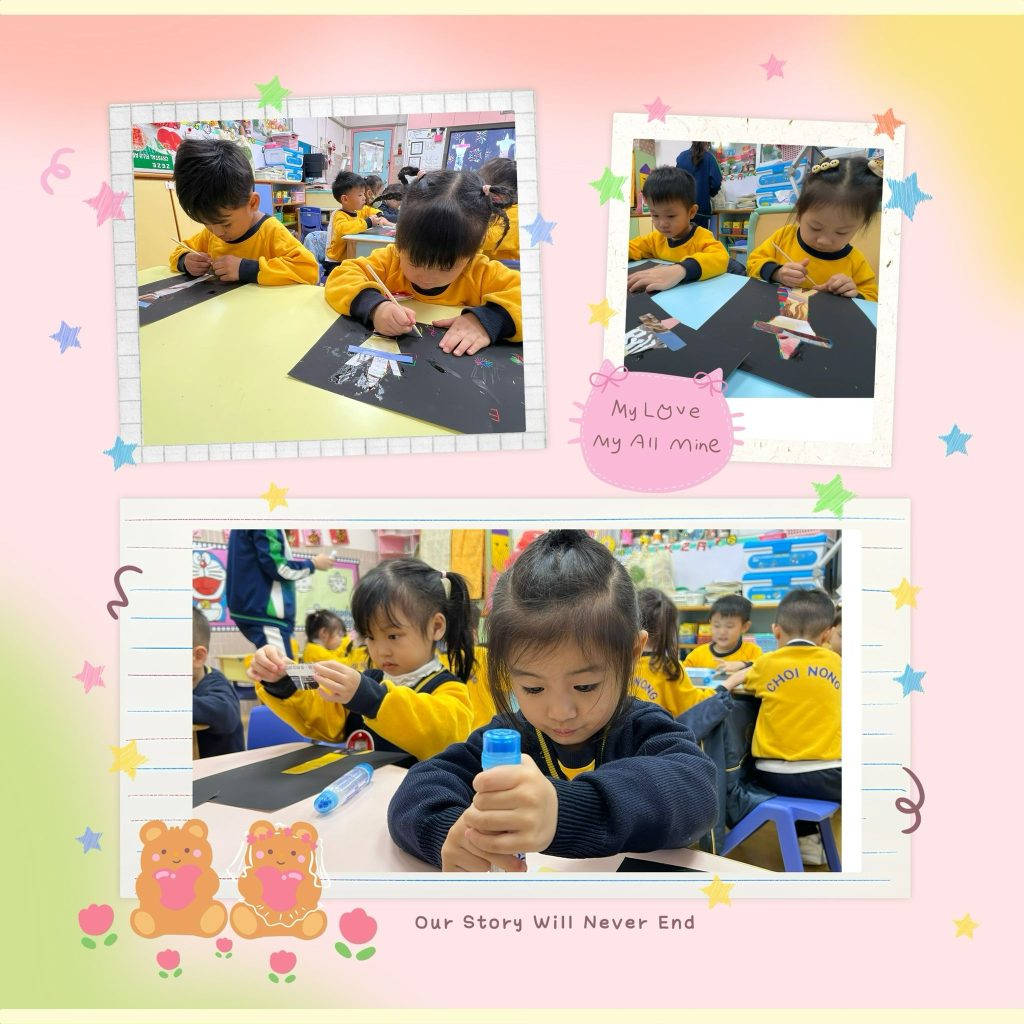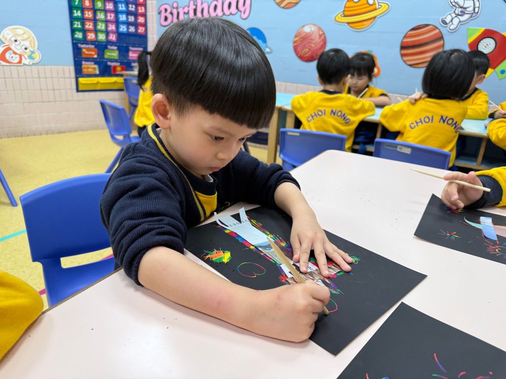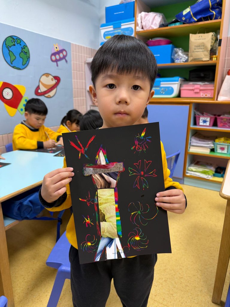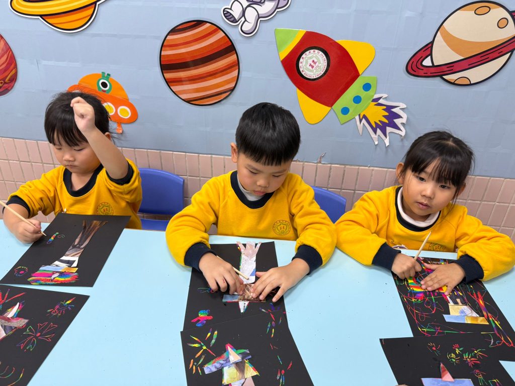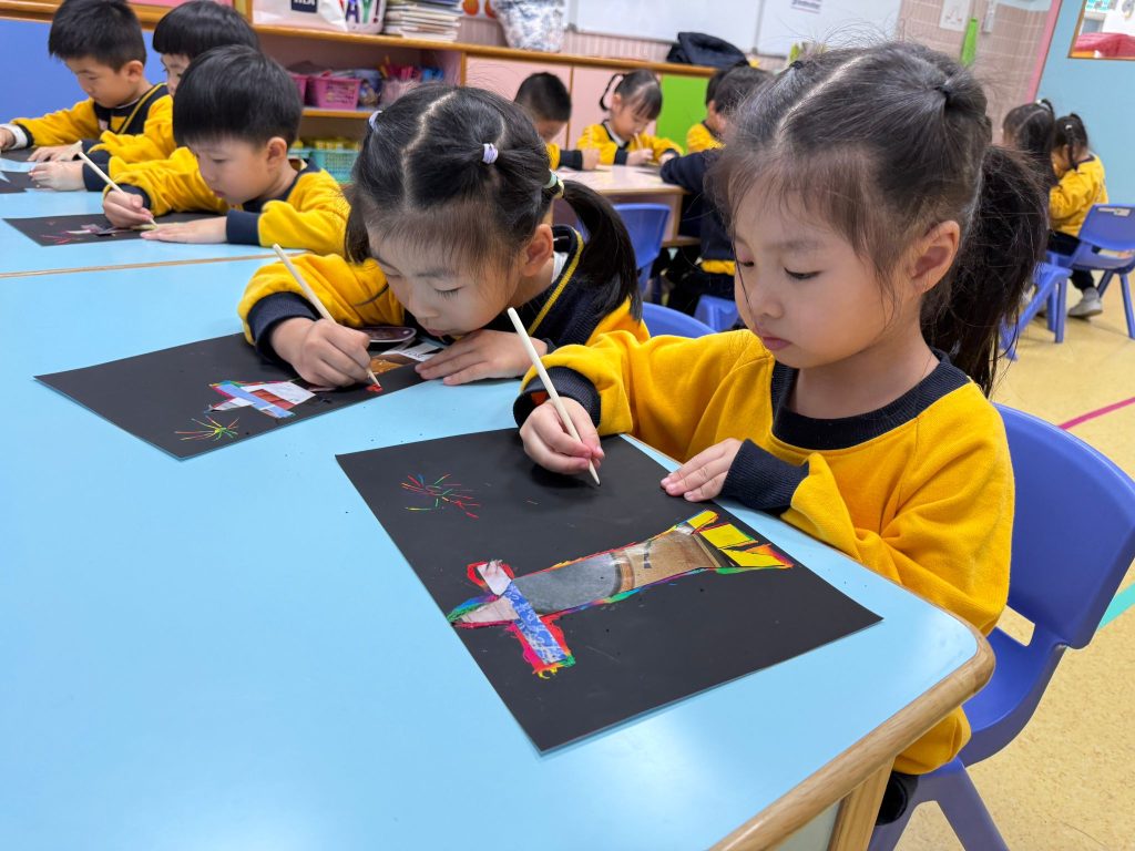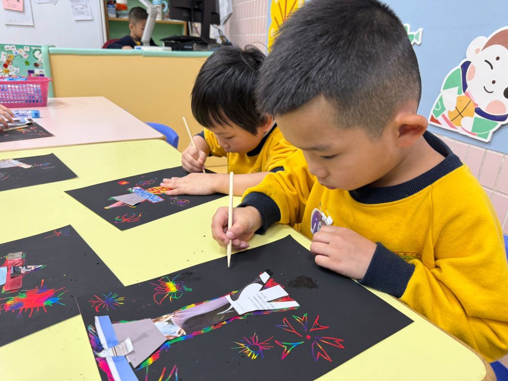 今年是澳門特別回歸祖國26周年,每年特區政府都會有一系列的慶祝活動,其中包括放煙火。相信每位小朋友都有在澳門旅遊塔附近觀看過煙火的體驗。所以本次K2級小朋友就創作了一幅與別不同的畫作,慶祝澳門回歸祖國。