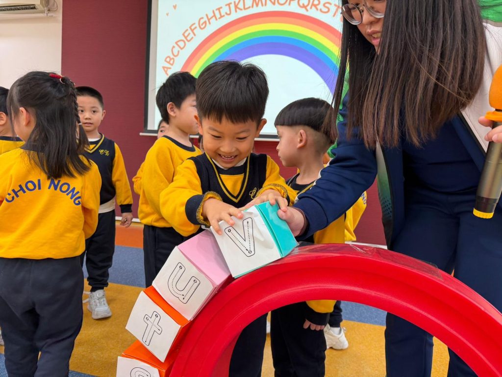幼稚園(117威龍分校)推行兩文三語教育,深信語言學習應始於愉悅的體驗。是次「Make an ABC Rainbow」活動正是英語遊戲教學的完美體現。我們透過創設沉浸式、富有趣味性的情境,將學習目標融入遊戲任務中。這種教學模式能有效降低幼兒的學習焦慮,最大程度地激發他們的內在動機與學習興趣。孩子在「玩中學」的過程中,不僅輕鬆掌握了語言知識,更同步訓練了聆聽指令、手眼協調、邏輯排序及社交協作等多項關鍵能力。我們注重為幼兒奠定穩固的語文基礎,透過多元有趣的活動,讓孩子愛上英語、自信表達,從而在中英兼擅的環境中健康成長,迎接未來。