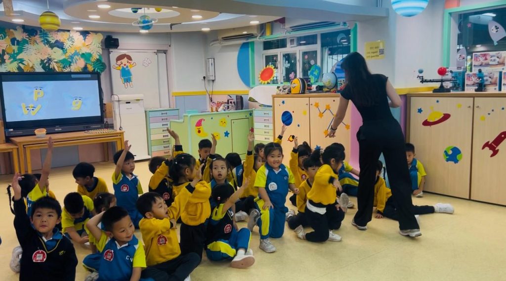 活動貫徹「遊戲中學習」的理念,將「W」的發音與肢體動作及科技遊戲結合,讓幼兒在自然愉快的氛圍下開口說英語。孩子們透過互動遊戲,認識了以「W」開首的單字,如Windmill(風車)watch(手表)、window(窗)等。