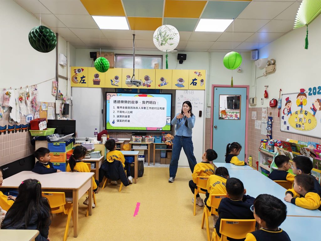 小朋友熱烈地討論:「上學的鞋子是需要,閃亮的新鞋是想要」、「吃飽飯是需要,每天吃冰淇淋是想要」。其後,導師總結到,真正的理財智慧,就像照顧一棵樹,要先滿足「需要」的根基,再小心灌溉「想要」的枝葉,而不是任意摘取。 這場簡單而深刻的講座,透過反面的故事例子,讓小朋友直觀理解過度滿足「想要」的後果,在幼小心靈中種下珍惜與選擇的理財種子。