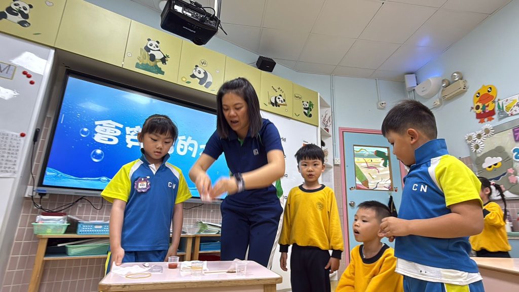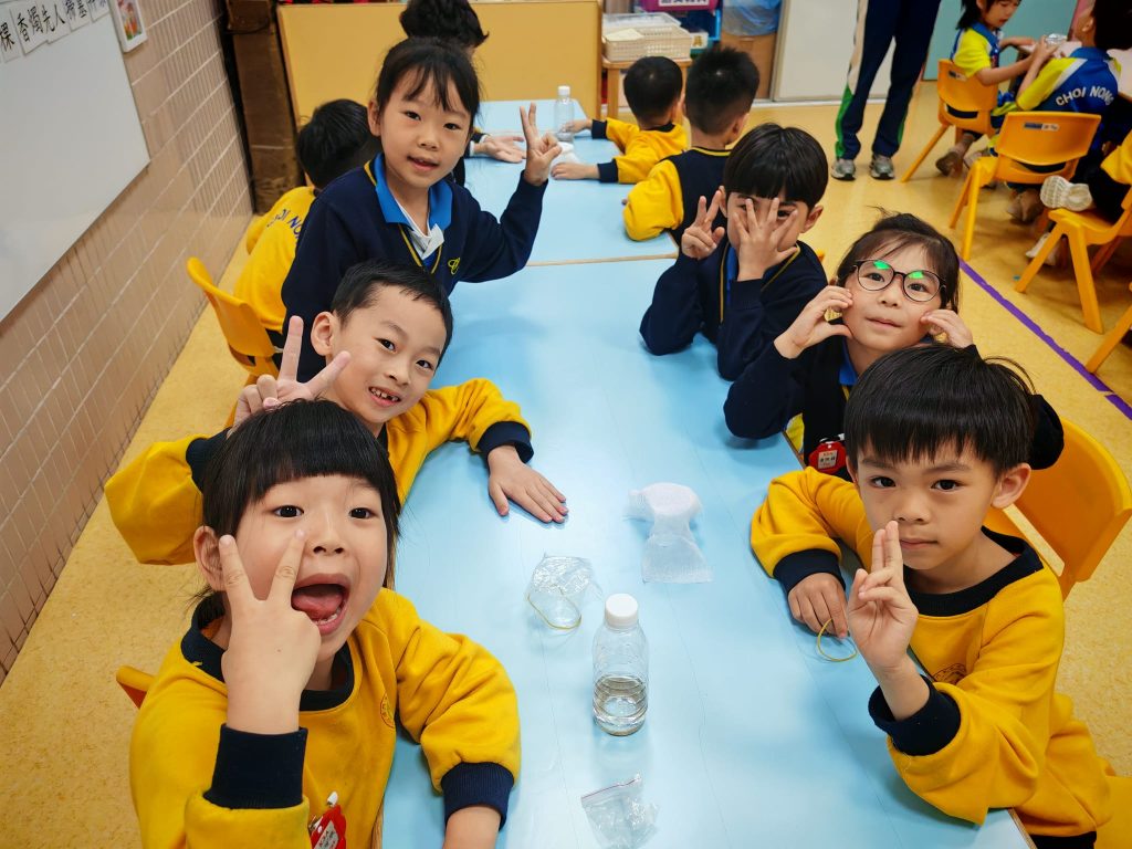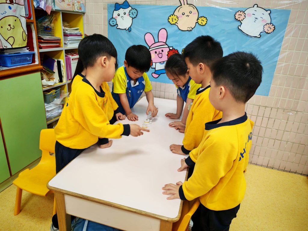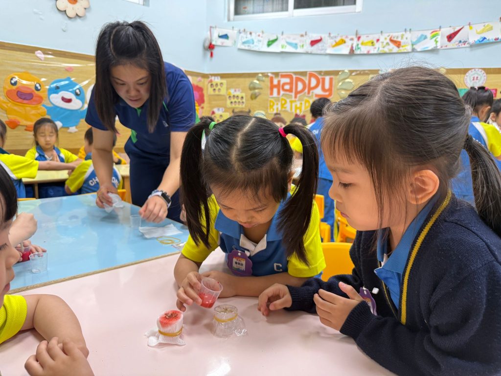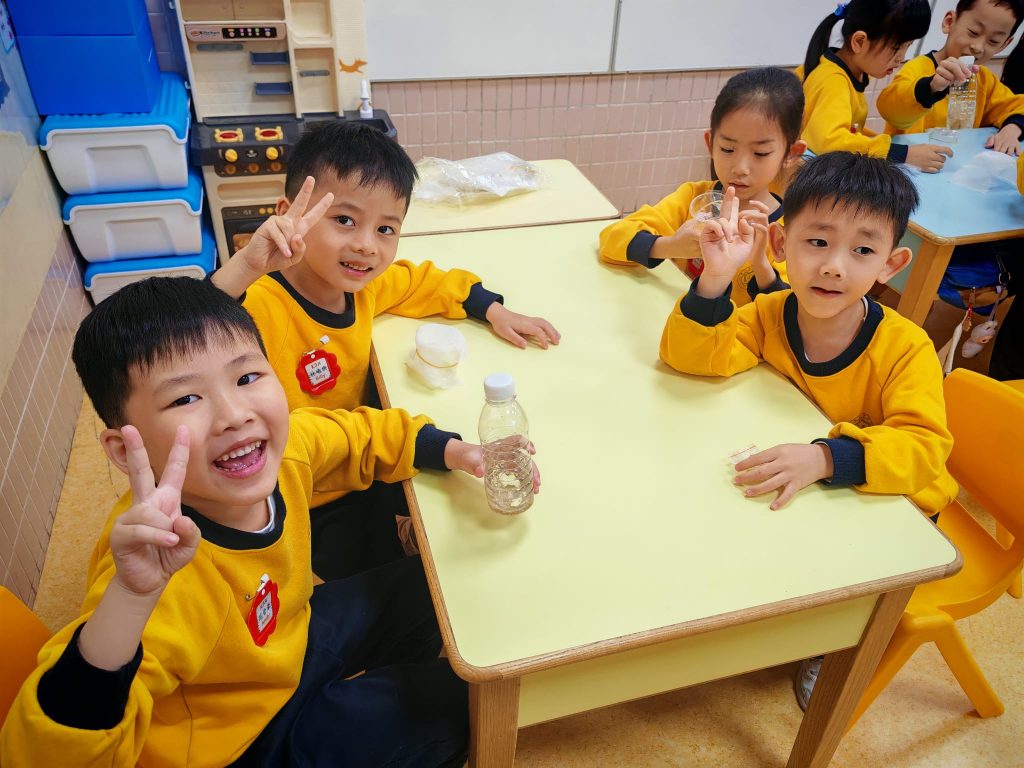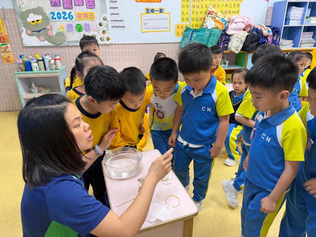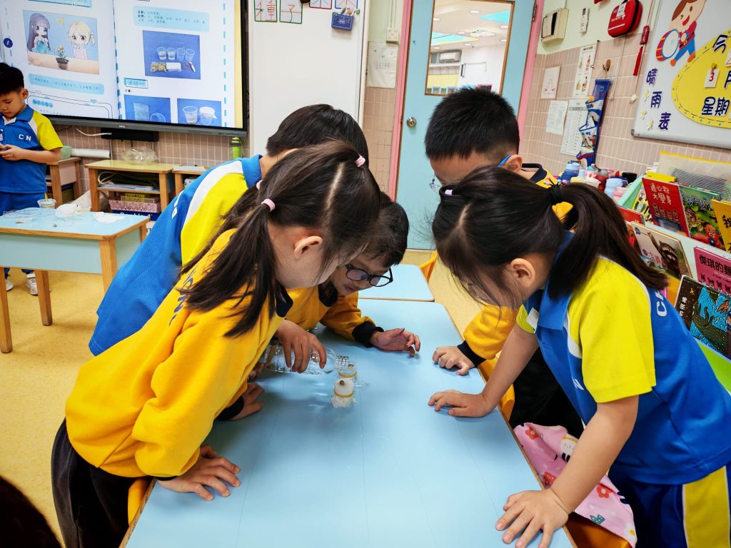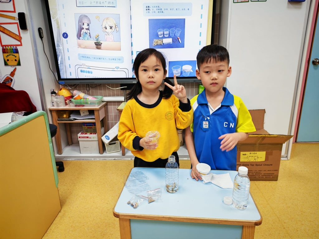 幼稚園(威龍分校)K3班的小朋友化身小小科學家,進行了一個神奇的實驗——「會穿牆的水」。