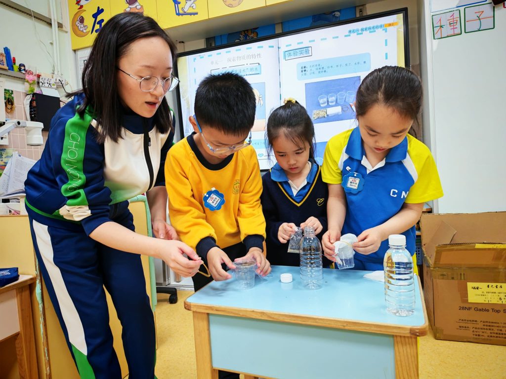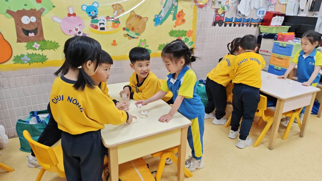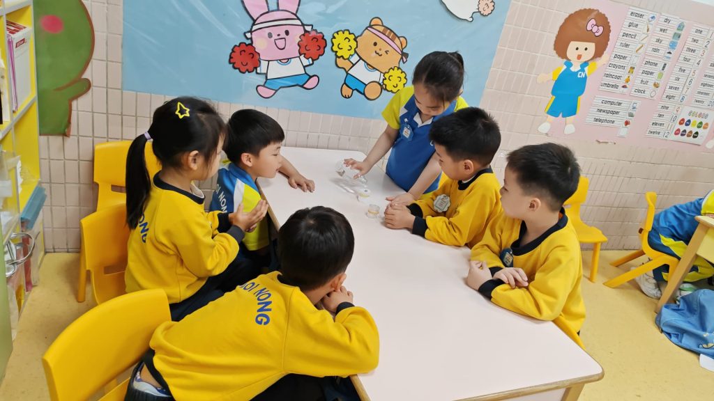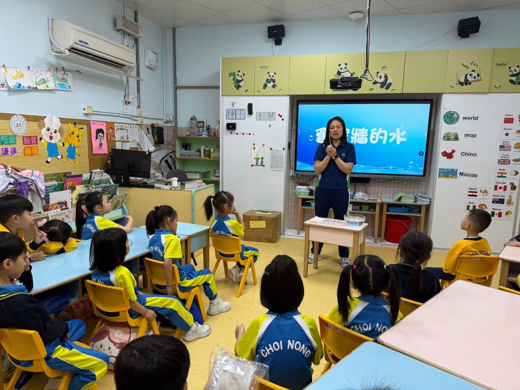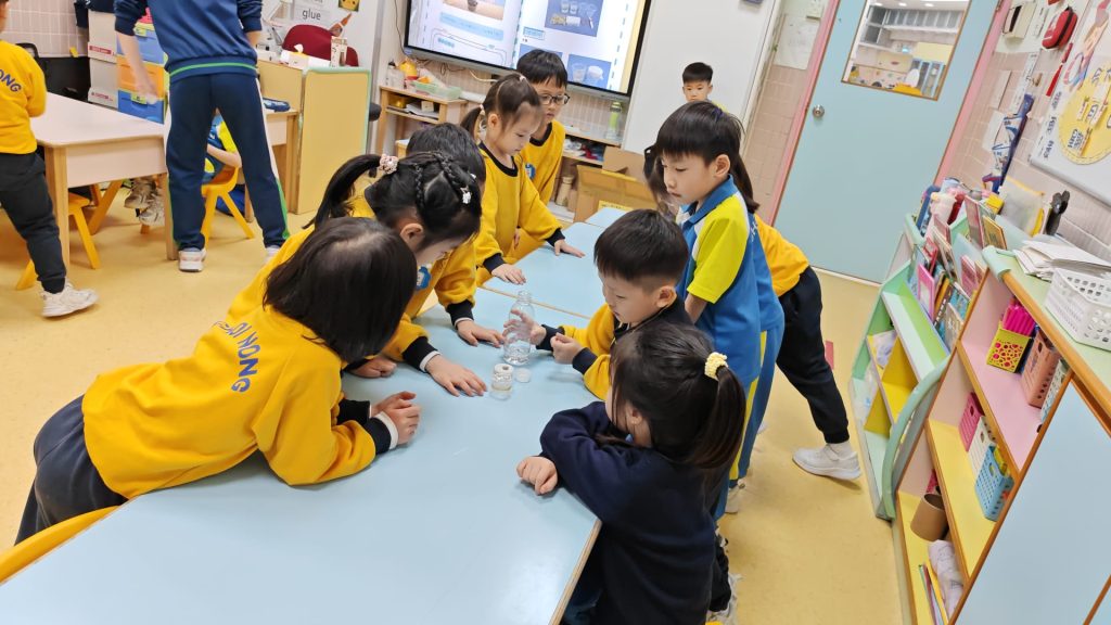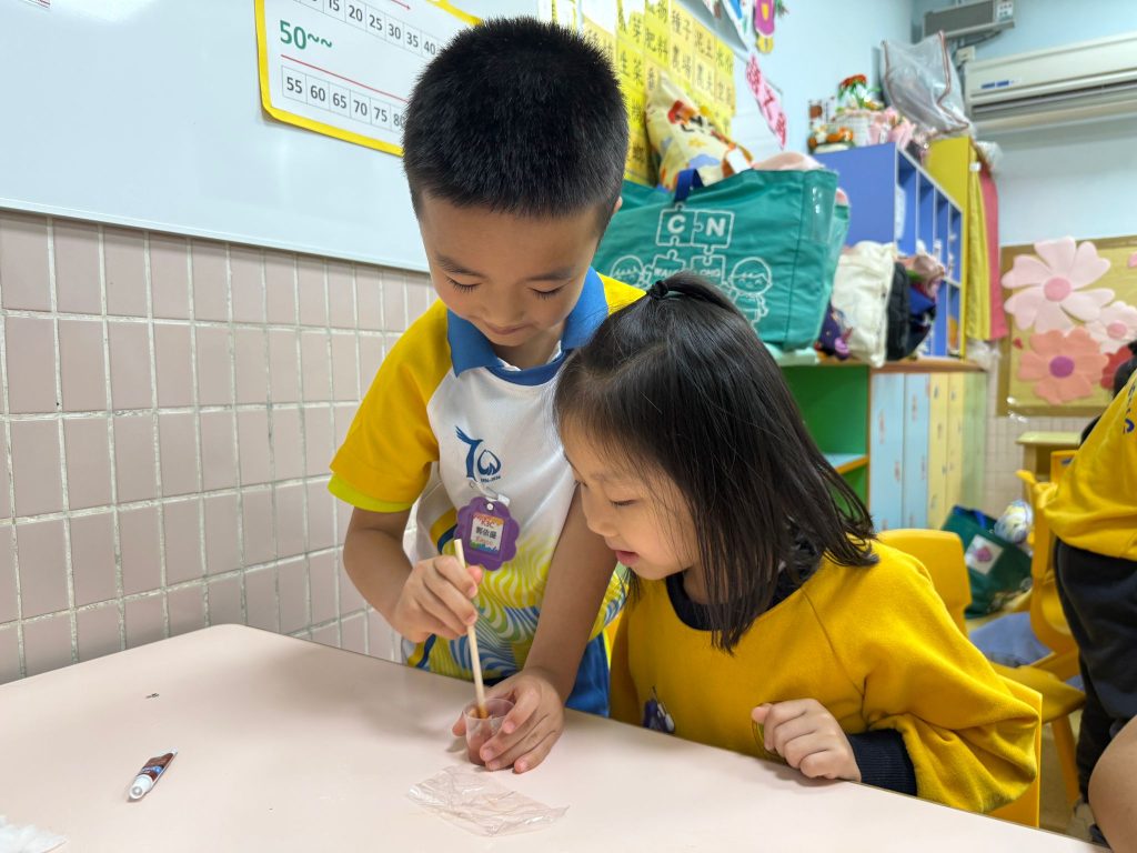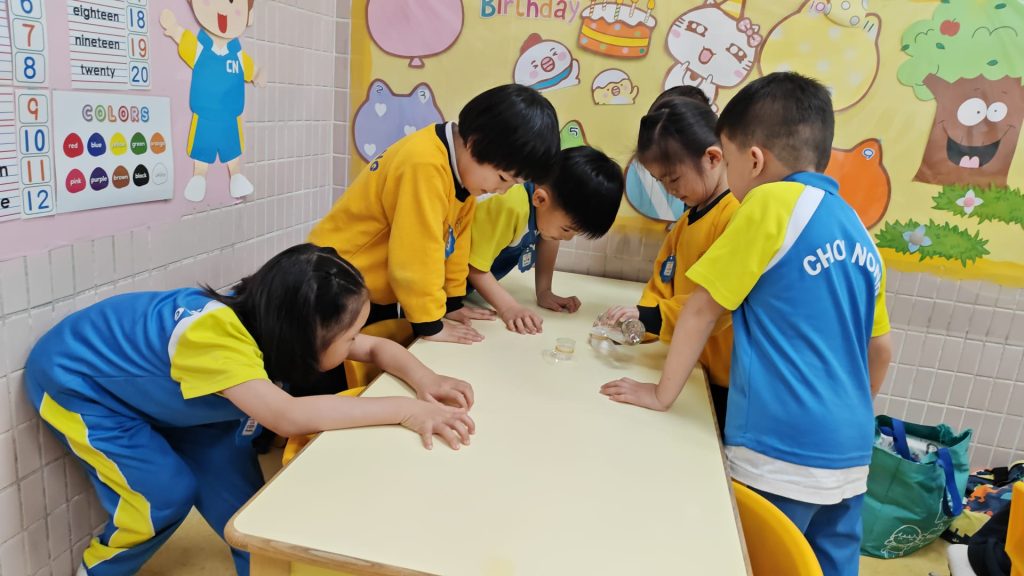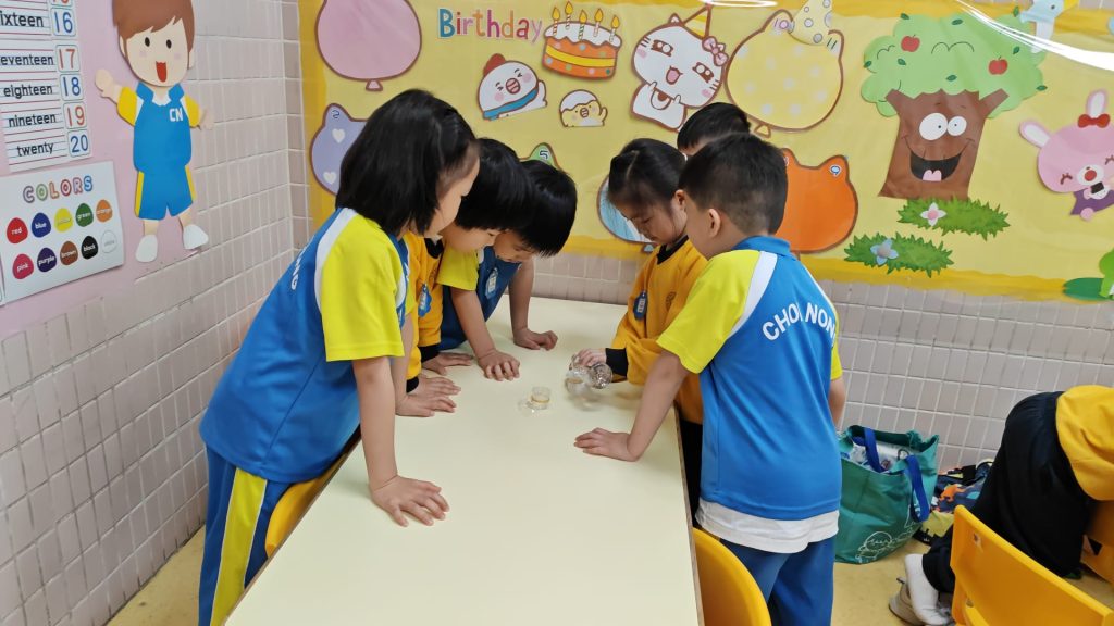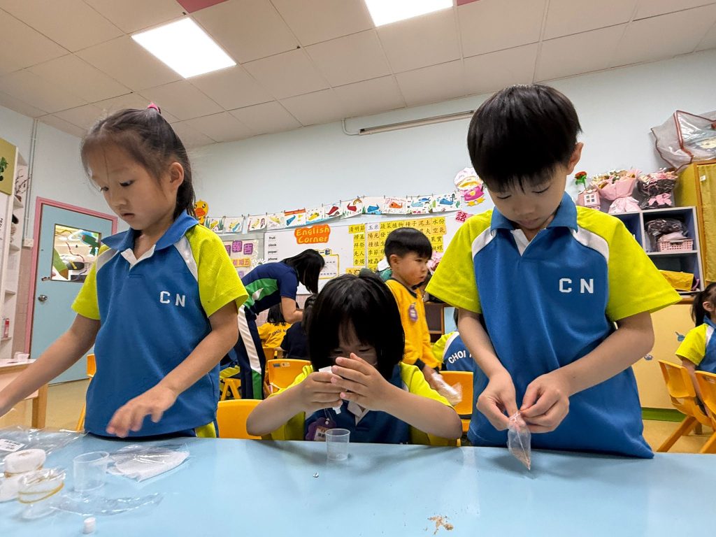幼稚園(威龍分校)K3班的小朋友化身小小科學家,進行了一個神奇的實驗——「會穿牆的水」。