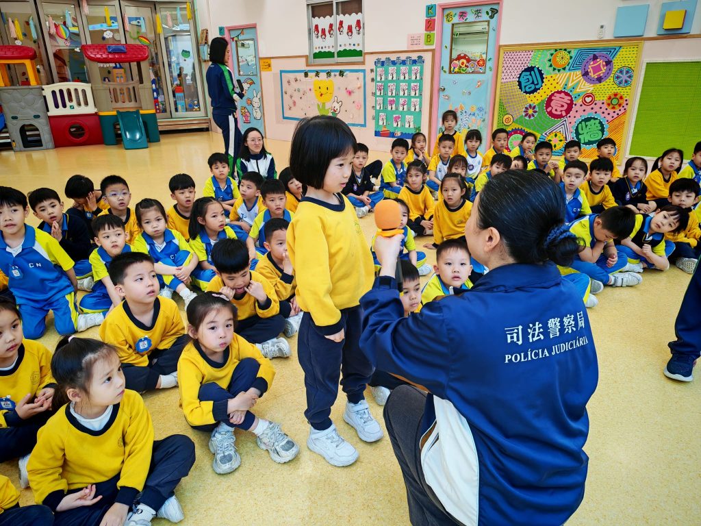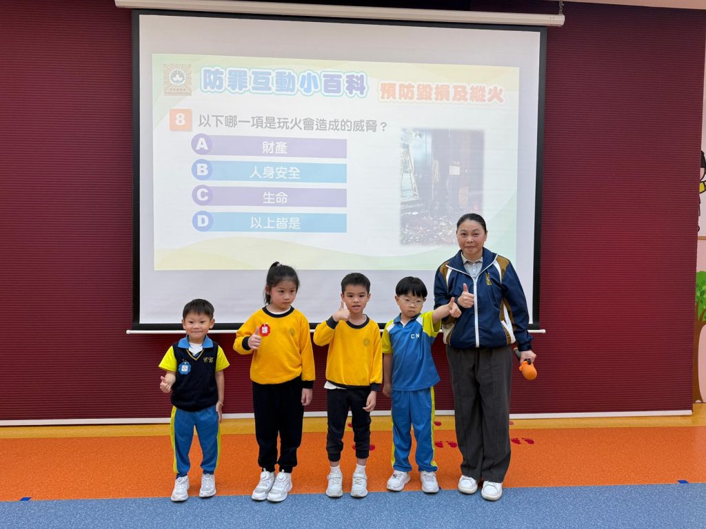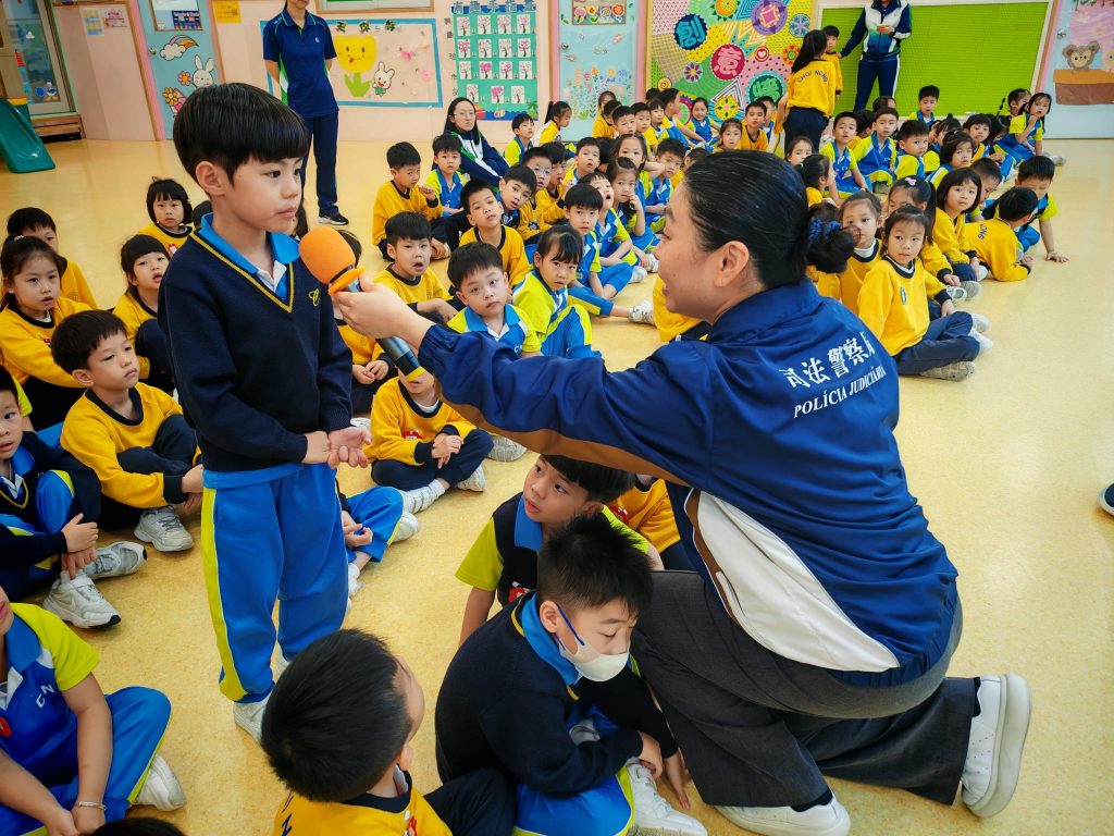4月2日,幼稚園(117威龍分校)特別邀請司法警察局的警察代表Madam Lam到校,為K3級小朋友舉辦了一場別開生面的法治教育講座。講座以「毀壞與縱火」為主題,透過生動的例子和淺顯易懂的語言,向小朋友講解相關的法律知識與觸法後果。Madam Lam不僅耐心地解釋什麼是毀壞公物、縱火行為,還強調這些行為對社會和個人可能造成的危害,提醒小朋友要愛護公共設施,懂得保護自己與他人安全。