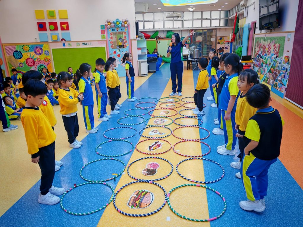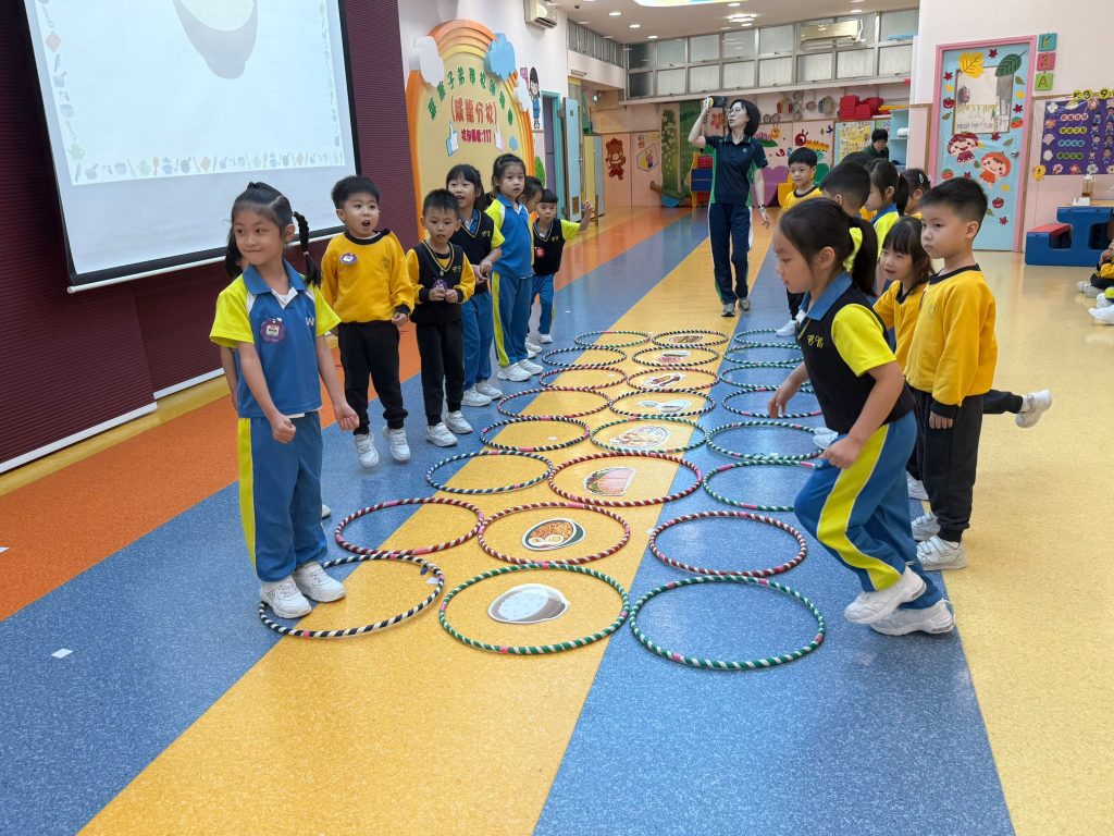 之後老師邀請小朋友出來,比賽最快跳入相應的呼拉圈,並鼓勵其他小朋友用英語句子:“What do you like to eat?”提問,然後小朋友回答:“I like to eat……”。透過遊戲,增加了小朋友學習的趣味性,幫助他們更好地理解和記憶這些詞彙。激發孩子們的思考和反應能力,小朋友在輕鬆愉快的氣氛中學習英語。不僅能夠學習到新的語言技能,還能培養他們的社交能力,享受學習英語的樂趣。