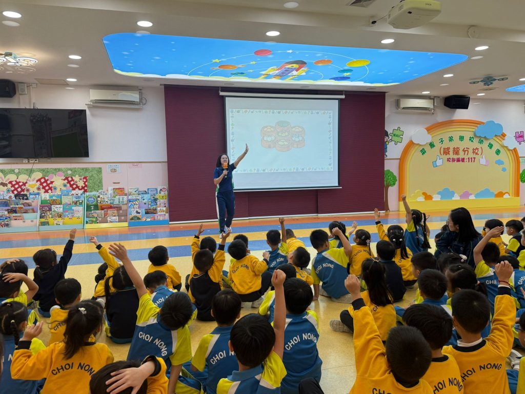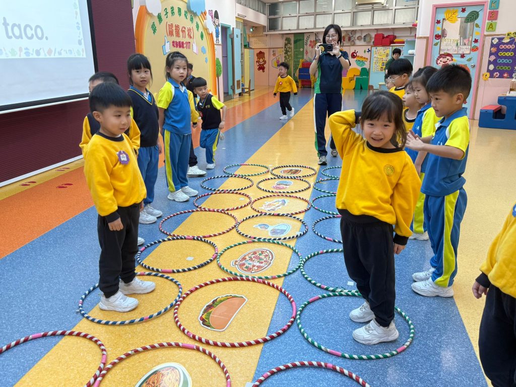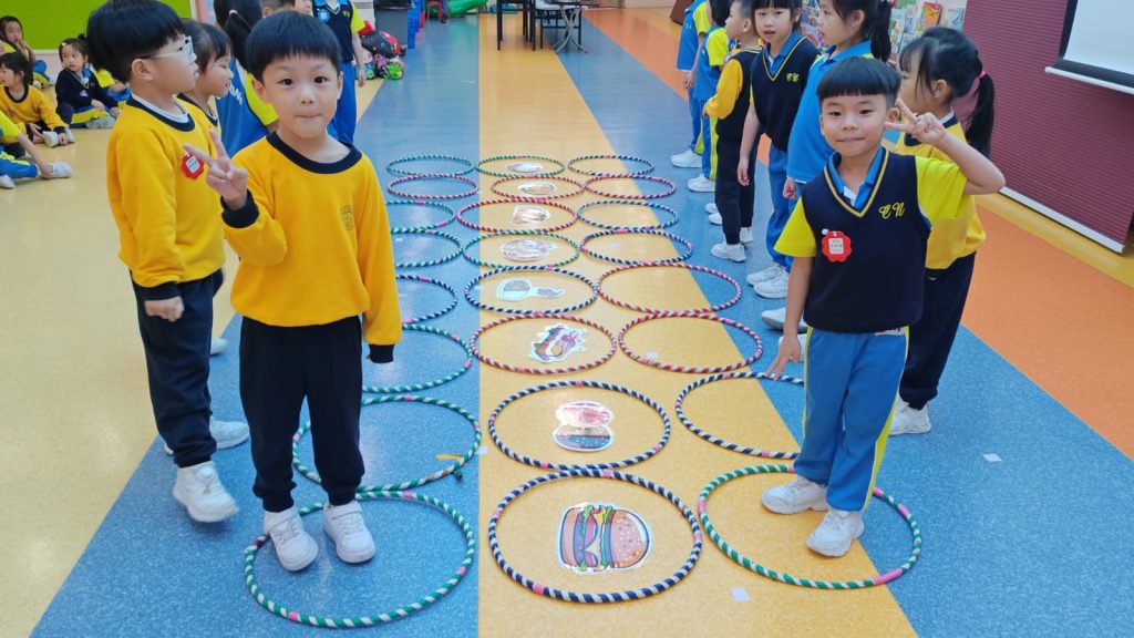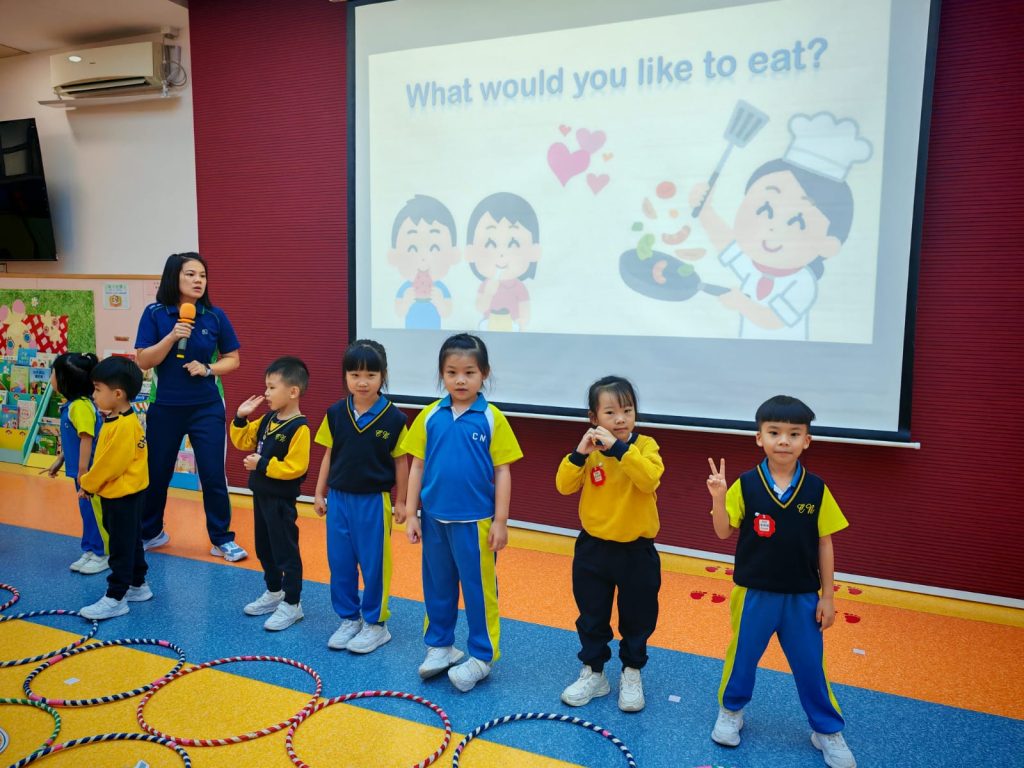 幼稚園(117威龍分校)K3英語週活動,老師設計了一個有趣的主題:「What would you like to eat?」。透過這個活動,孩子們不僅能學習到各種食物的英文生詞,還能鍛鍊他們的口語溝通能力。活動開始時,老師展示各種食物的圖片,如壽司(sushi)、披薩(pizza)…..,並引導孩子們嘗試用phonics拼讀字詞,並說出自己喜歡的食物。