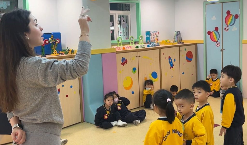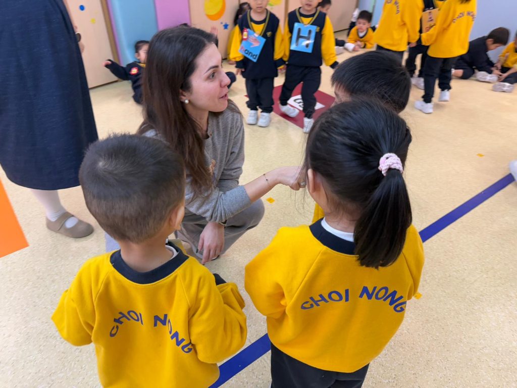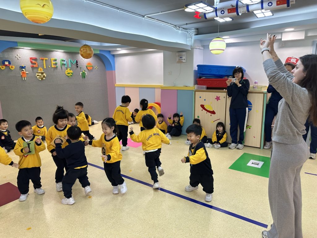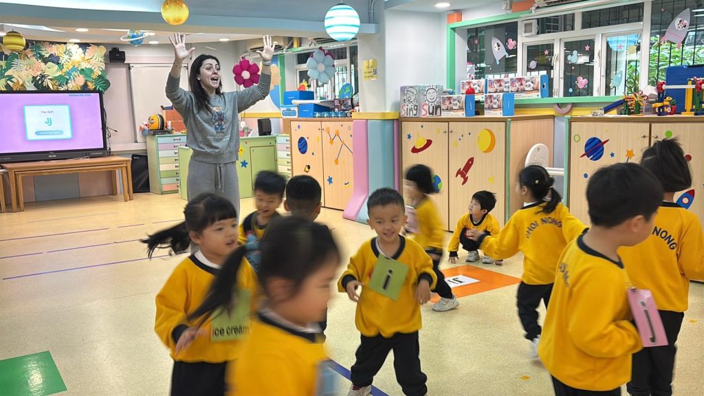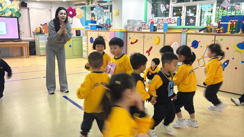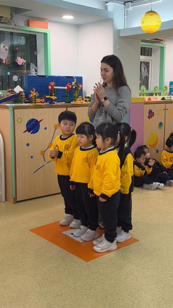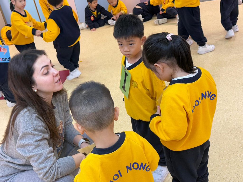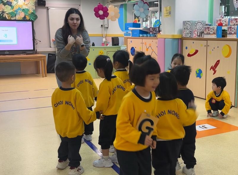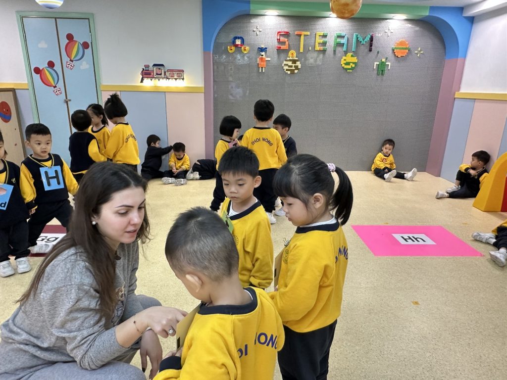 Miss Vanessa精心設計了一系列寓教於樂的遊戲,以促進小朋友們的學習興趣。她的話語總是充滿鼓勵與引導,耐心地在小朋友之間穿梭,確保每一位小朋友都能夠積極參與其中。當有小朋友勇敢地舉手回答問題時,Miss Vanessa會立即給予熱烈的掌聲和讚許的微笑,這樣的激勵不僅提升了孩子們的自信心,也讓他們感受到學習的樂趣。