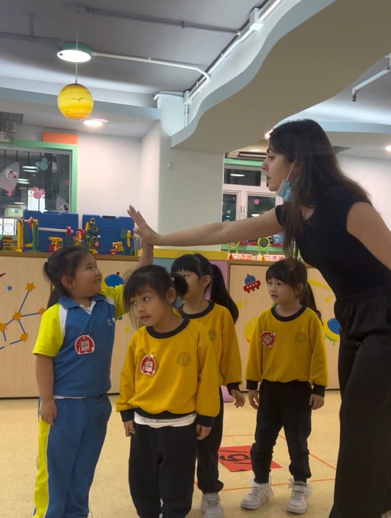 透過這種手腦並用的方式,小朋友在 Ms. Vanessa 的引導下,大聲且正確地唸出每個字母的讀音。這場寓教於樂的活動,不僅鍛鍊了孩子的手部小肌肉,更讓英文字母的學習變得生動有趣,在輕鬆的氛圍中紮下良好的英語基礎。