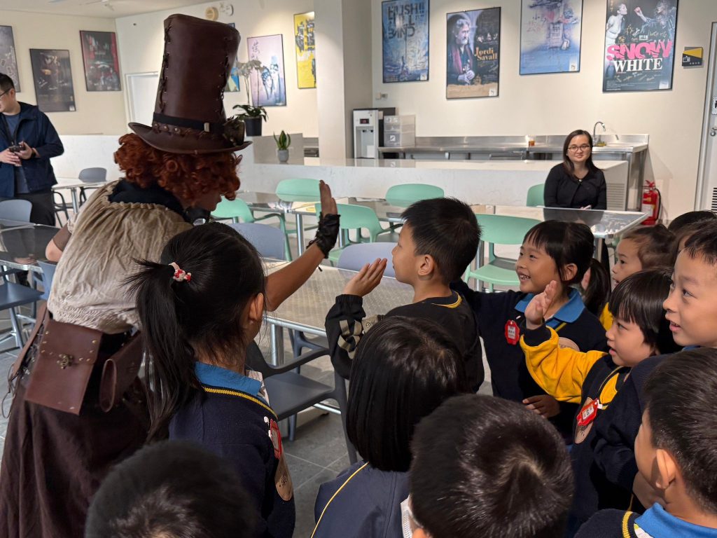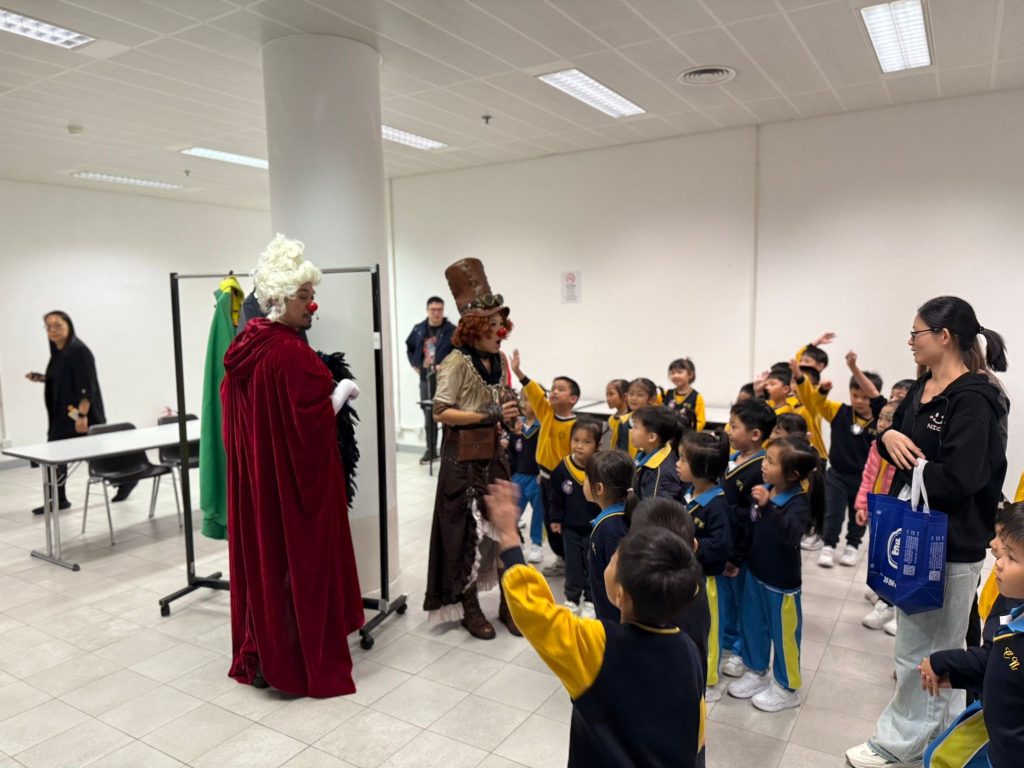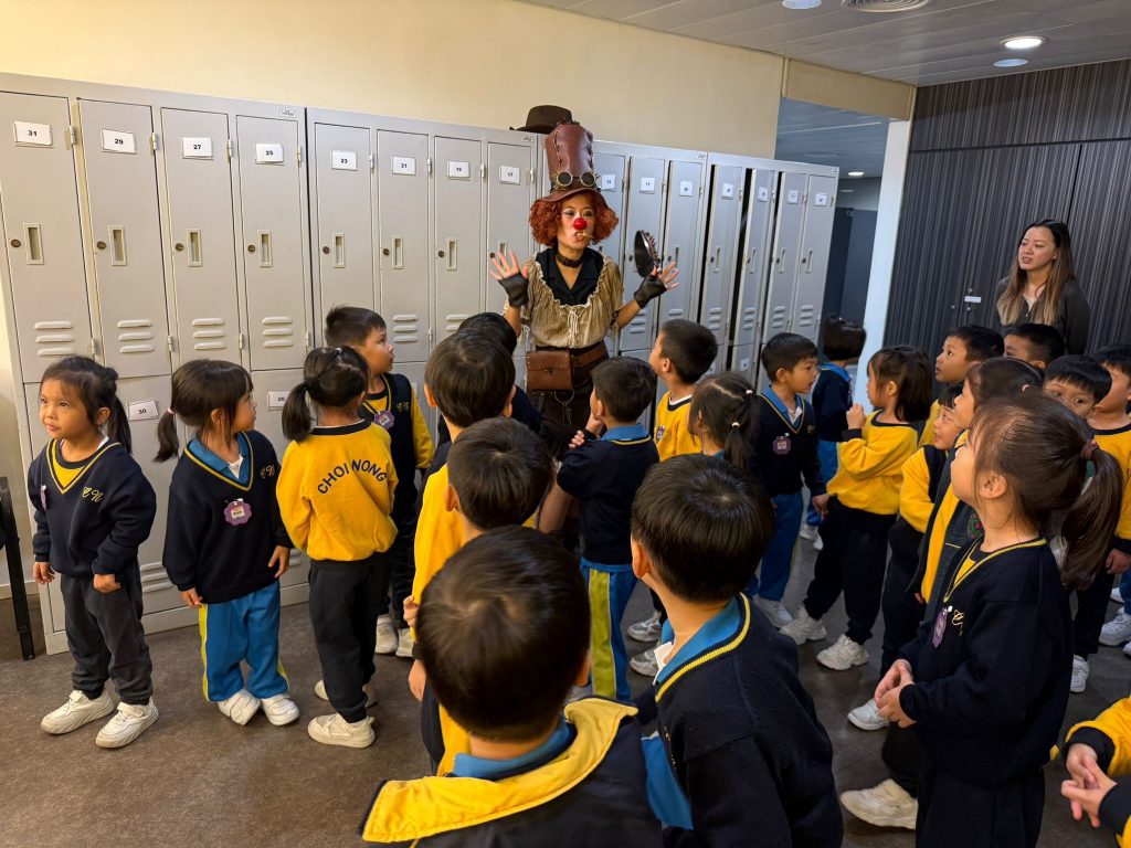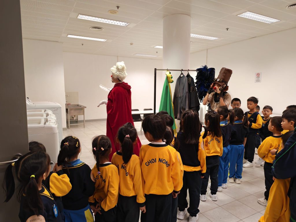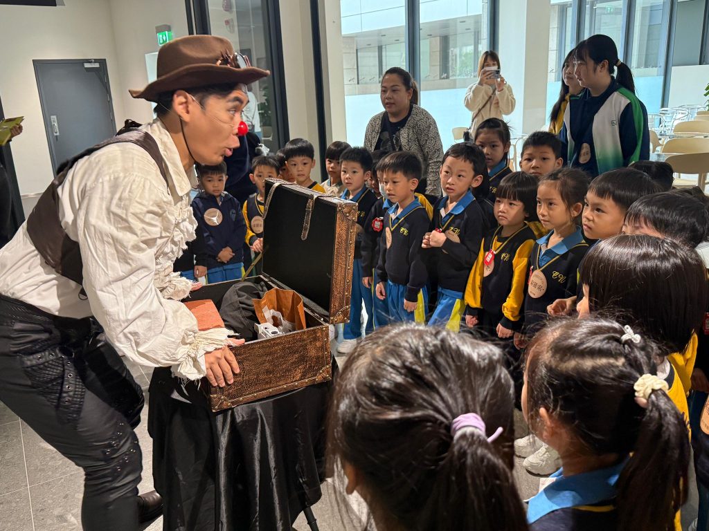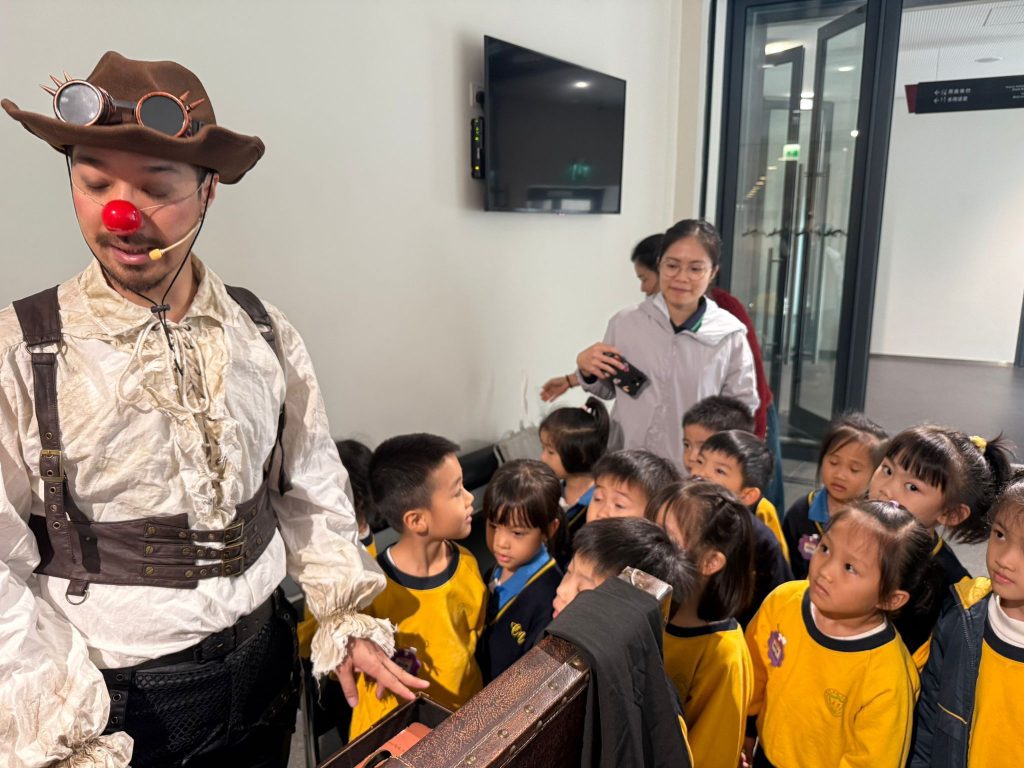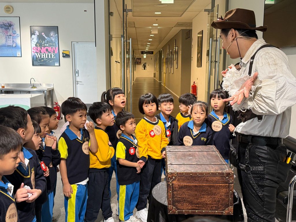 幼稚園(117威龍分校)K3級的小朋友參與了由澳門文化中心精心策劃的後台體驗工作坊《尋找道具大師索羅索》,展開了一場充滿驚喜的文化探索之旅。在道具大師索羅索與助手的帶領下,小朋友們踏入平日難得一見的舞台幕後世界,親身走訪化妝間、洗衣房、演員通道及Artist Bar等場地,感受舞台背後的繁忙與神秘。索羅索和助手以生動有趣的方式與小朋友互動,透過遊戲和故事引導他們認識各種舞台道具與工作流程,現場氣氛熱烈,笑聲不斷。