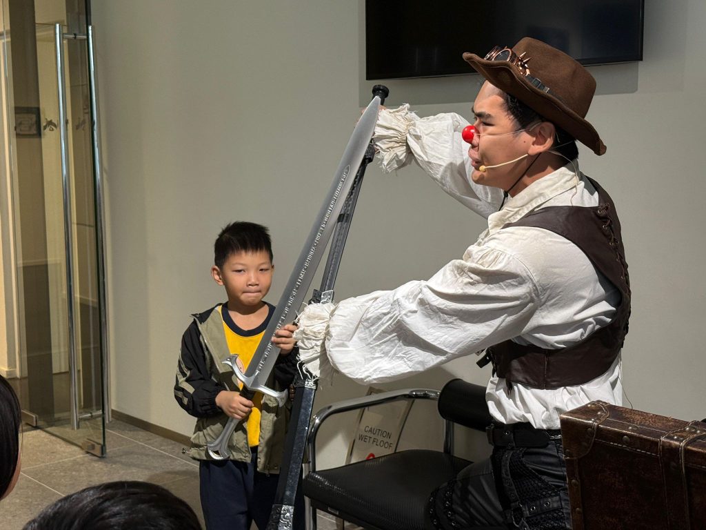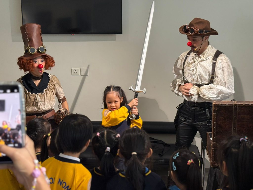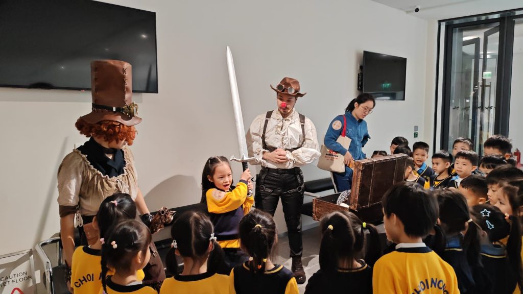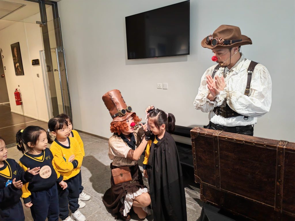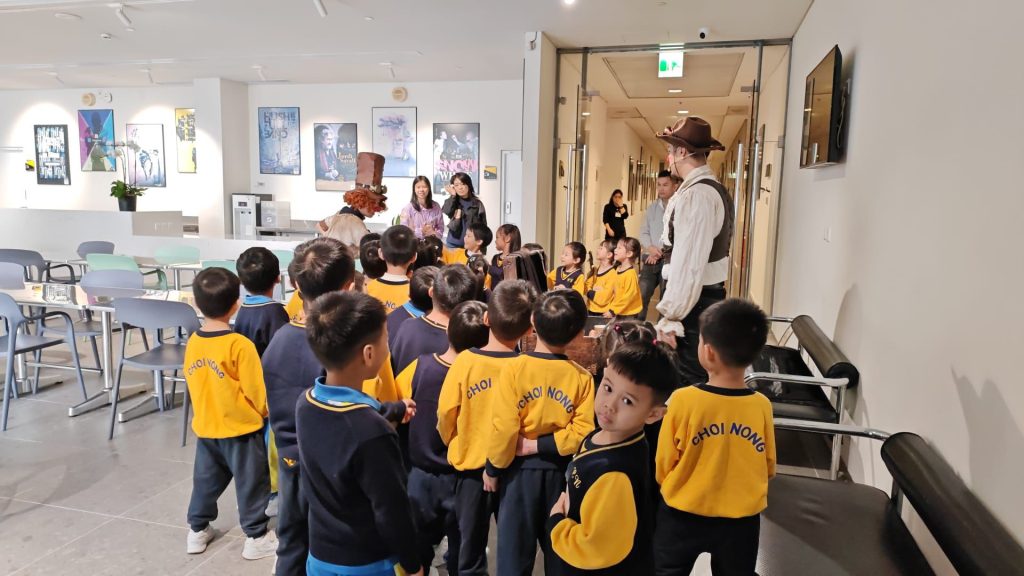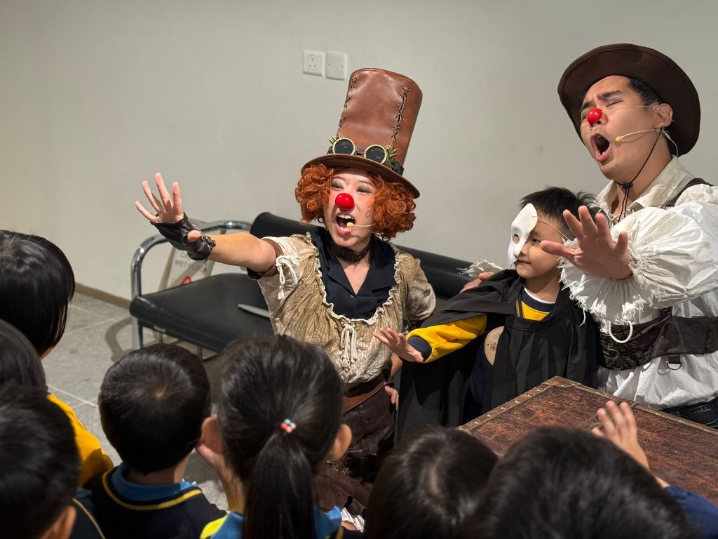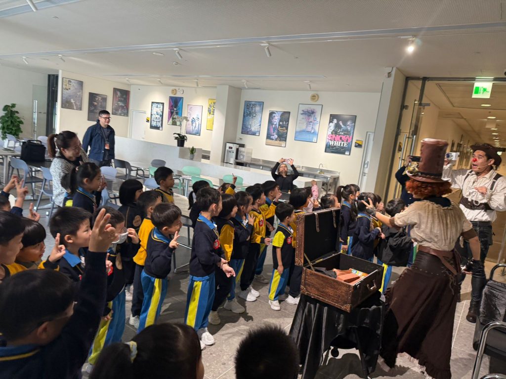 幼稚園(117威龍分校)K3級的小朋友參與了由澳門文化中心精心策劃的後台體驗工作坊《尋找道具大師索羅索》,展開了一場充滿驚喜的文化探索之旅。在道具大師索羅索與助手的帶領下,小朋友們踏入平日難得一見的舞台幕後世界,親身走訪化妝間、洗衣房、演員通道及Artist Bar等場地,感受舞台背後的繁忙與神秘。索羅索和助手以生動有趣的方式與小朋友互動,透過遊戲和故事引導他們認識各種舞台道具與工作流程,現場氣氛熱烈,笑聲不斷。
