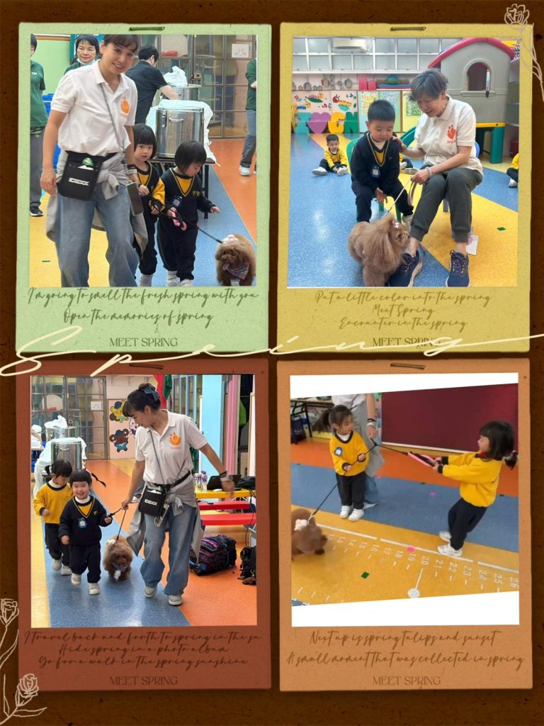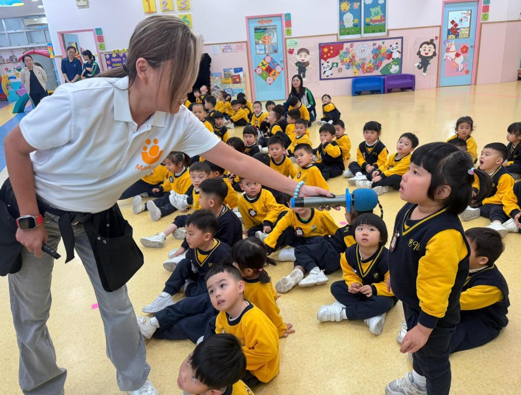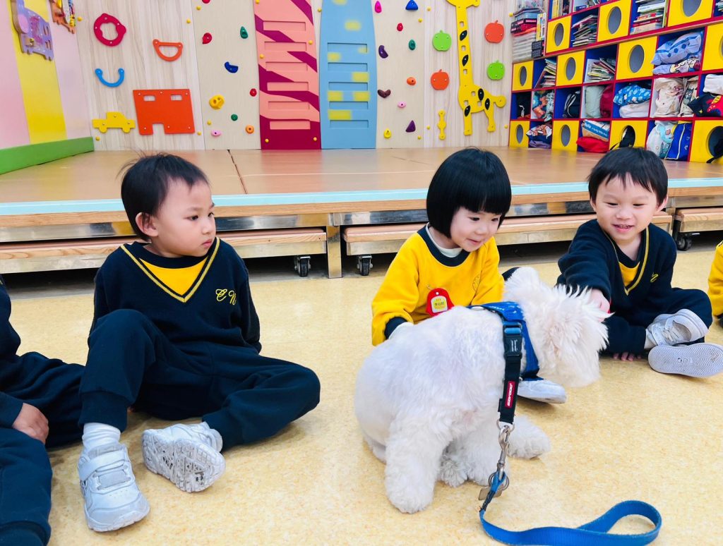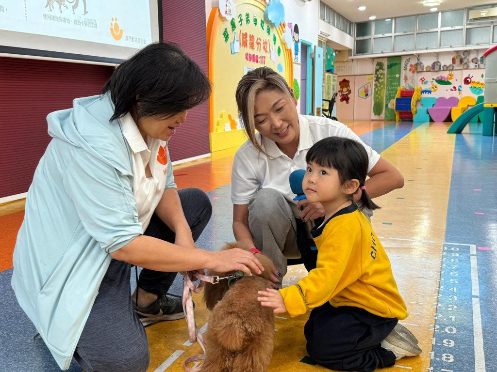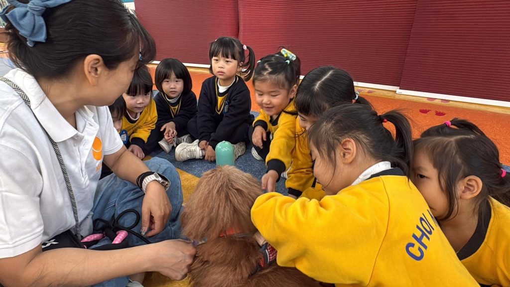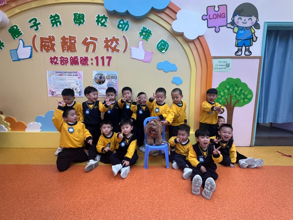 幼稚園(117威龍分校)邀請了澳門動物福利五隻狗醫生到校與K1小朋友互動。活動開始時,工作人員先向小朋友講解養狗的基本知識,包括如何照顧犬隻,以及怎樣與狗狗交朋友。這些知識不僅能幫助小朋友更好地理解犬隻的習性,也能培養他們對動物的尊重與愛心。