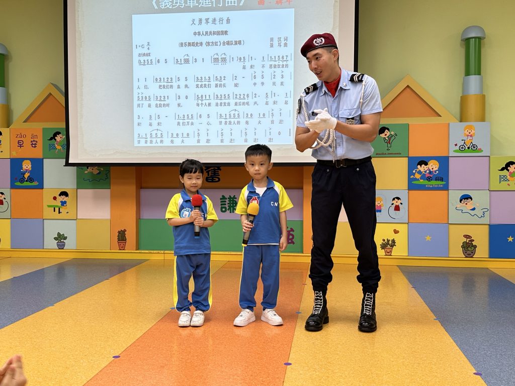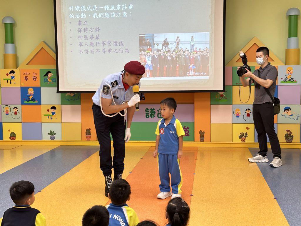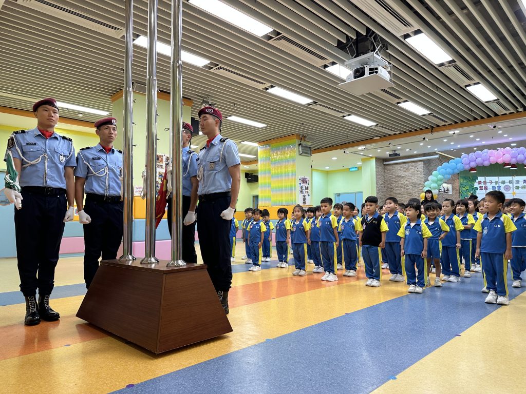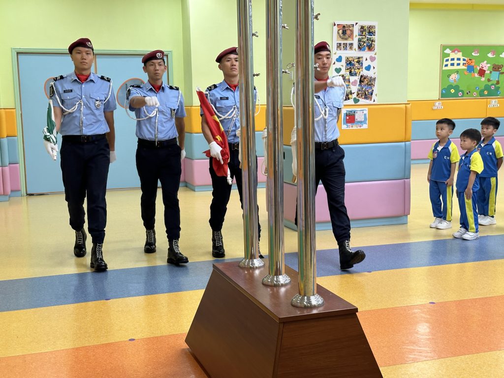 適逢國慶節,為了加強小朋友對國家、國旗的認識,幼稚園(175灣景分校)近日邀請治安警察局特警儀仗隊蒞臨學校,進行升旗儀式演示。只見,儀仗隊隊員英姿颯爽,在統一指令下護送中華人民共和國國旗及澳門特別行政區區旗進場。隨後,在莊嚴的國歌聲中,旗手將旗幟揚起,向國家及澳門特區表達崇高敬意,過程莊重肅穆。