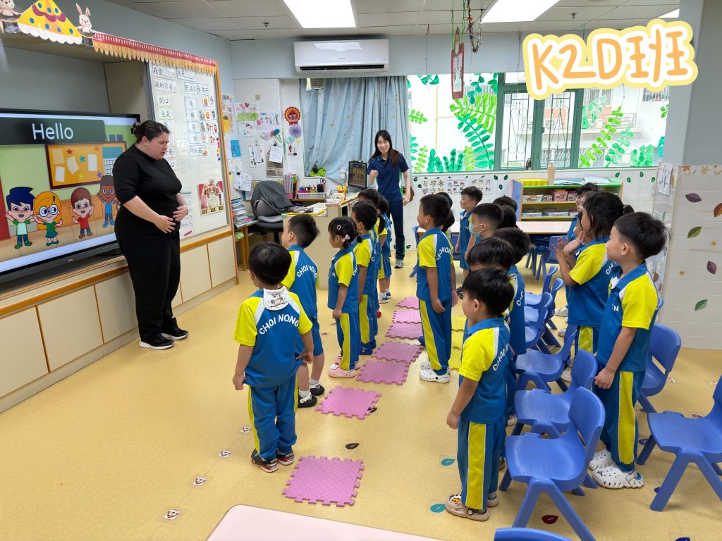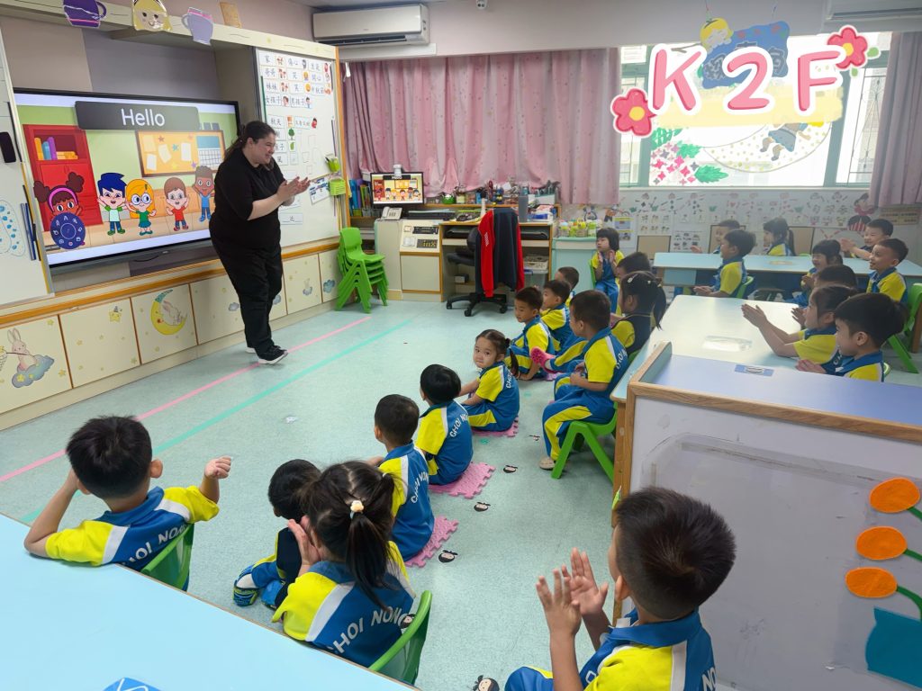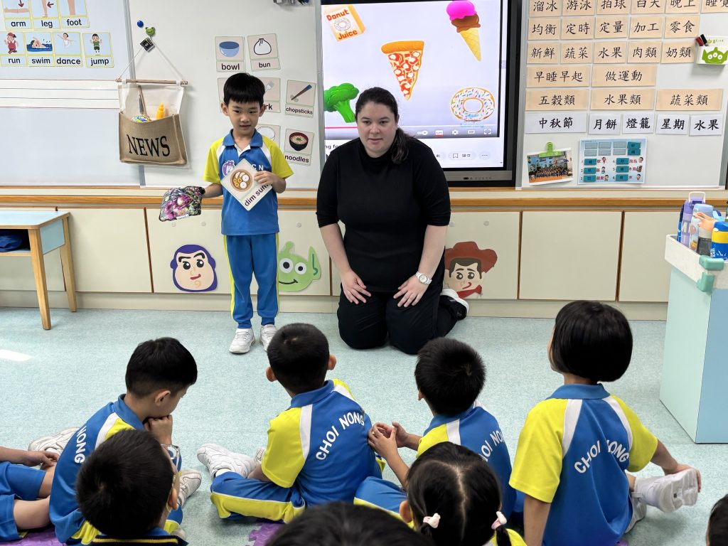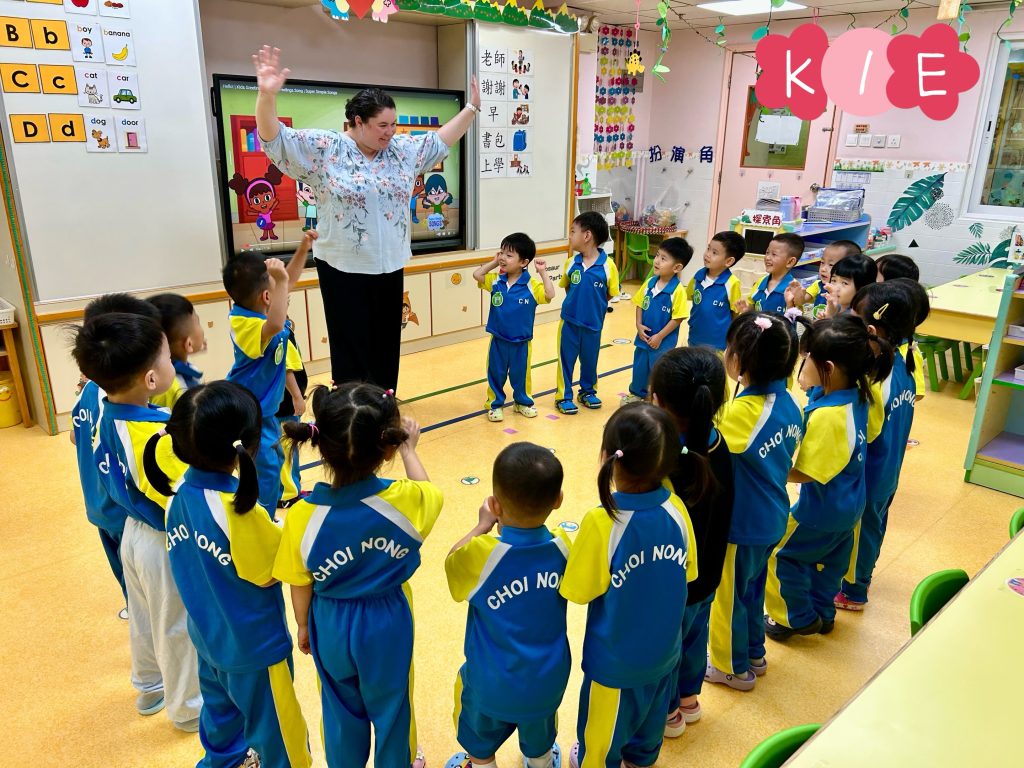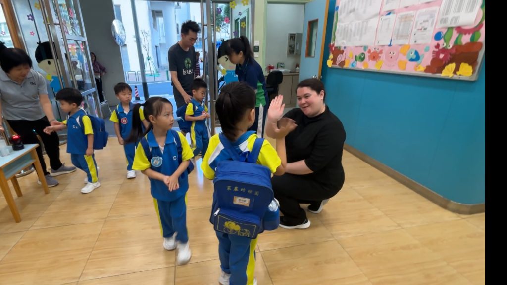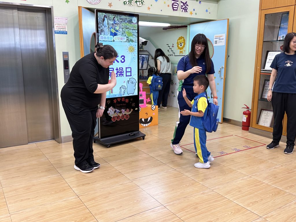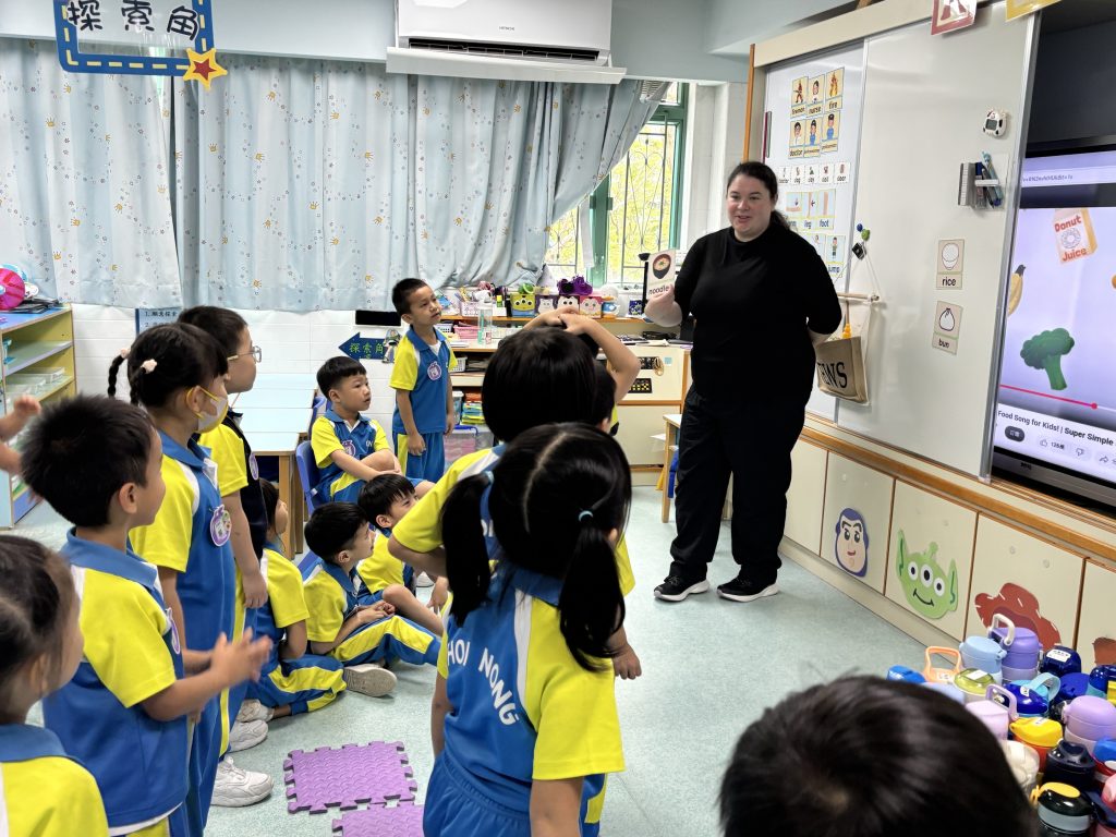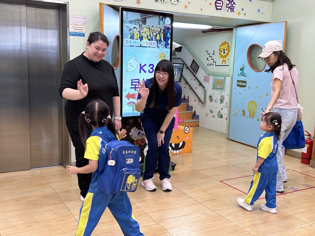 幼稚園(175灣景分校)今天迎來了一位新的英文外教老師——Miss Angelique,她特地在門口熱情迎接每位學生。Miss Angelique每週都會來校開展不同主題的英語課,帶來有趣的英語學習體驗,讓小朋友在輕鬆愉快的學習環境中提高語言能力。