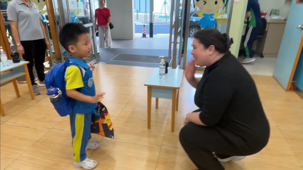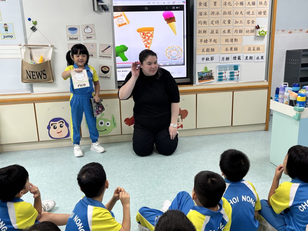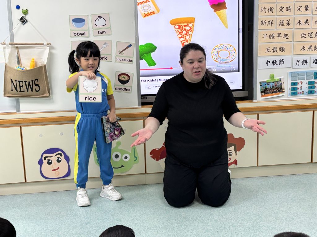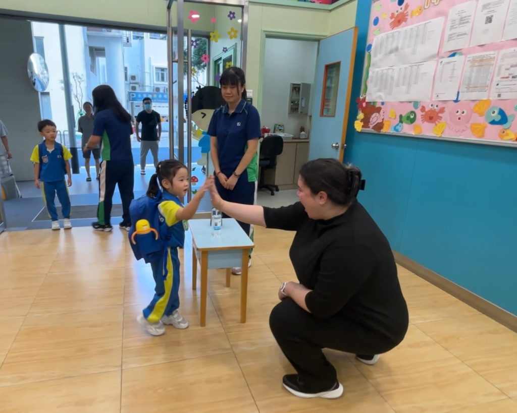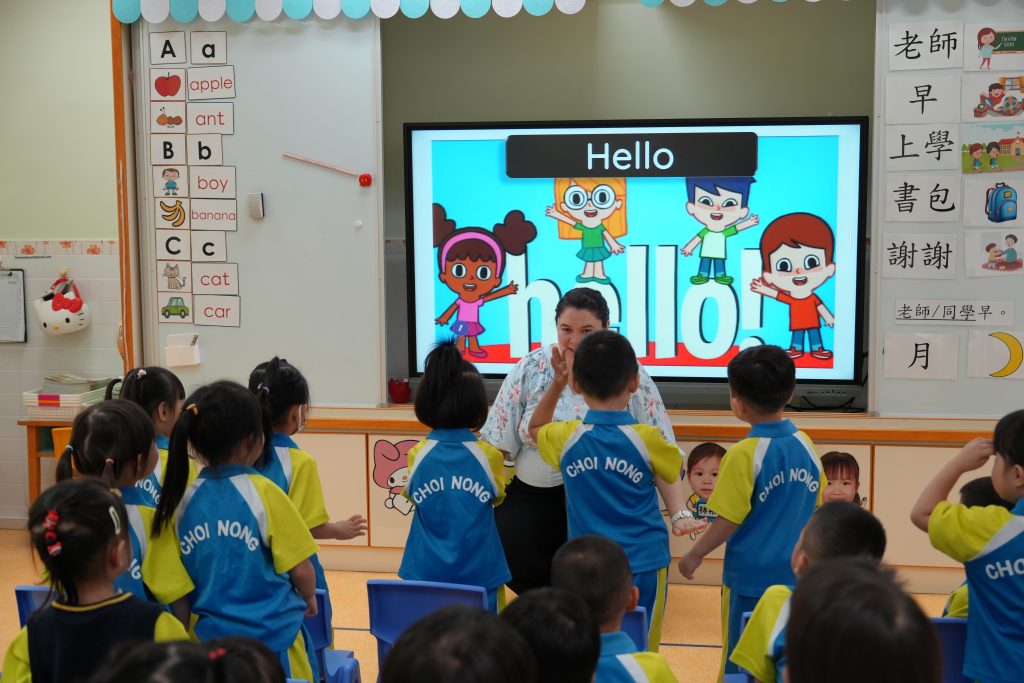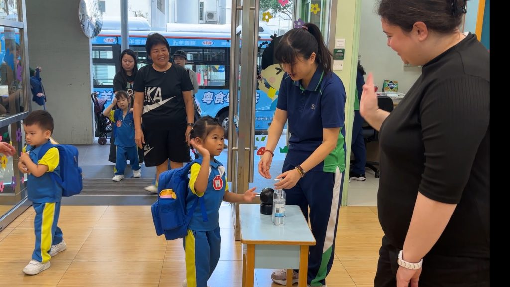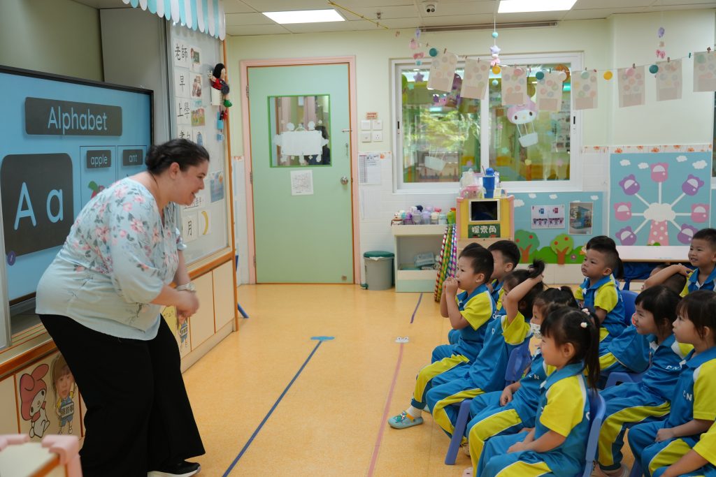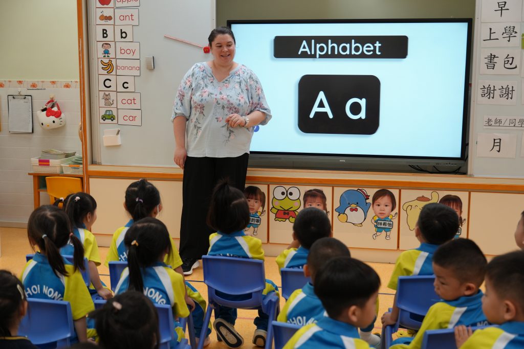 幼稚園(175灣景分校)今天迎來了一位新的英文外教老師——Miss Angelique,她特地在門口熱情迎接每位學生。Miss Angelique每週都會來校開展不同主題的英語課,帶來有趣的英語學習體驗,讓小朋友在輕鬆愉快的學習環境中提高語言能力。