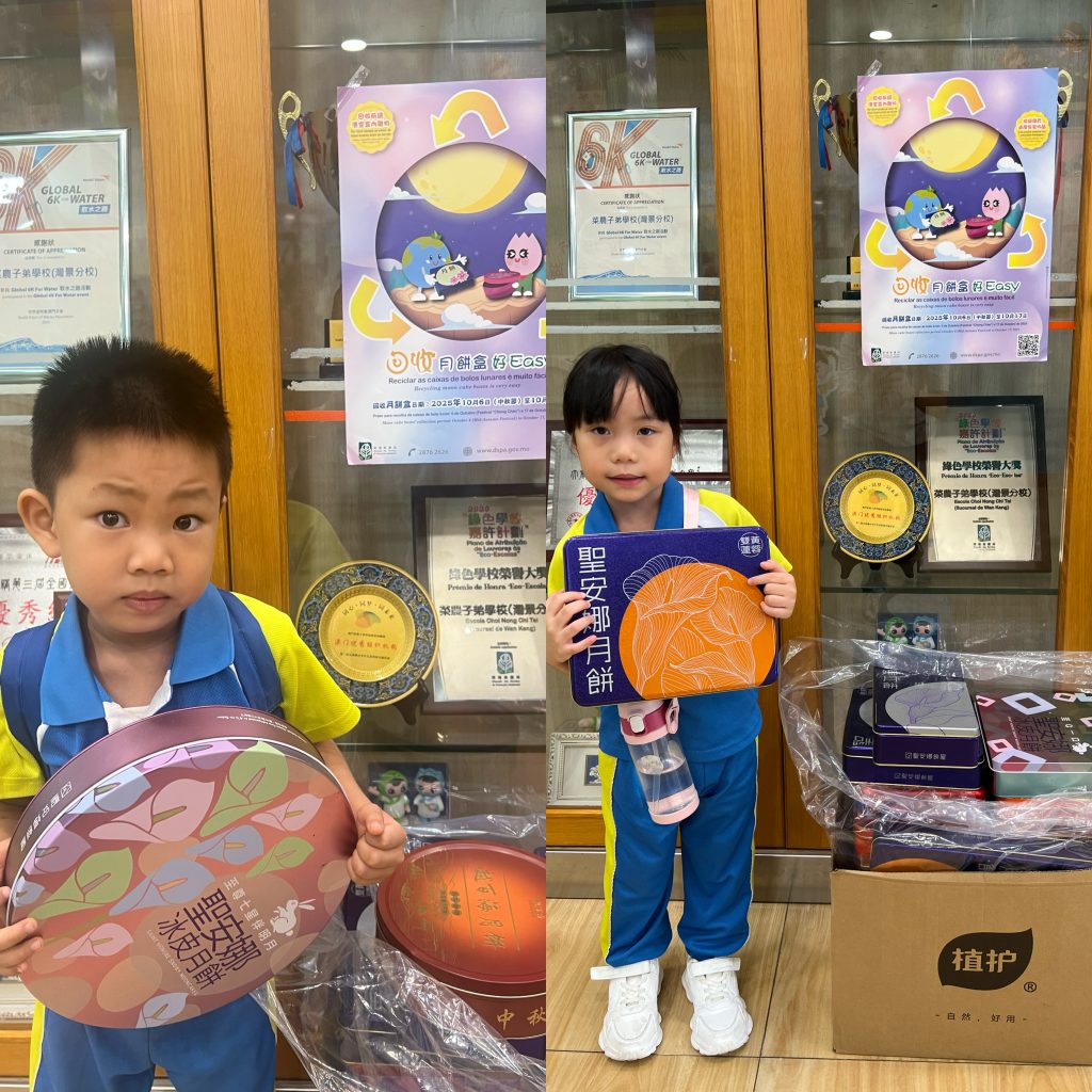 在活動開展前,學校透過組織、宣傳與動員,呼籲全體師生踴躍參與。同學們也紛紛響應,將家中的月餅盒帶到學校,齊心為建設節約型社會貢獻一己之力。透過本次回收的活動,不僅能鼓勵學生實踐資源循環、減少使用即棄物料,更能為堆填區減壓,讓我們共同擁有既美麗又環保的家園。