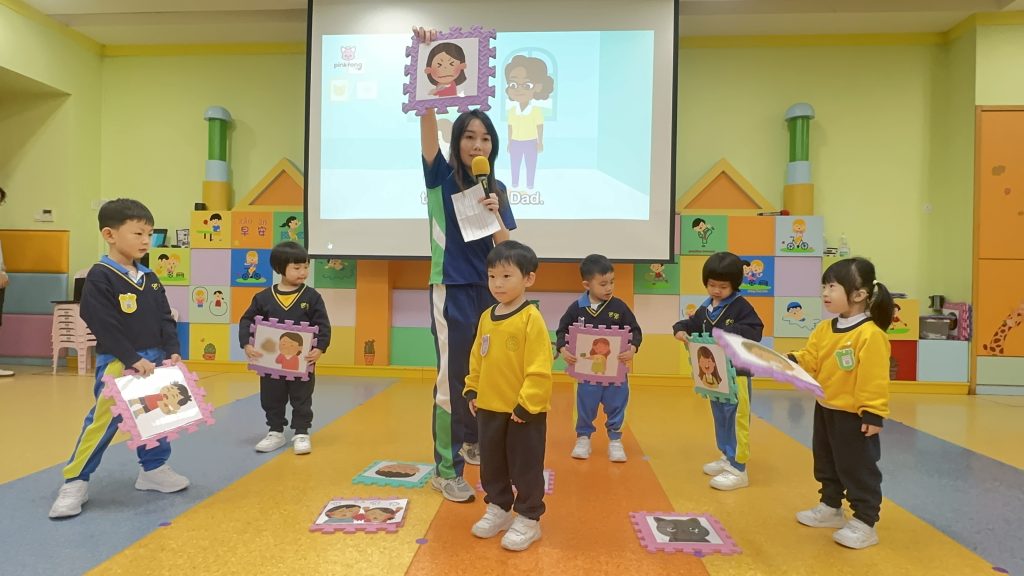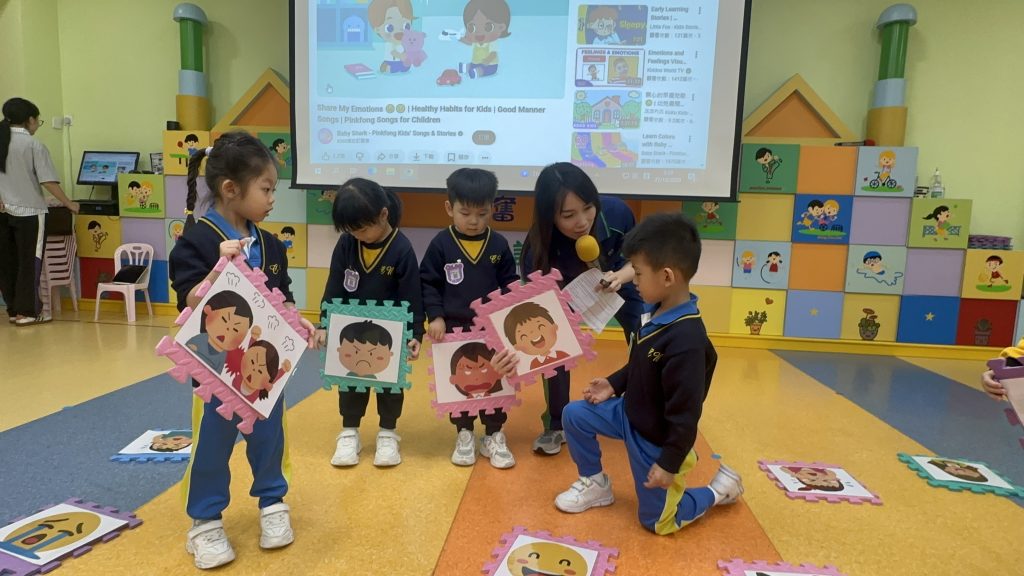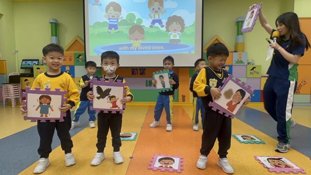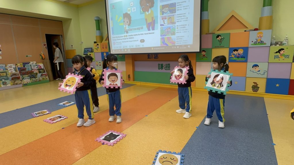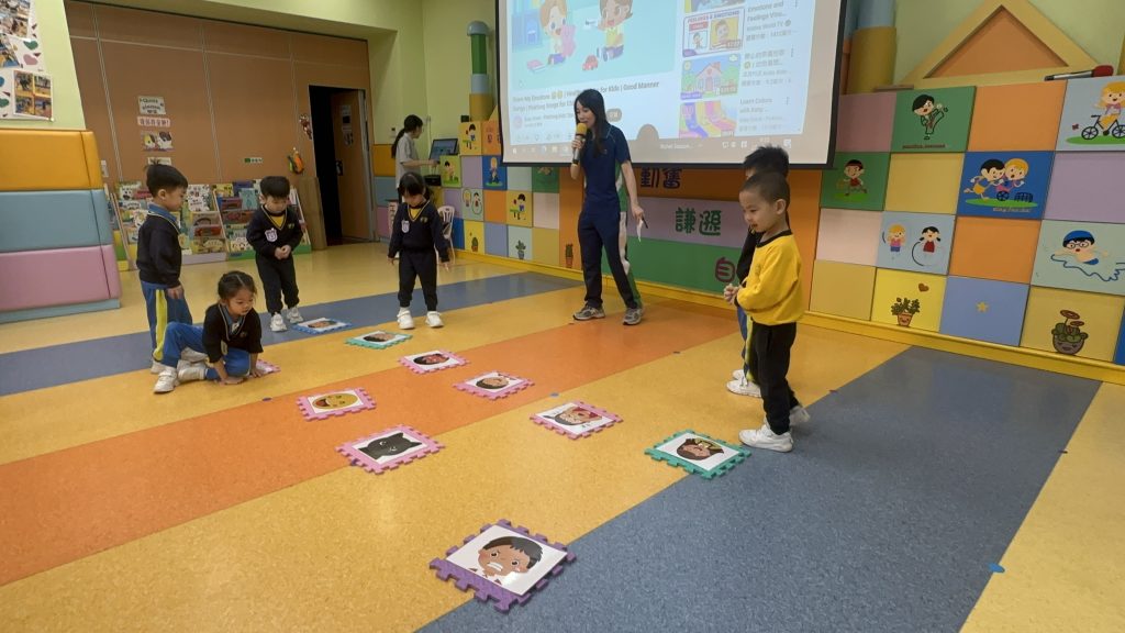 為了讓幼兒在遊戲中學習英語並了解情緒,幼稚園(175灣景分校 )K2級舉辦「英文週情緒主題活動——Let’s Feel Our Feelings!」。活動以動畫電影《Inside Out》(《腦筋急轉彎》)為主題,結合影片、音樂及遊戲,帶領幼兒認識快樂、悲傷、憤怒、害怕與厭惡五種情緒。
