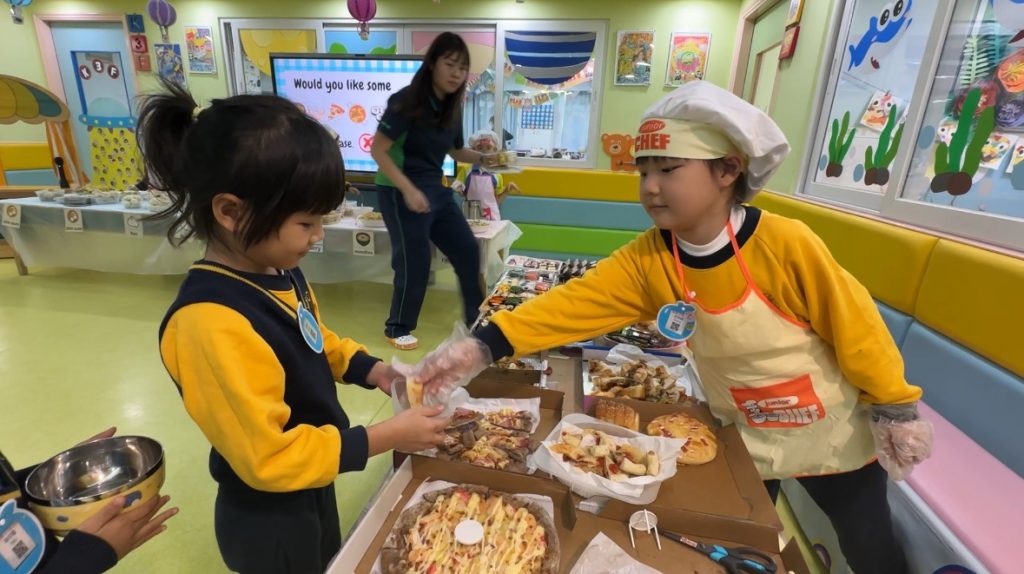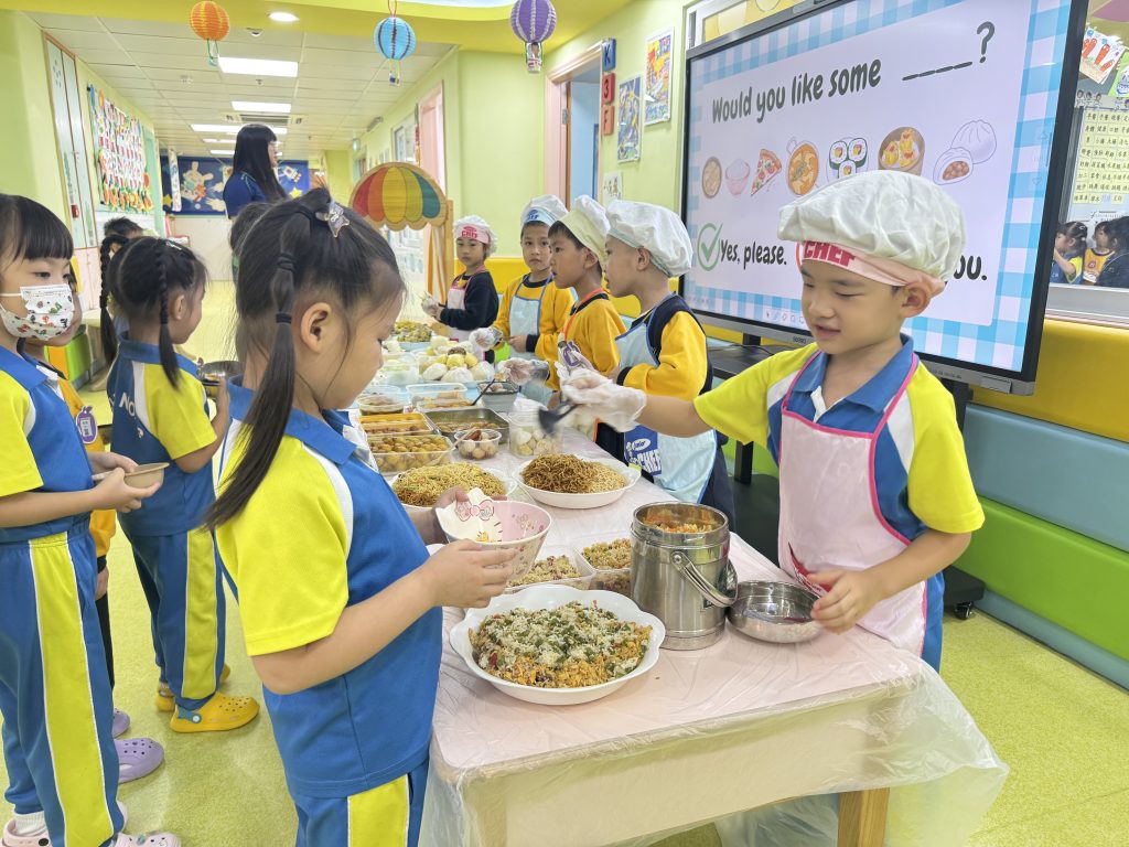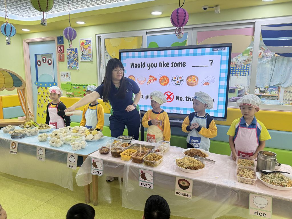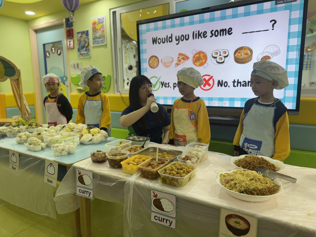 是次活動孩子們和老師共同策劃,並和爸爸媽媽一起準備美味食物。活動中,我們的小小廚師運用「Would you like some/a __?」熱情招待,其他小朋友則能以「Yes, please.」或「No, thank you.」自信回應。而老師會從旁引導,讓孩子在真實情境中快樂練習英語。