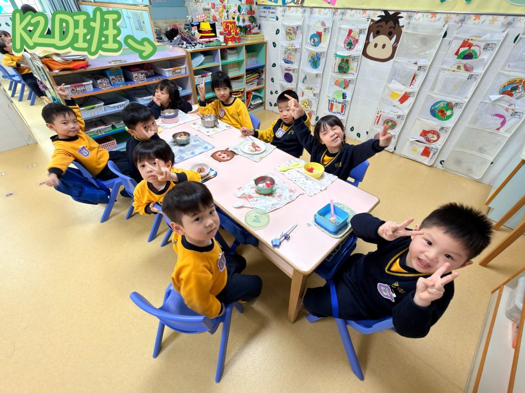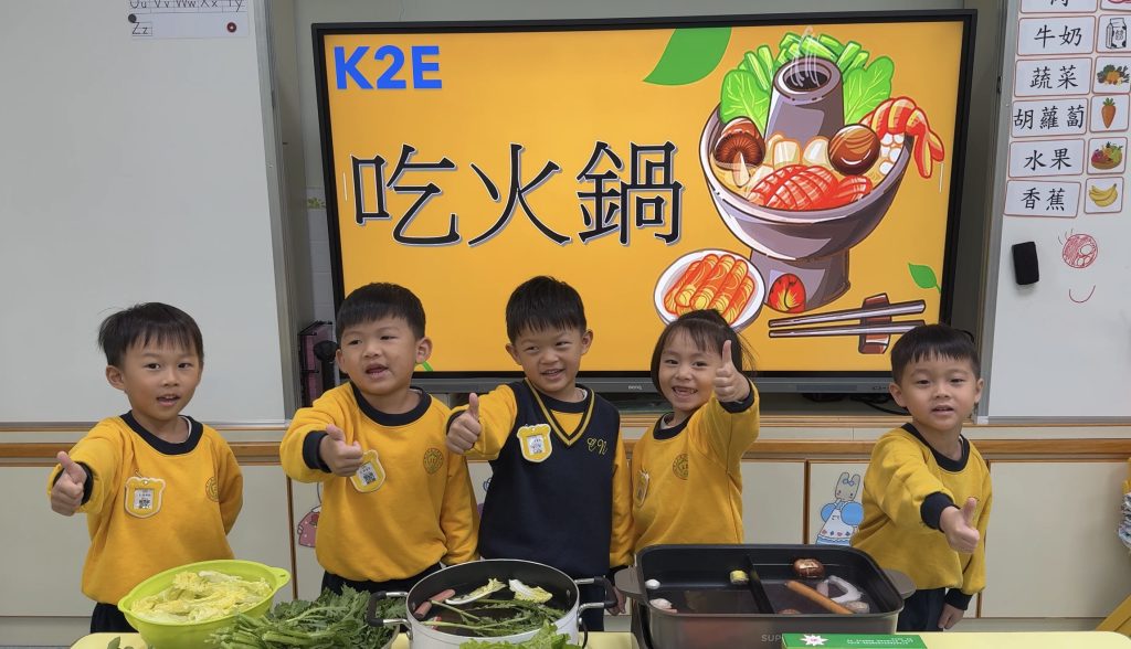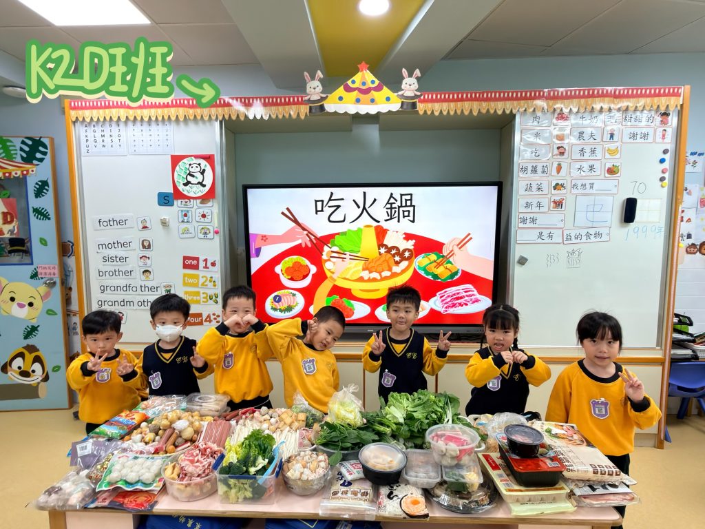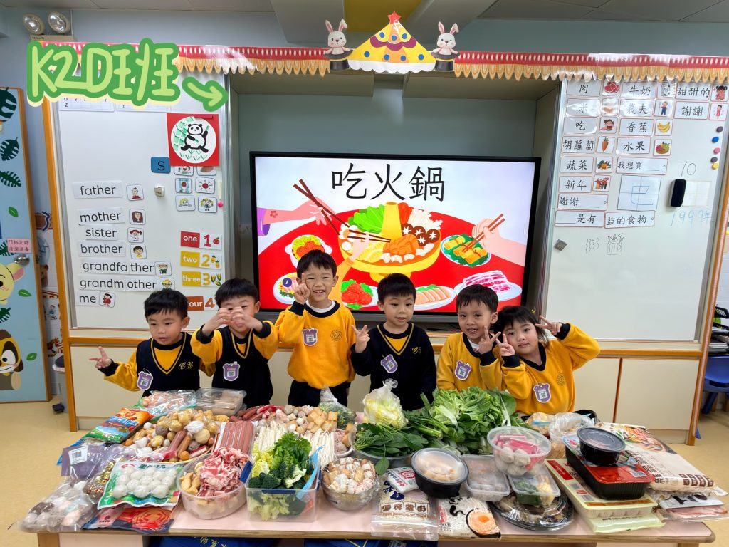 寒冷的冬日裡,幼稚園(175灣景分校)K2班的小朋友端坐在座位上,安靜又期待——因為今天,全班要一起吃火鍋!