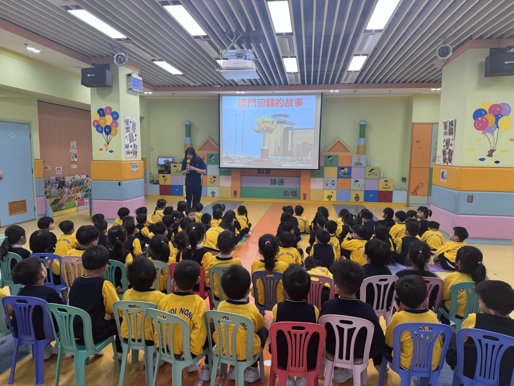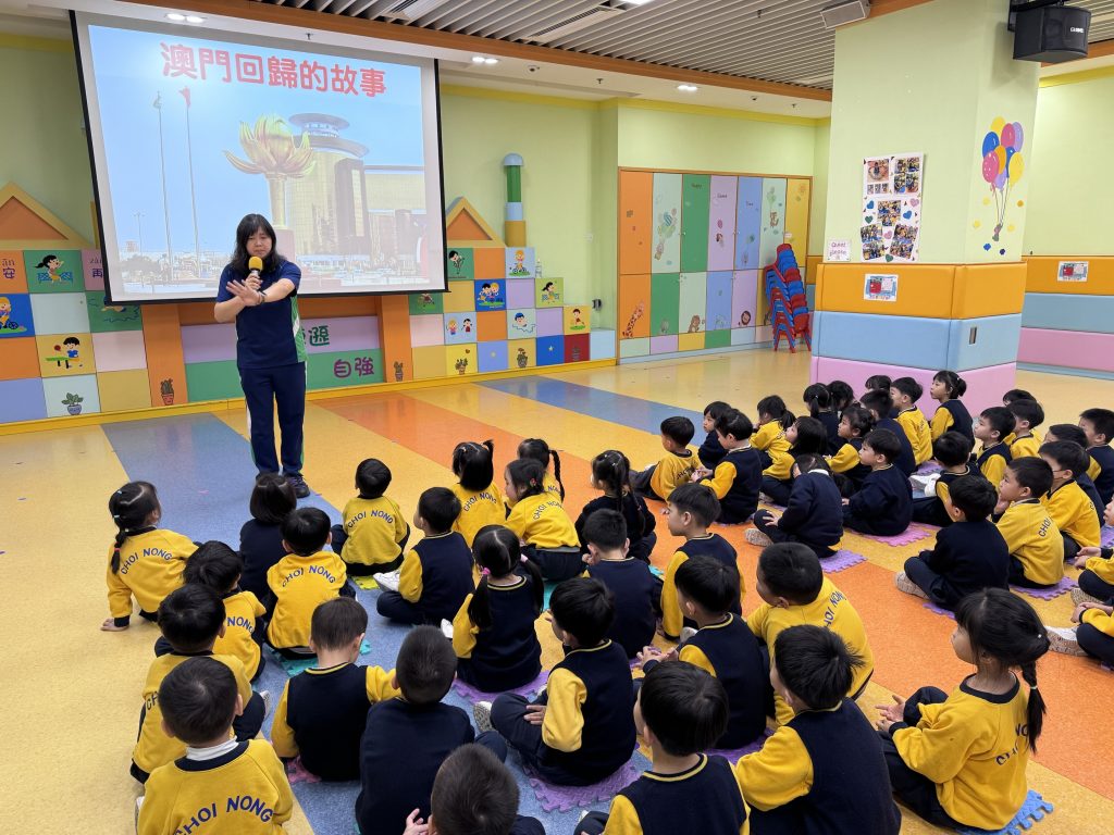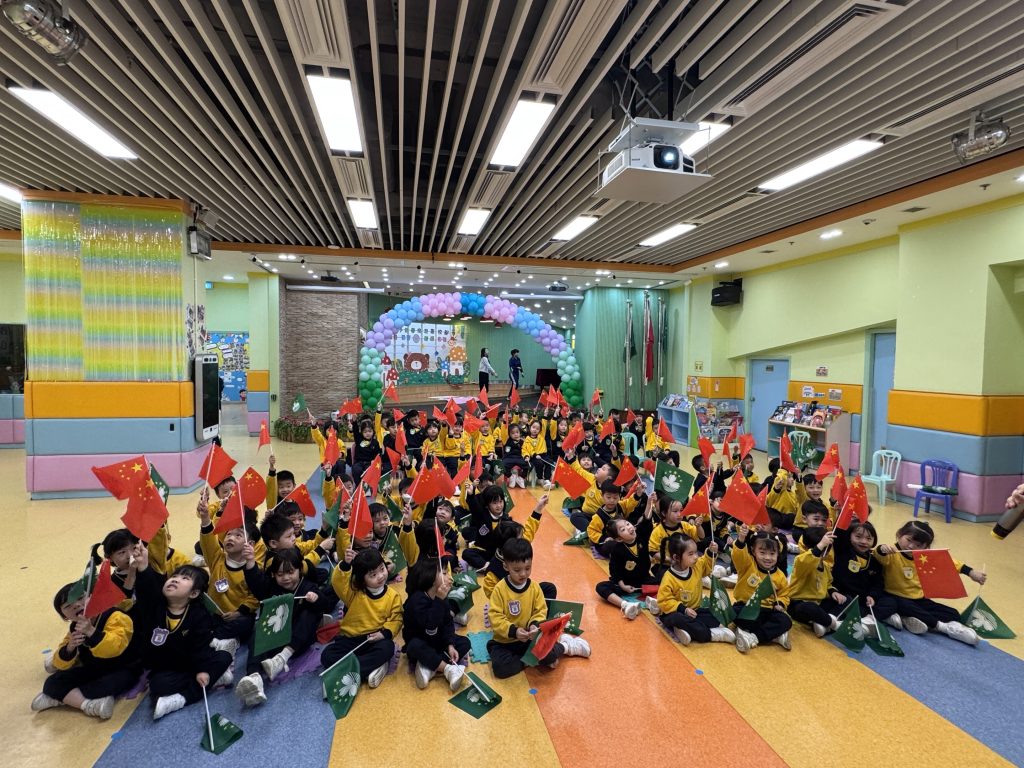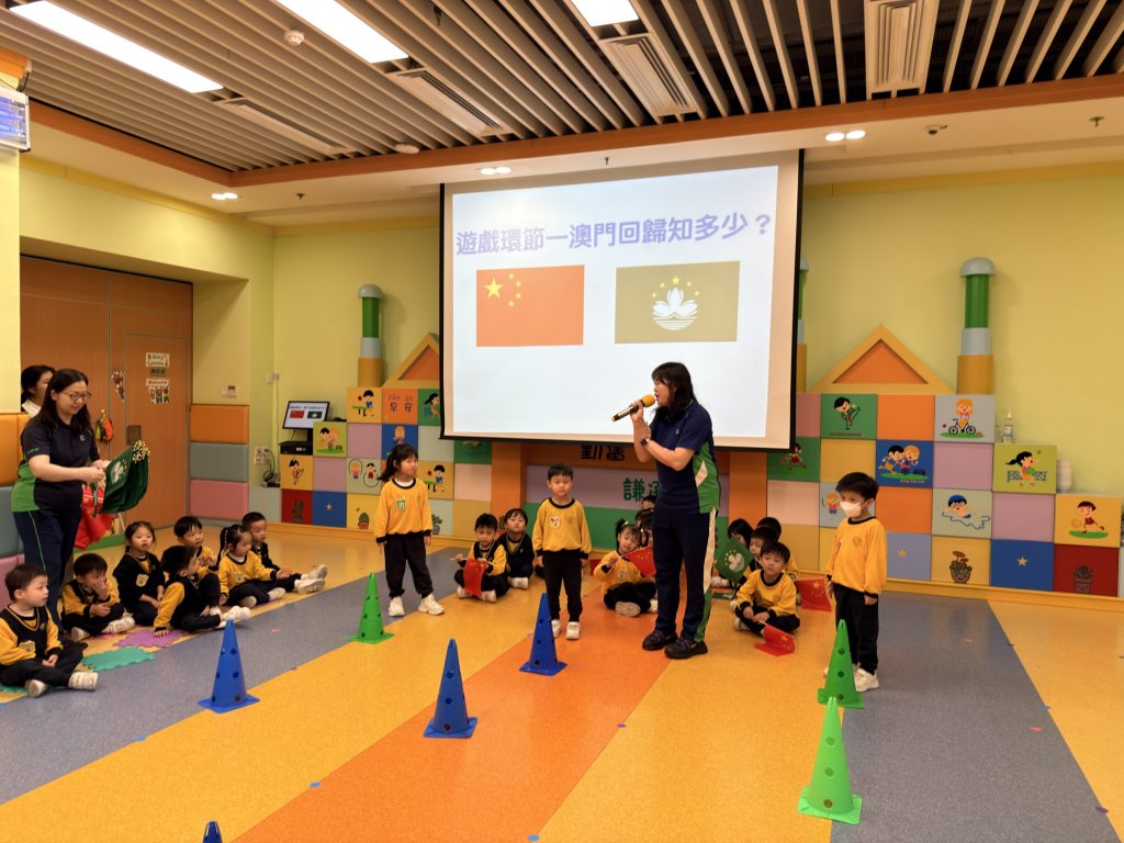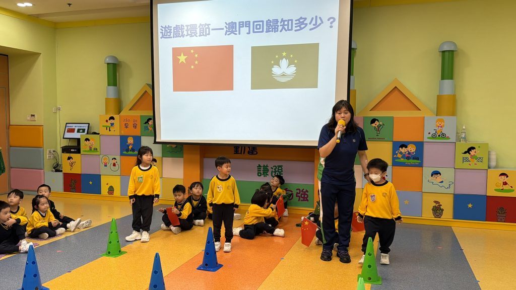 幼稚園(175灣景分校)K2級開展慶祝澳門回歸的活動,幼兒一起認識中國國旗和澳門區旗,了解它們的顏色和圖案意義,透過故事介紹澳門的歷史及回歸前後的變化,一探昔日澳門的城市貌;讓孩子們加深了解自己的家園。活動中還安排了有趣的遊戲,讓小朋友們在玩樂中學習。 最後,大家一同進行‘澳門回歸知多少?問答遊戲體能接力賽,不僅能鍛練小朋友的體魄,還能在歡樂的氣氛中加強小朋友愛國愛澳的情懷,增長知識。 本次活動寓教於樂,讓小朋友們在輕鬆愉快的氛圍中探索澳門的文化!認識澳門回歸的意義!