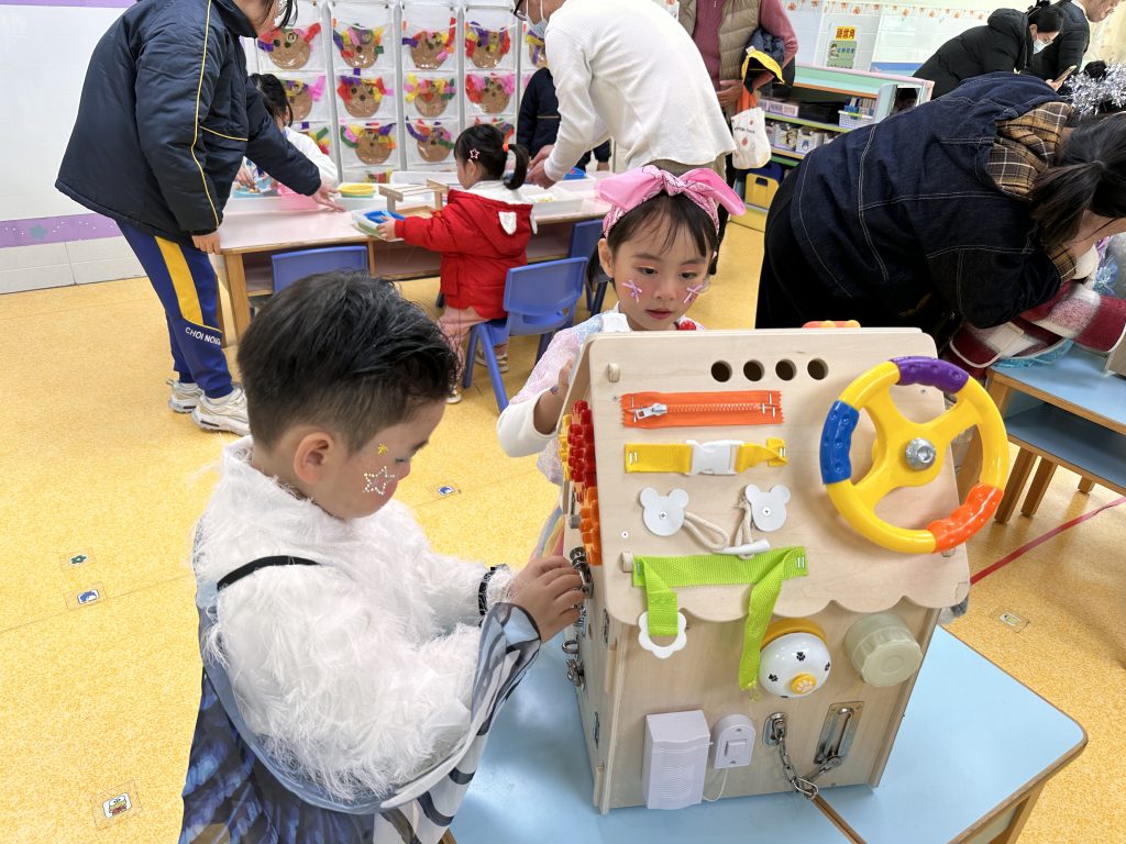 本次開放日設置了多個寓教於樂的活動區域,包括安吉遊戲區、親子工作坊、皮影戲小劇場和外籍老師互動遊戲區。透過參與各項活動,家長們能親身體驗孩子在校園的學習情況,並增進與孩子之間的互動。
