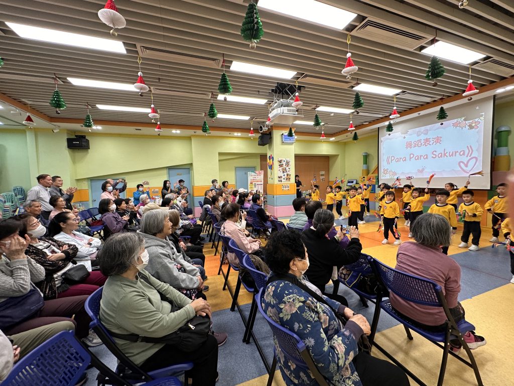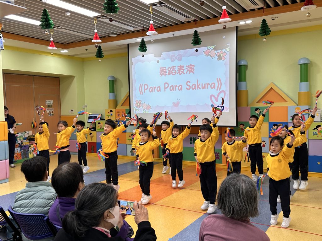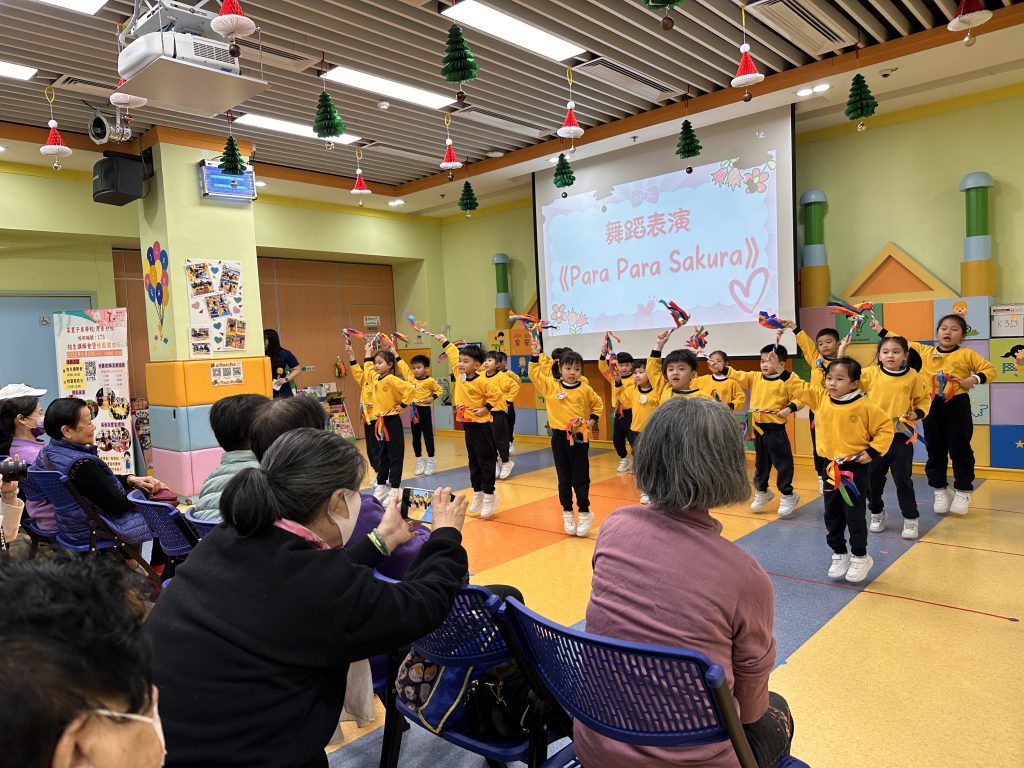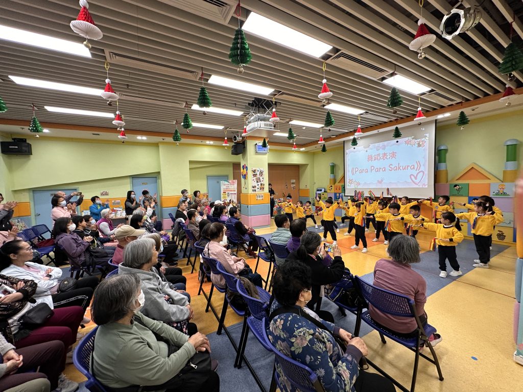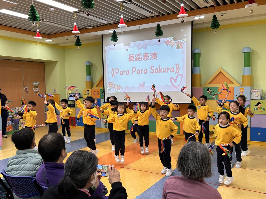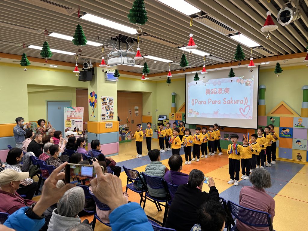 孩子們精心準備了精彩表演,包括體操《大日子》與《Para Para Sakura》。他們活潑可愛、朝氣洋溢的演出,贏得了長者們的熱烈掌聲。小朋友還與長者一起練習了一段舞蹈、參與互動遊戲,並一同放花炮,歡樂迎接2026年的到來。活動尾聲,孩子們送上事前準備的小禮物,長者們笑容滿面地接過,並由衷表達感謝與祝福。