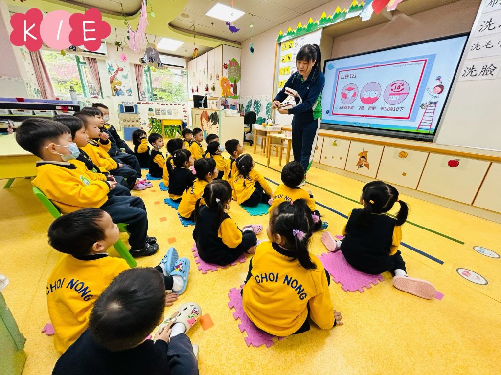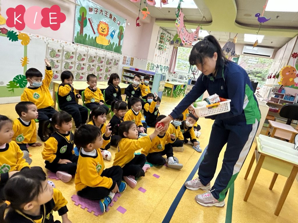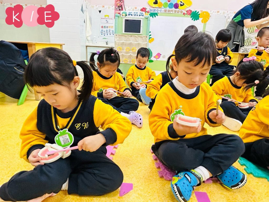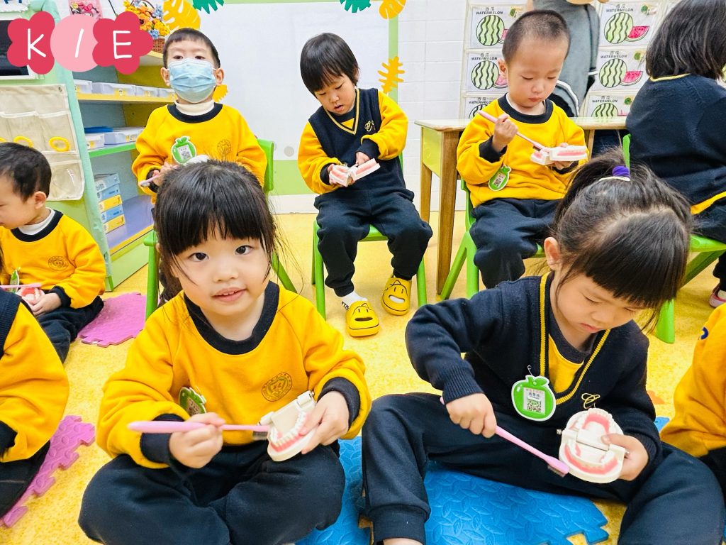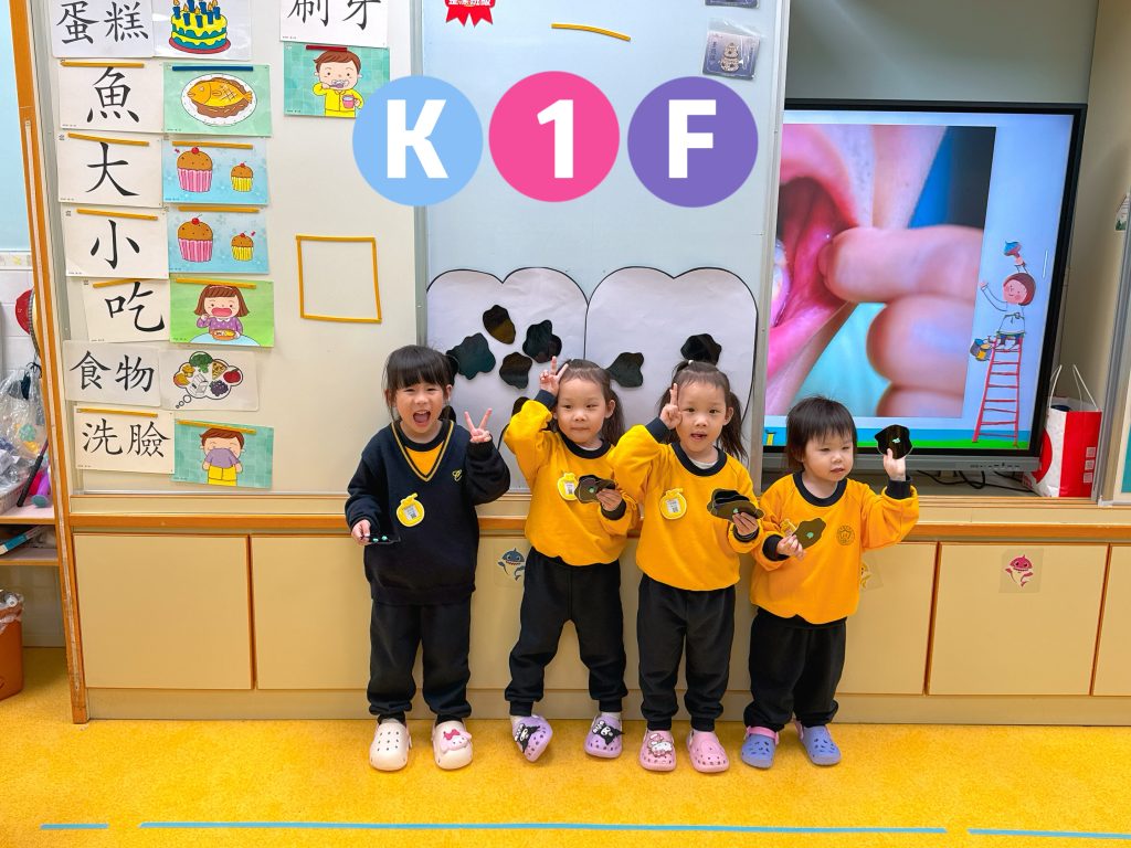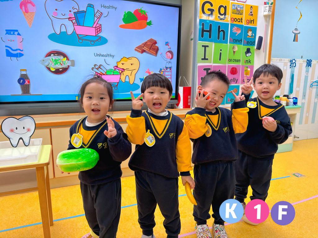 幼稚園(175灣景分校)K1級教學主題《獅子大王愛乾淨》的延伸活動,邀請到本校健康促進員—何姑娘舉辦愛護牙齒講座。講座透過活動學習的模式,讓小朋友認識牙齒的結構,並透過食物分類遊戲,分辨哪些是牙齒的「好朋友」與「大壞蛋」,其後何姑娘與小朋友示範「貝氏刷牙法」,借用牙齒模型與小朋友進行練習,以加強他們對正確刷牙方法的認知及培養小朋友良好的口腔衛生保健意識,齊齊做個「潔牙小勇士」!