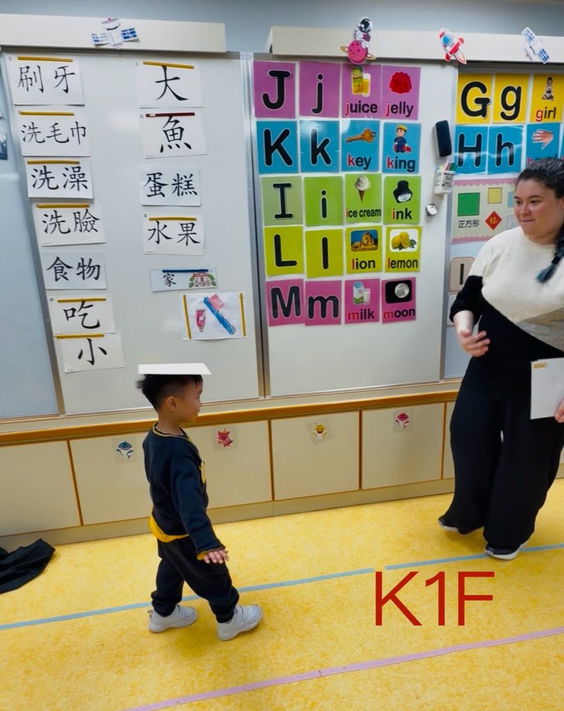 課程以輕快的字母兒歌拉開序幕,孩子們跟著Miss Angelique邊唱邊做動作,在歡樂的節奏中熟悉字母發音。接下來的遊戲環節,小朋友透過趣味互動,輕鬆學習了如apple、boy、cat、dog等基礎單詞,全程投入、積極參與。