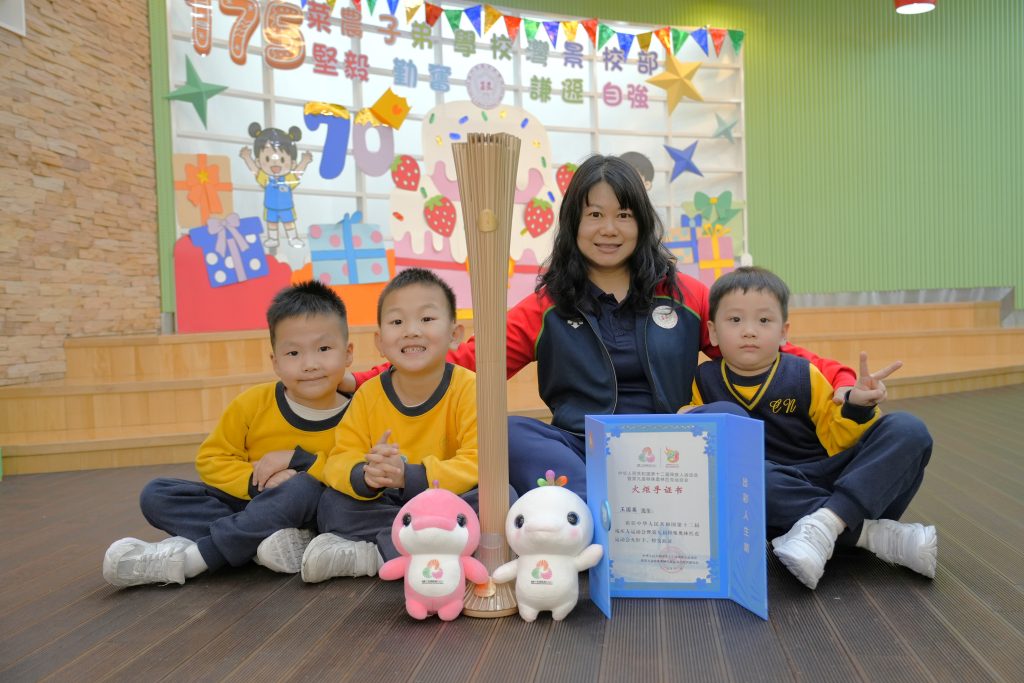 幼稚園(175灣景分校)非常榮幸迎來了第十五屆全運會的火炬,這是由我校王國英校長擔任火炬手所帶來的火炬,象徵著體育精神與希望的光芒。小朋友們和家長們紛紛與火炬拍照留念,現場氣氛熱烈。