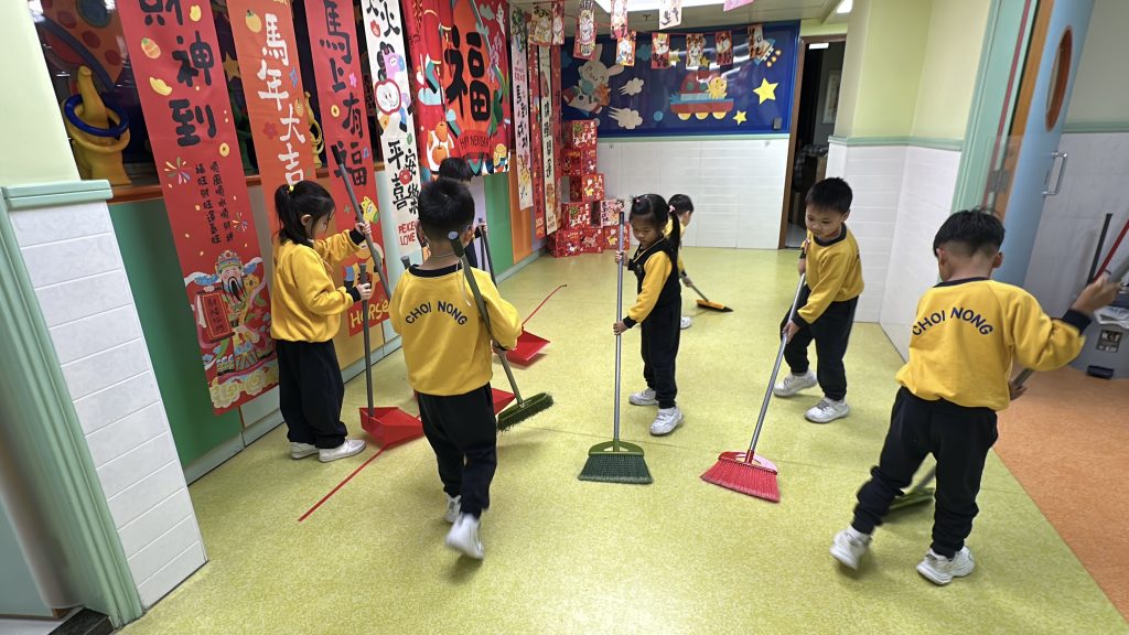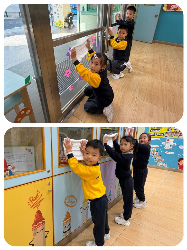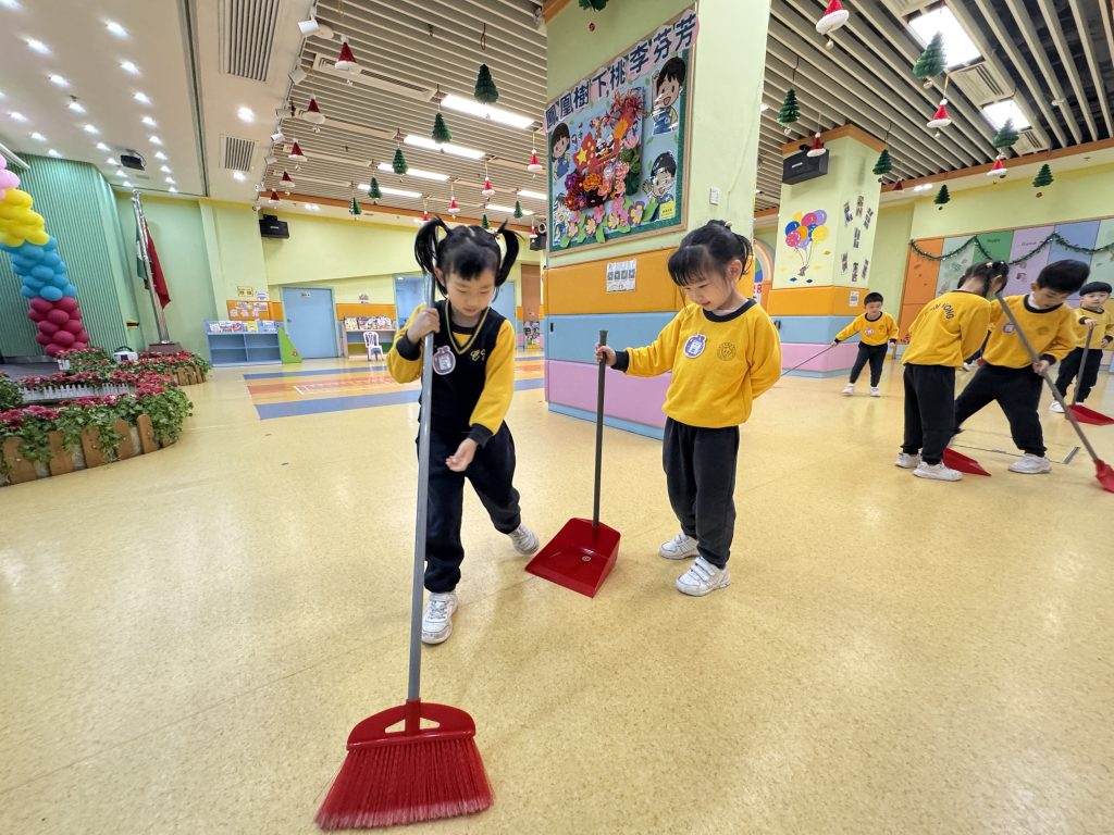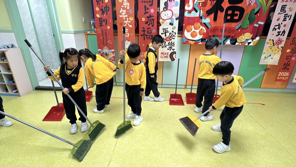 新春將至,送蛇迎馬。傳統「大掃除」蘊含除舊迎新的美好寓意——掃走煩惱,以潔淨心境迎接新開始。這份儀式感,即使是幼小心靈也能體會。 日前,幼稚園(灣景分校)K3級小朋友化身「新春清潔大使」,熱情參與校園大掃除。課室裡,他們挽起袖子,手握小抹布專注擦拭桌椅;走廊上,同學們合作收拾圖書、清掃地面、擦拭樓梯扶手;還有人踮起腳尖,細心抹淨玻璃門。雖然是簡單勞動,但每個孩子神情認真,笑聲洋溢校園,充滿朝氣活力。 這次活動讓孩子獲益良多:他們體會到整潔來之不易,更懂得珍惜他人勞動成果;在小組分工中學會聆聽與協作;親手整理環境帶來的滿足感,讓他們明白自己能為集體貢獻力量,責任感的種子悄然萌芽。 一把小掃帚,一塊小抹布,掃走塵埃,留下成長印記。新春來臨之際,願每位孩子以潔淨心境,展翅迎接每個新開始。