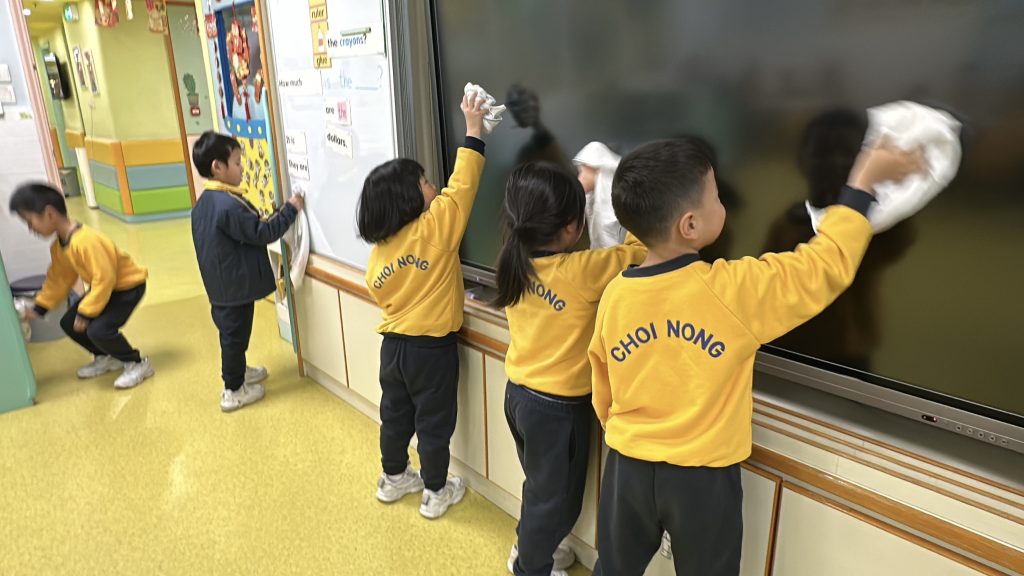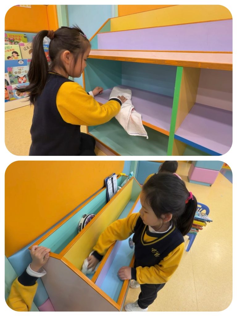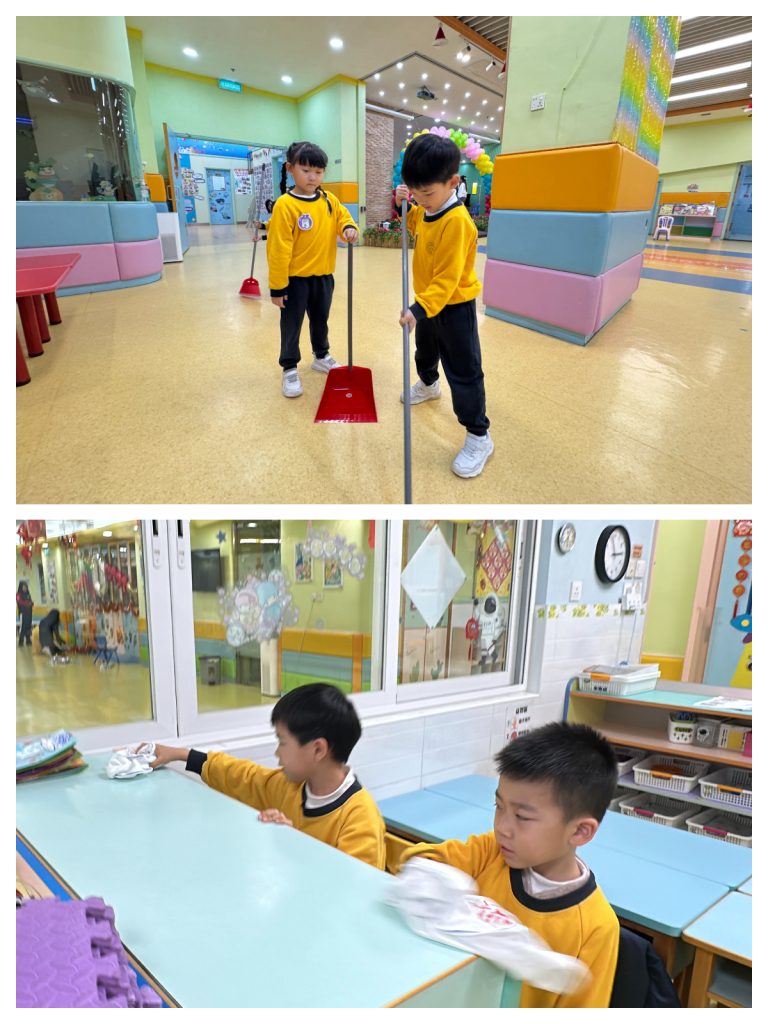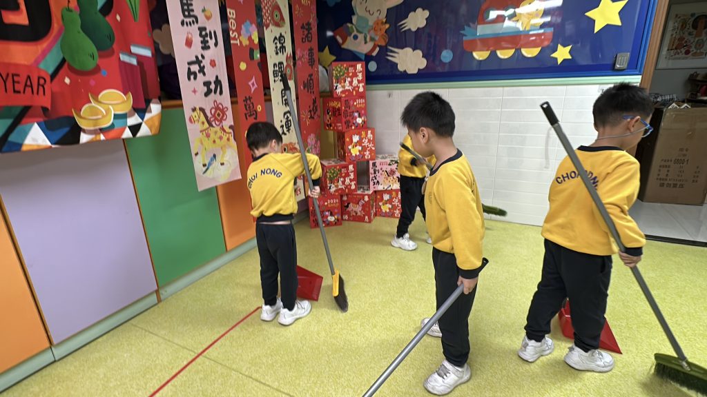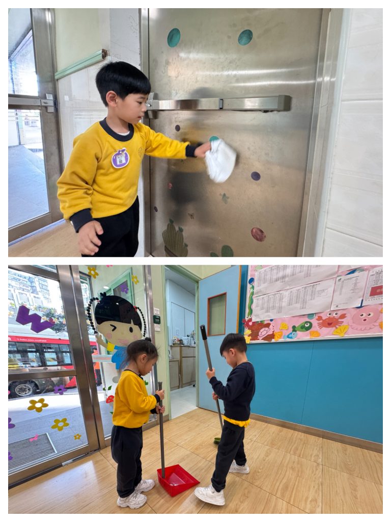 新春將至,送蛇迎馬。傳統「大掃除」蘊含除舊迎新的美好寓意——掃走煩惱,以潔淨心境迎接新開始。這份儀式感,即使是幼小心靈也能體會。 日前,幼稚園(灣景分校)K3級小朋友化身「新春清潔大使」,熱情參與校園大掃除。課室裡,他們挽起袖子,手握小抹布專注擦拭桌椅;走廊上,同學們合作收拾圖書、清掃地面、擦拭樓梯扶手;還有人踮起腳尖,細心抹淨玻璃門。雖然是簡單勞動,但每個孩子神情認真,笑聲洋溢校園,充滿朝氣活力。 這次活動讓孩子獲益良多:他們體會到整潔來之不易,更懂得珍惜他人勞動成果;在小組分工中學會聆聽與協作;親手整理環境帶來的滿足感,讓他們明白自己能為集體貢獻力量,責任感的種子悄然萌芽。 一把小掃帚,一塊小抹布,掃走塵埃,留下成長印記。新春來臨之際,願每位孩子以潔淨心境,展翅迎接每個新開始。