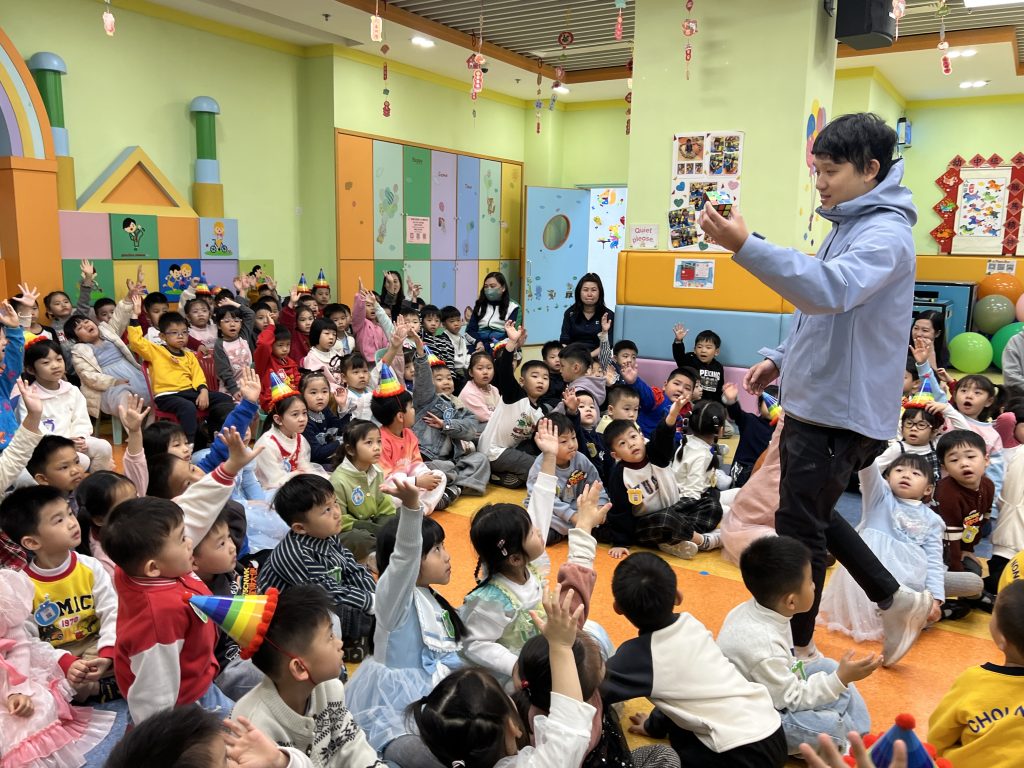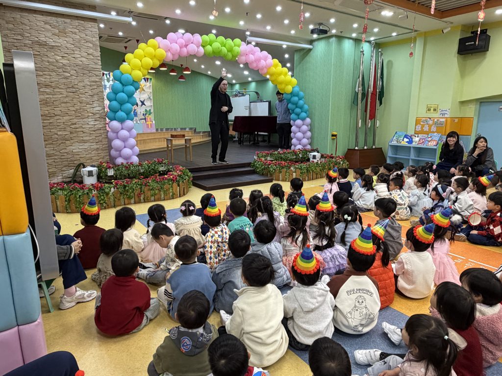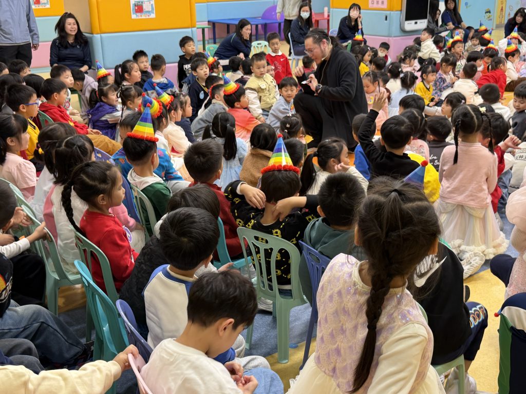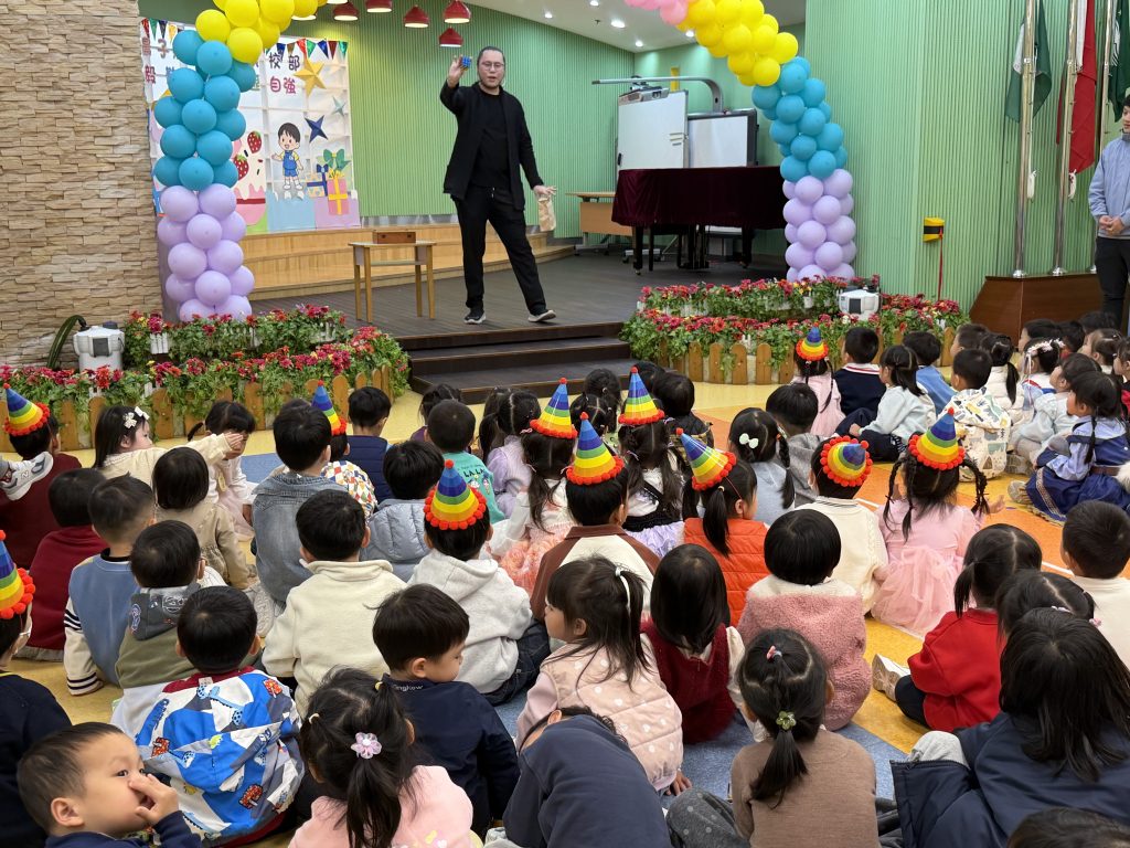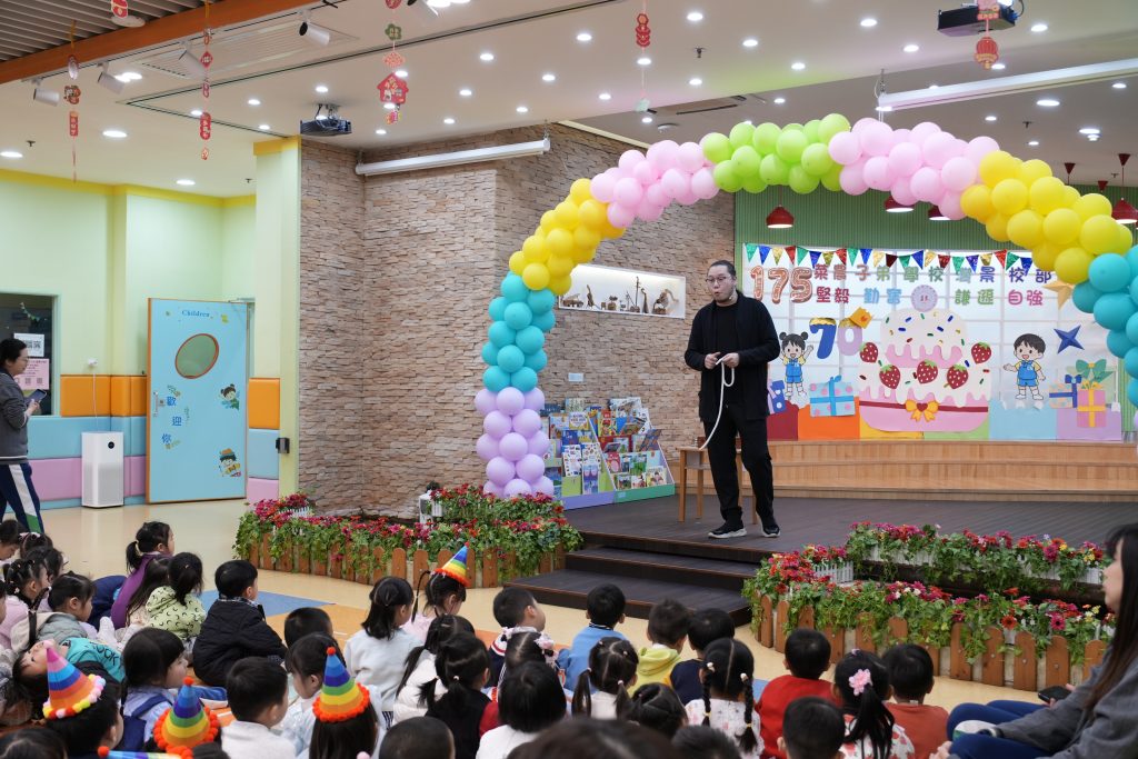 日前,幼稚園(175灣景分校)為小朋友舉辦了一場精彩的魔術主題生日會。全體幼兒齊聚禮堂參與慶祝活動。