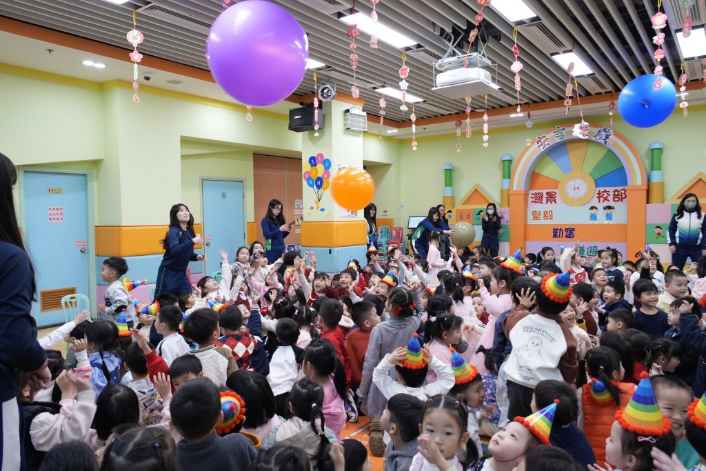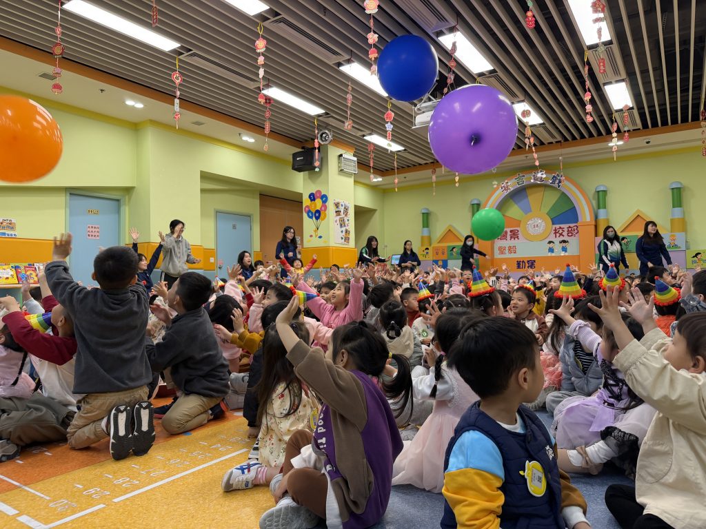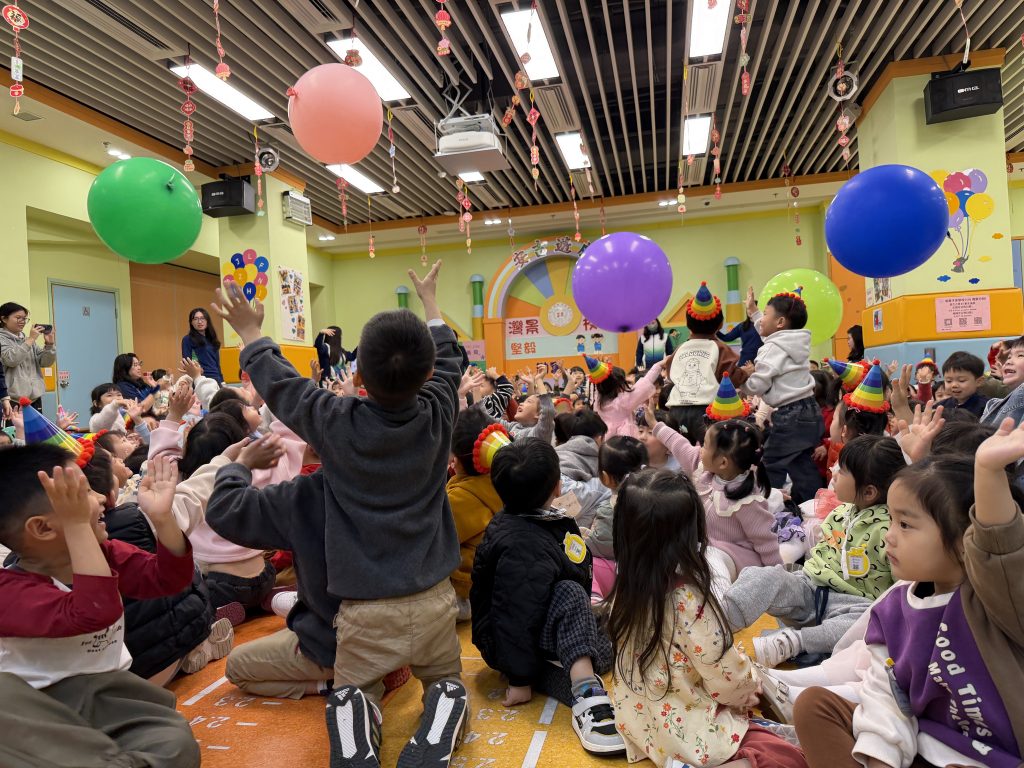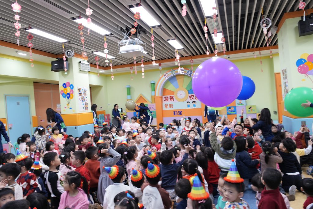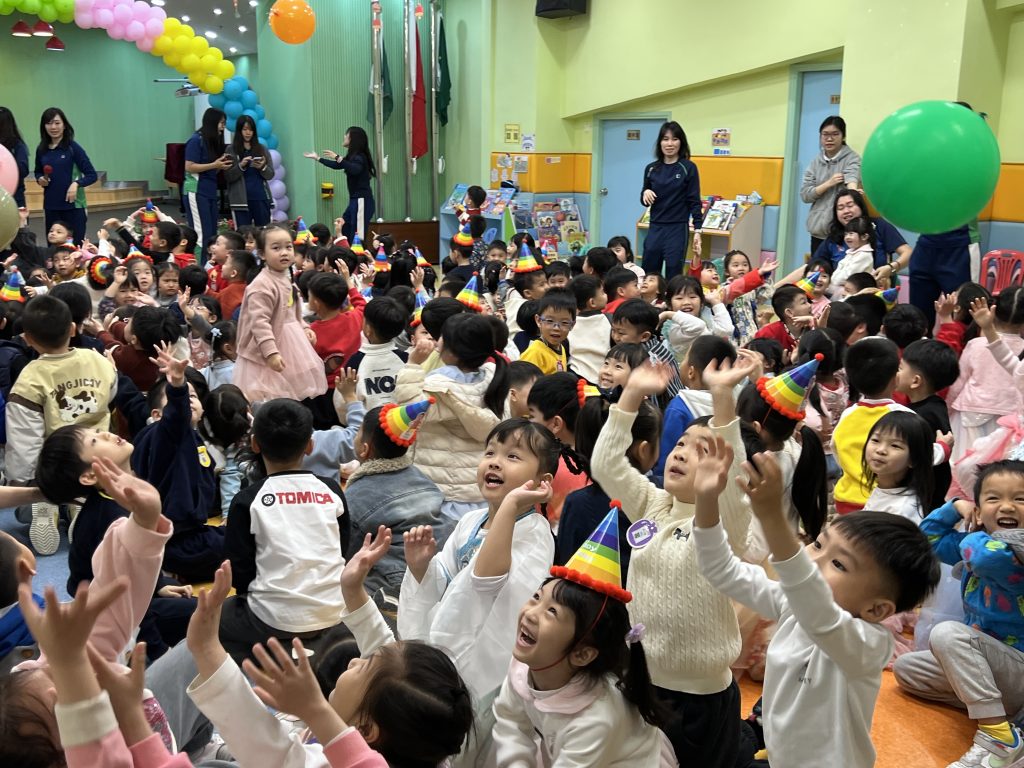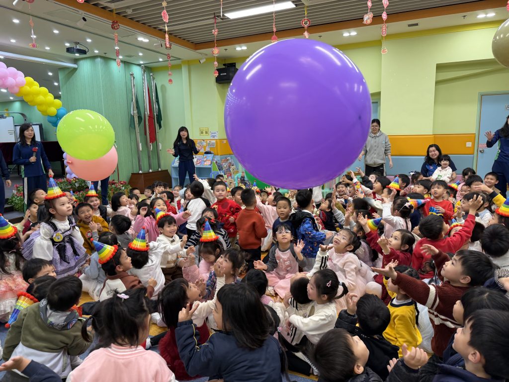 表演結束後就是「繽紛彩球遊戲」,只見色彩繽紛的大彩球在空中飛舞,小朋友興奮拍球,笑聲不斷。遊戲後,各班返回課室享用蛋糕和零食,在溫馨歡樂中度過難忘的生日會。