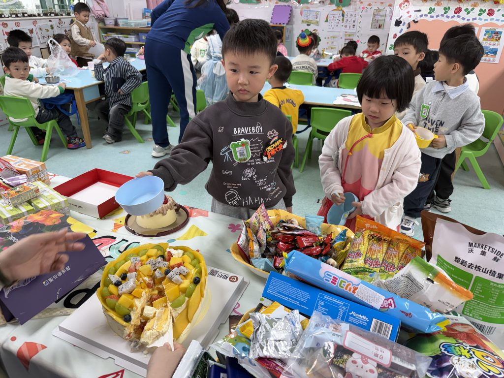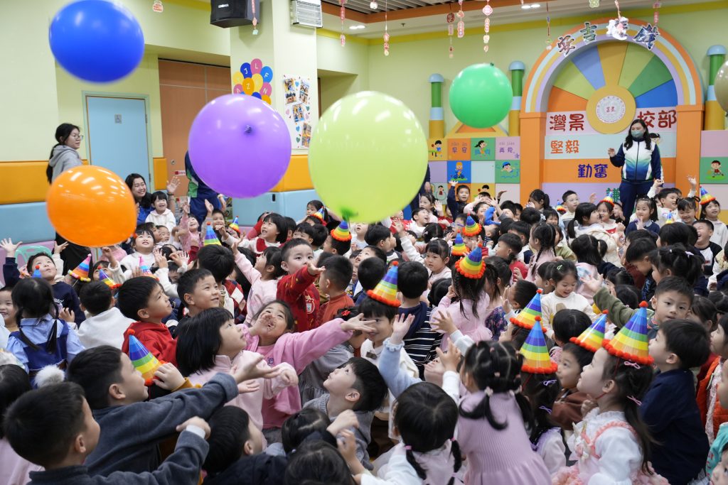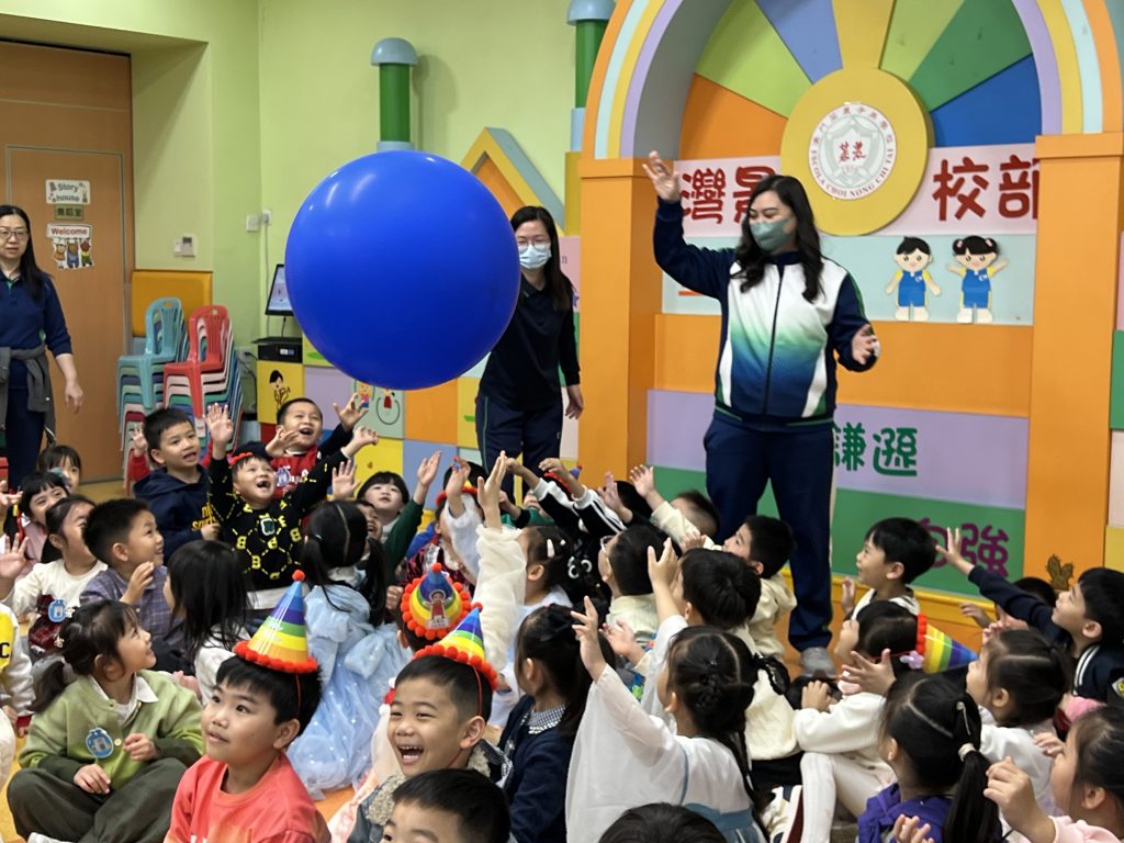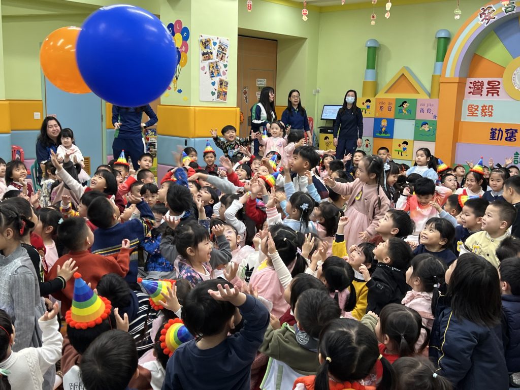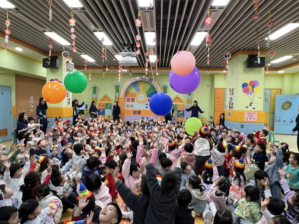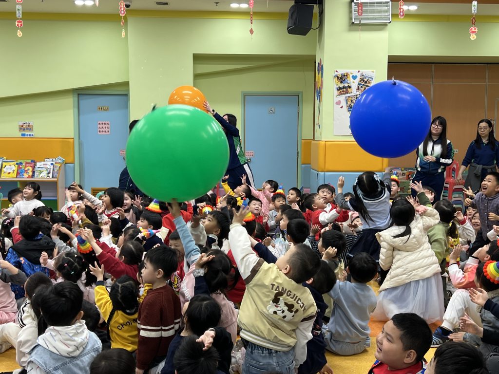 表演結束後就是「繽紛彩球遊戲」,只見色彩繽紛的大彩球在空中飛舞,小朋友興奮拍球,笑聲不斷。遊戲後,各班返回課室享用蛋糕和零食,在溫馨歡樂中度過難忘的生日會。